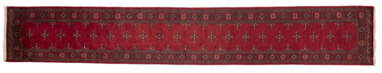 A large part of Pakistani rug production takes place in and around the cities of Lahore and Karachi. Many of the rug knotters of that time fled to Pakistan during the war with India and settled there. Today, especially hand-knotted Pakistan Bukhara rugs are well-known. Similar to the Afghan oriental rugs, Pakistani rugs are also made in dark colours and mostly have shades of red. Even the well-known elephant foot pattern (repeating octagonal pattern) can be found on a Pakistani.
