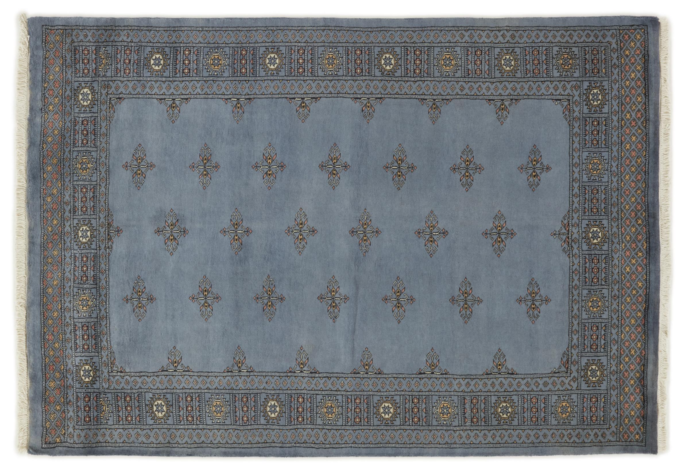 A large part of Pakistani rug production takes place in and around the cities of Lahore and Karachi. Many of the rug knotters of that time fled to Pakistan during the war with India and settled there. Today, especially hand-knotted Pakistan Bukhara rugs are well-known. Similar to the Afghan oriental rugs, Pakistani rugs are also made in dark colours and mostly have shades of red. Even the well-known elephant foot pattern (repeating octagonal pattern) can be found on a Pakistani.