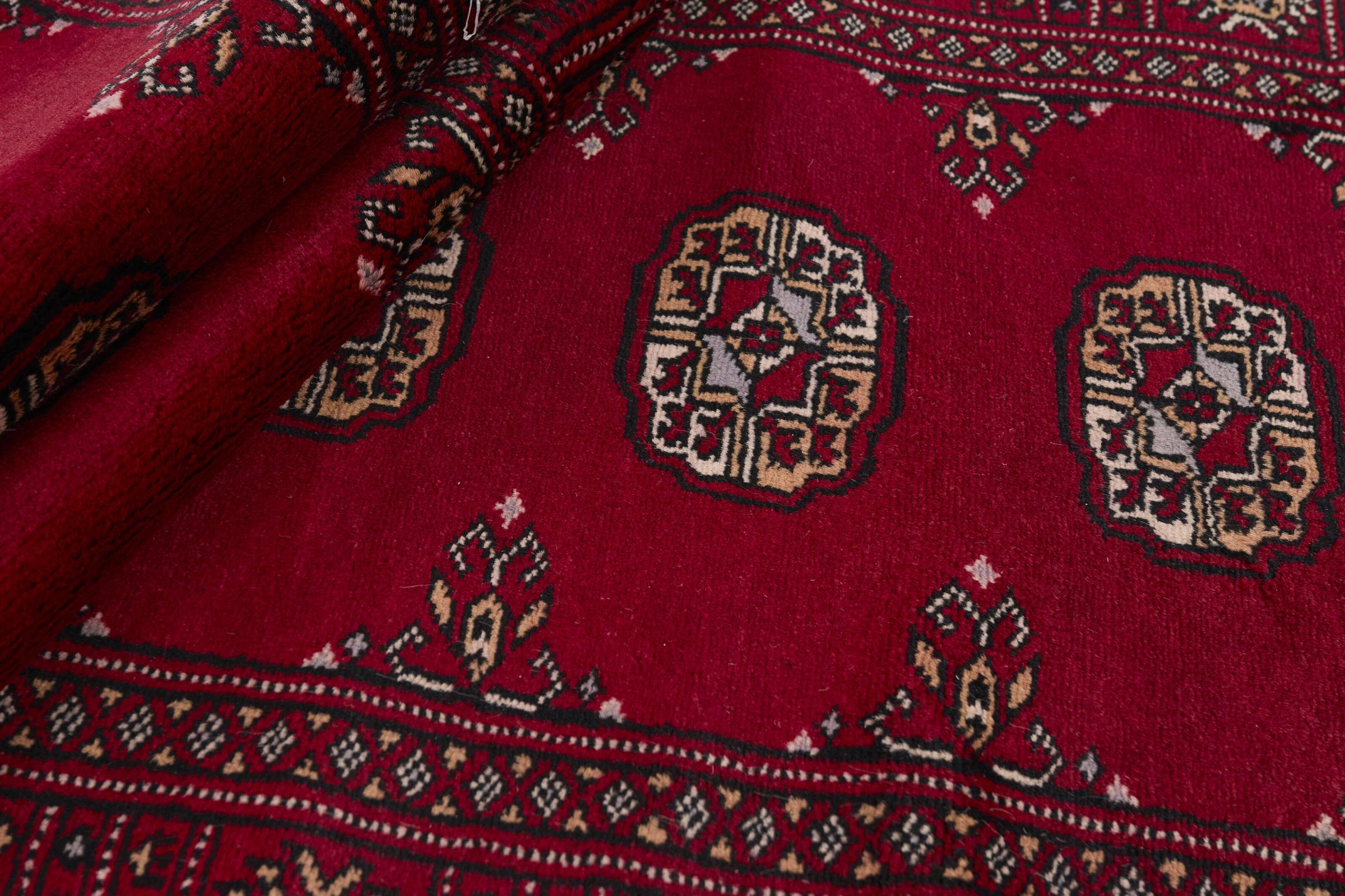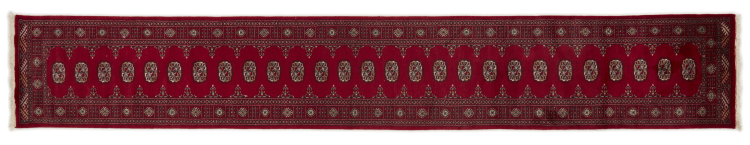 A large part of Pakistani rug production takes place in and around the cities of Lahore and Karachi. Many of the rug knotters of that time fled to Pakistan during the war with India and settled there. Today, especially hand-knotted Pakistan Bukhara rugs are well-known. Similar to the Afghan oriental rugs, Pakistani rugs are also made in dark colours and mostly have shades of red. Even the well-known elephant foot pattern (repeating octagonal pattern) can be found on a Pakistani.
