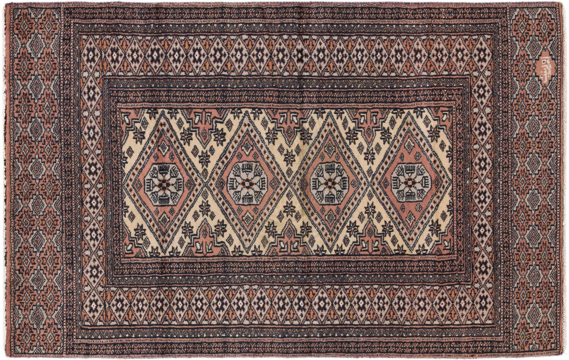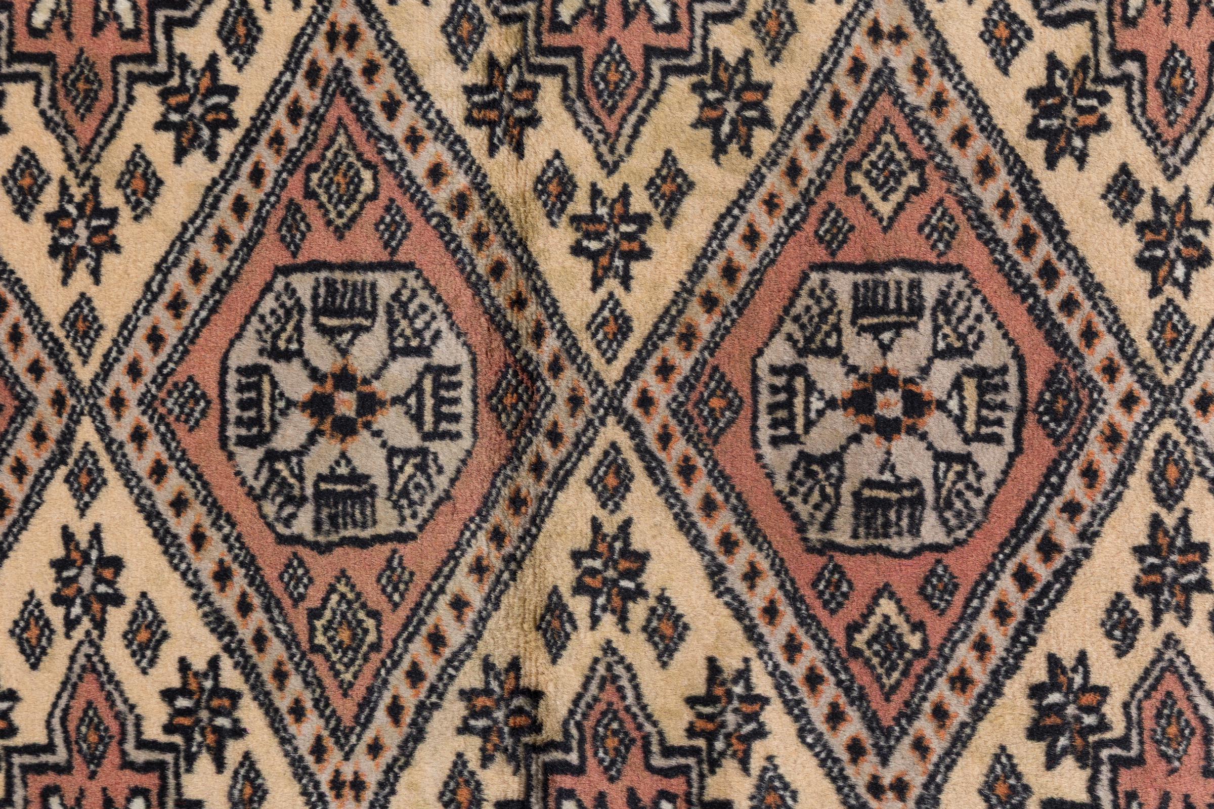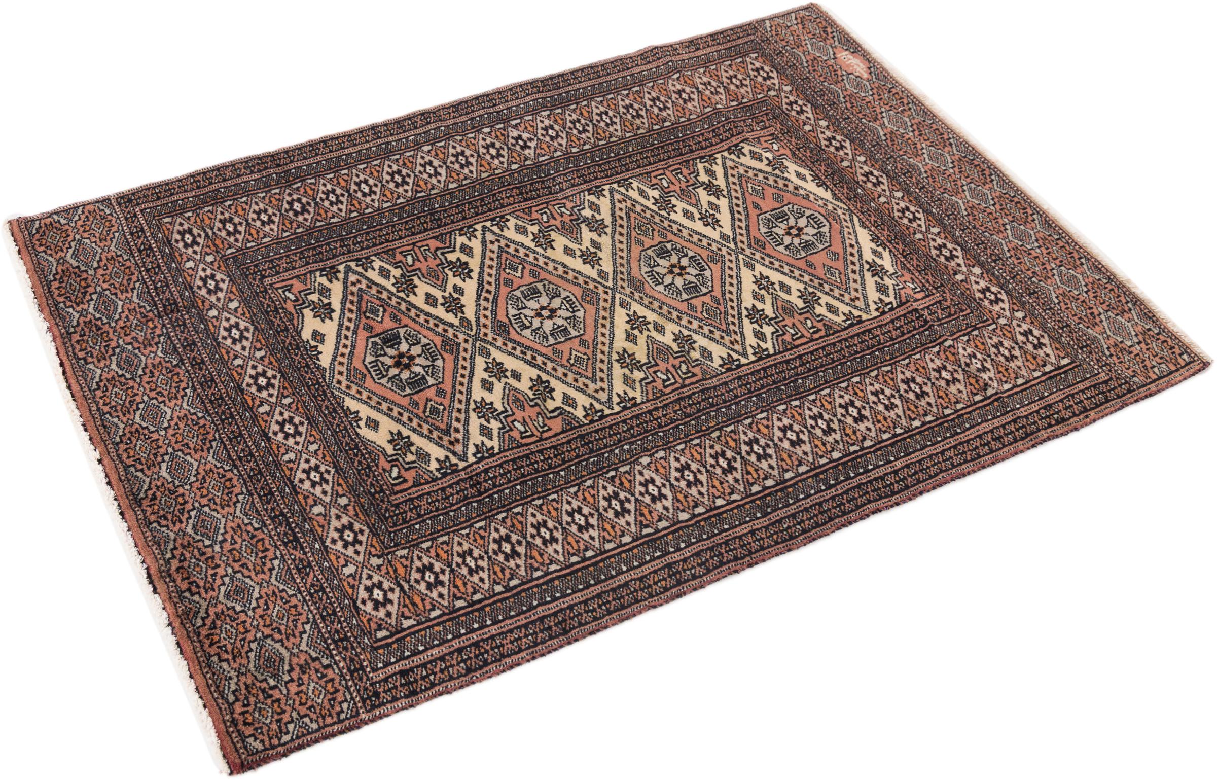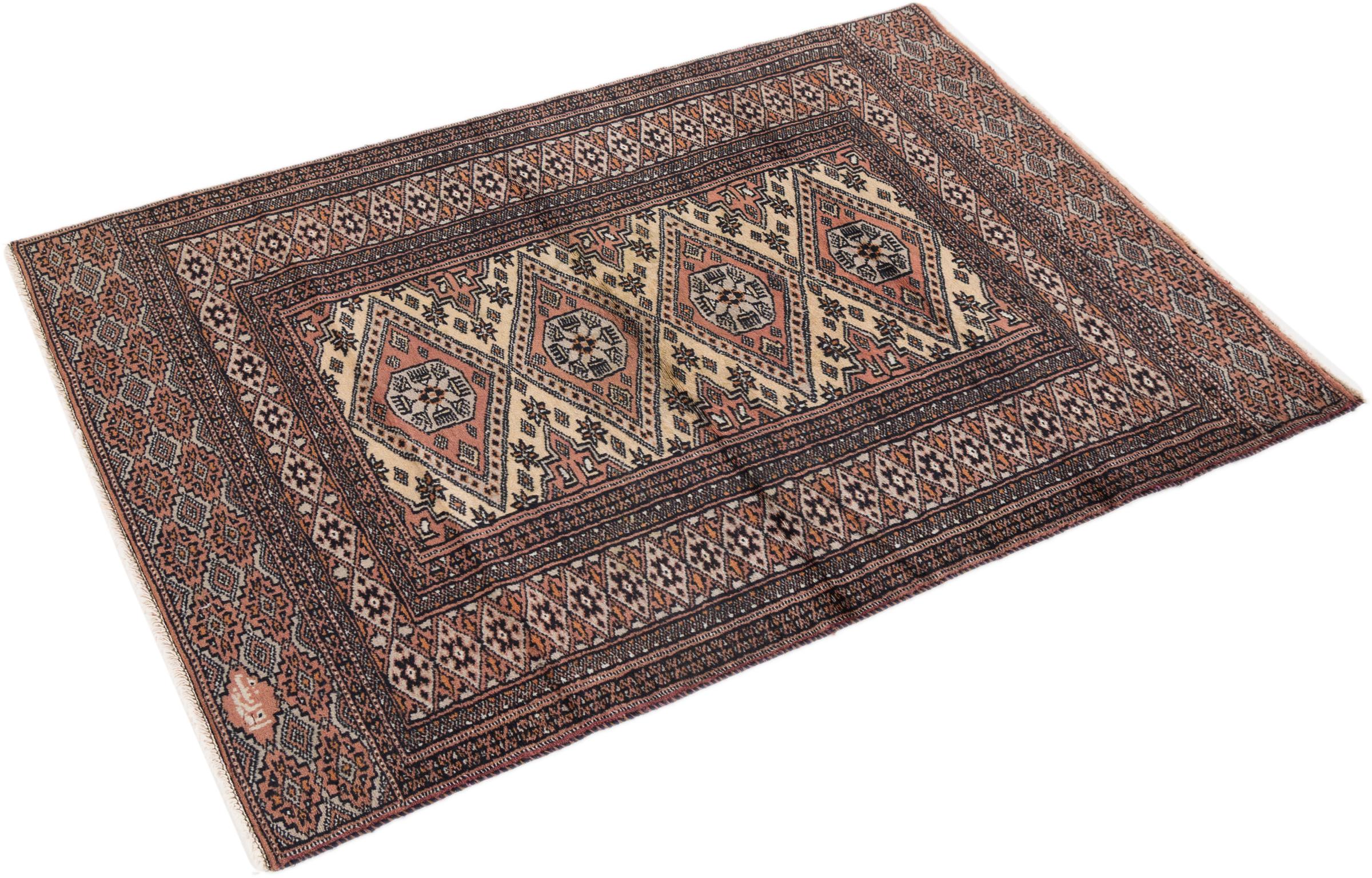 A large part of Pakistani rug production takes place in and around the cities of Lahore and Karachi. Many of the rug knotters of that time fled to Pakistan during the war with India and settled there. Today, especially hand-knotted Pakistan Bukhara rugs are well-known. Similar to the Afghan oriental rugs, Pakistani rugs are also made in dark colours and mostly have shades of red. Even the well-known elephant foot pattern (repeating octagonal pattern) can be found on a Pakistani.