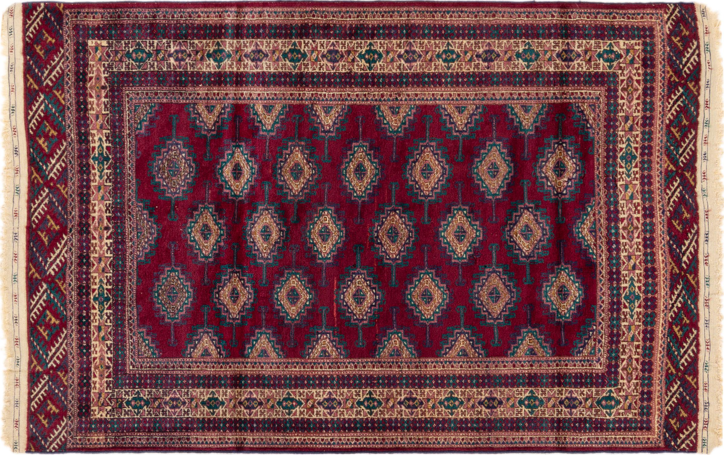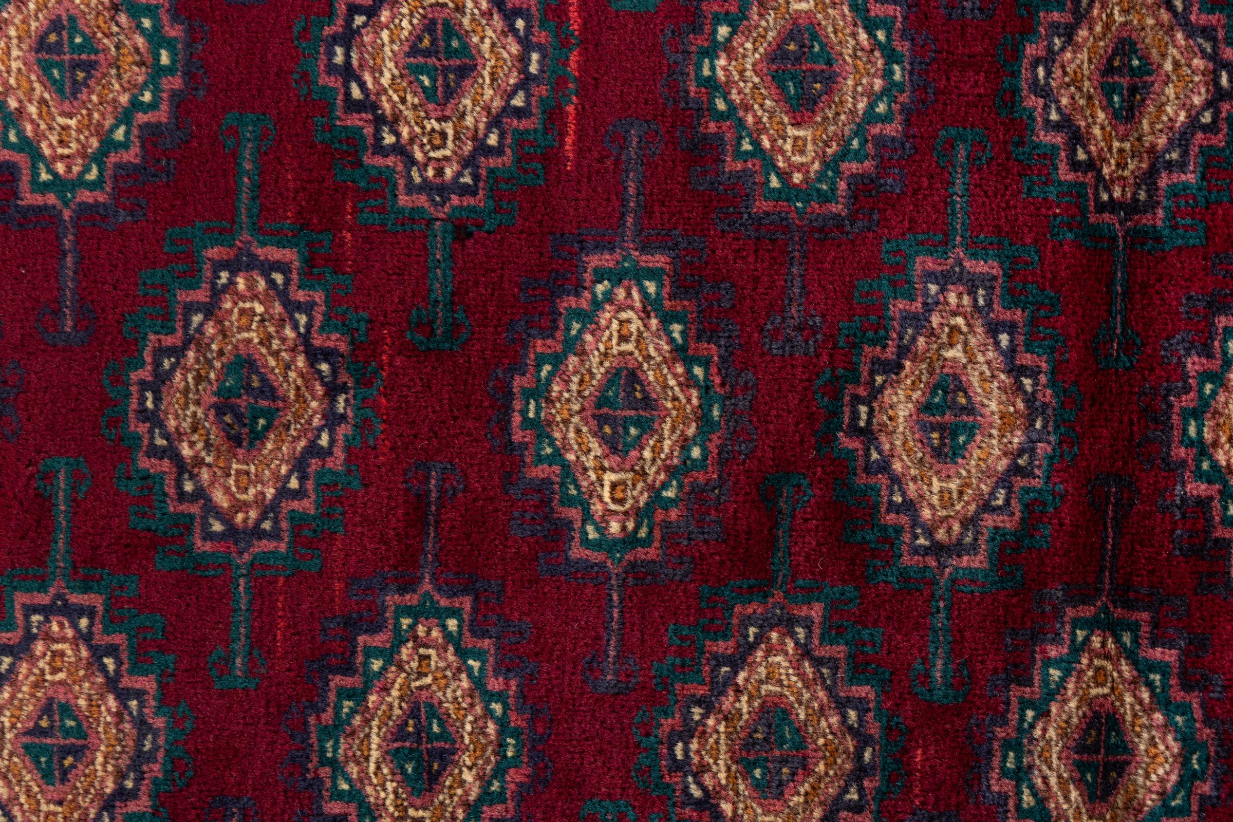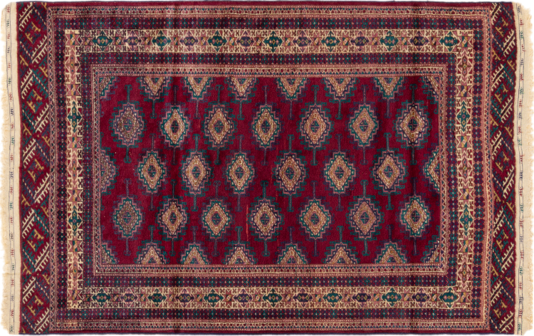 A large part of Pakistani rug production takes place in and around the cities of Lahore and Karachi. Many of the rug knotters of that time fled to Pakistan during the war with India and settled there. Today, especially hand-knotted Pakistan Bukhara rugs are well-known. Similar to the Afghan oriental rugs, Pakistani rugs are also made in dark colours and mostly have shades of red. Even the well-known elephant foot pattern (repeating octagonal pattern) can be found on a Pakistani.
