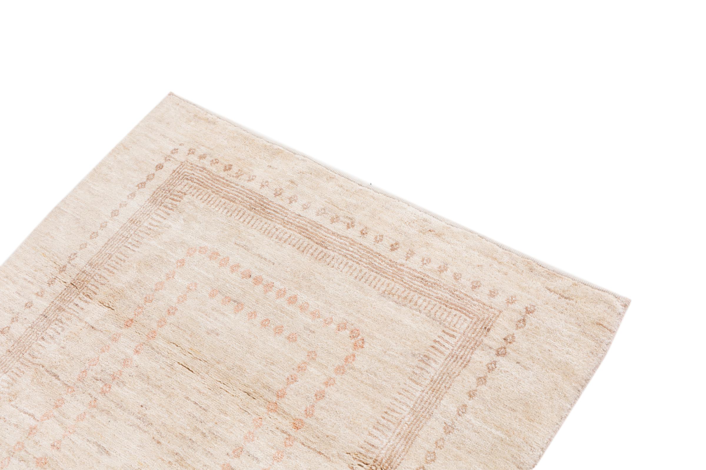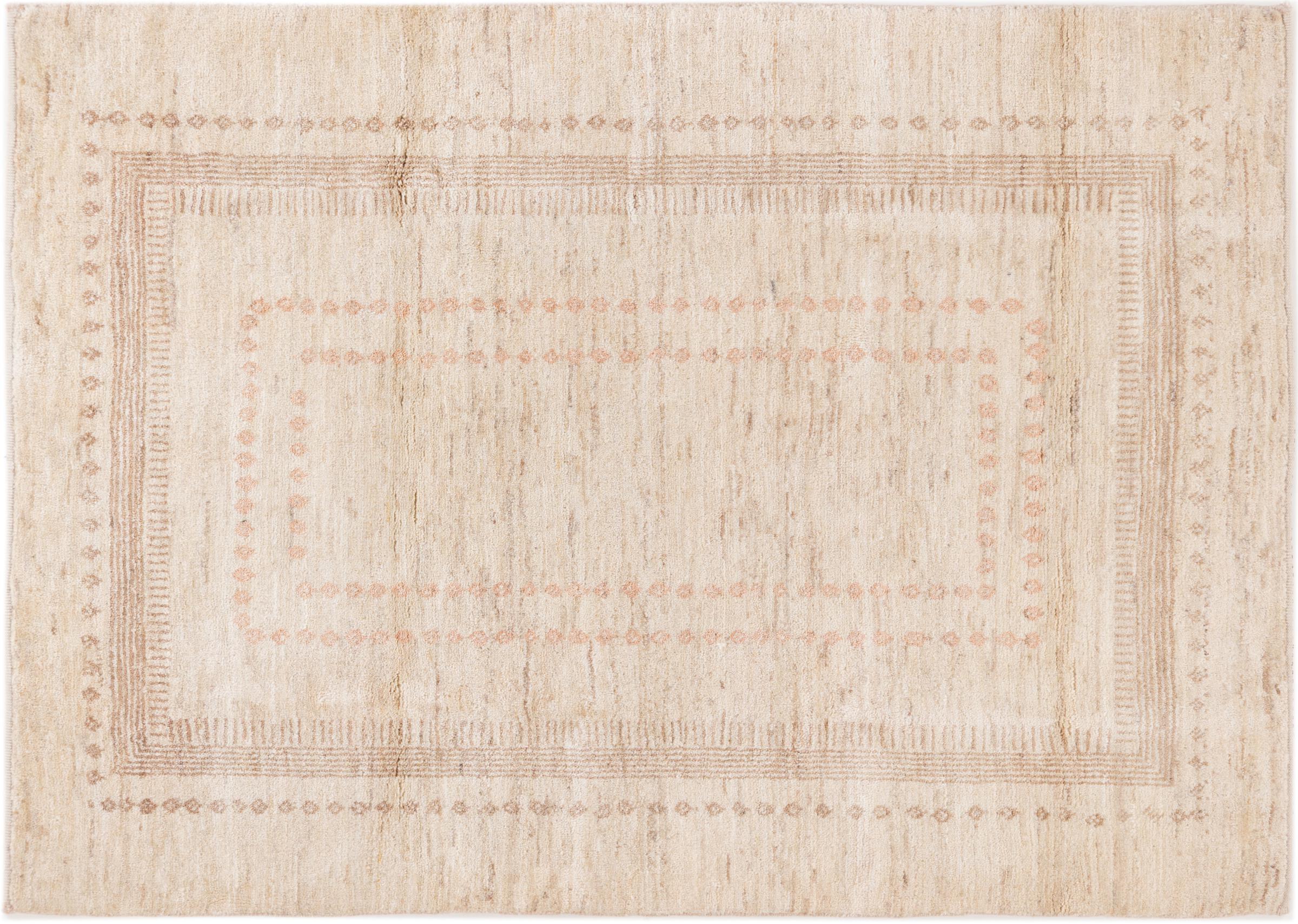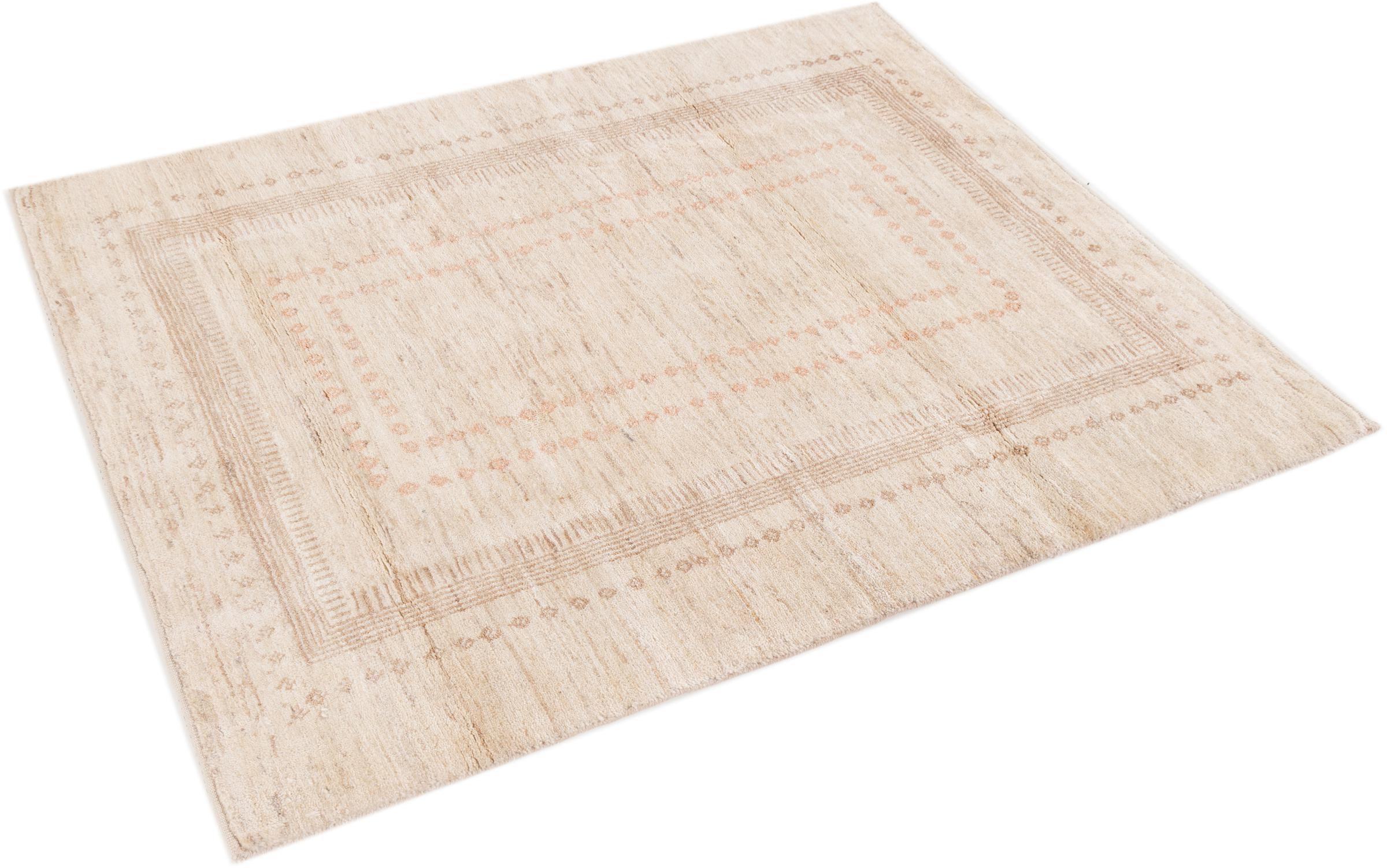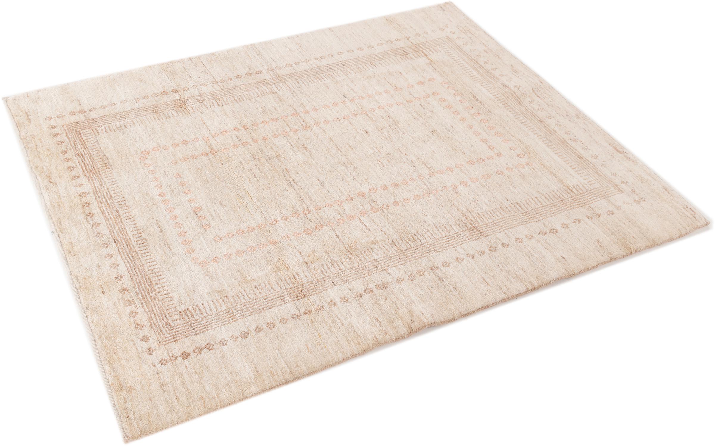 This beautiful rug is a Persian Gabbeh and thus belongs to the highest quality Gabbeh rugs. The rugs are knotted by nomads or semi-nomads in Iran following traditional handicraft. The simple motifs and patterns are mostly inspired by the nomads' close environment. For example camels, trees or bushes can be found on the traditional rugs. Persian Gabbeh rugs are made of wool from locally raised flocks of sheep. The wool is therefore mostly still spun by hand. Thus each of these oriental rugs embodies a unique character of centuries-old culture.