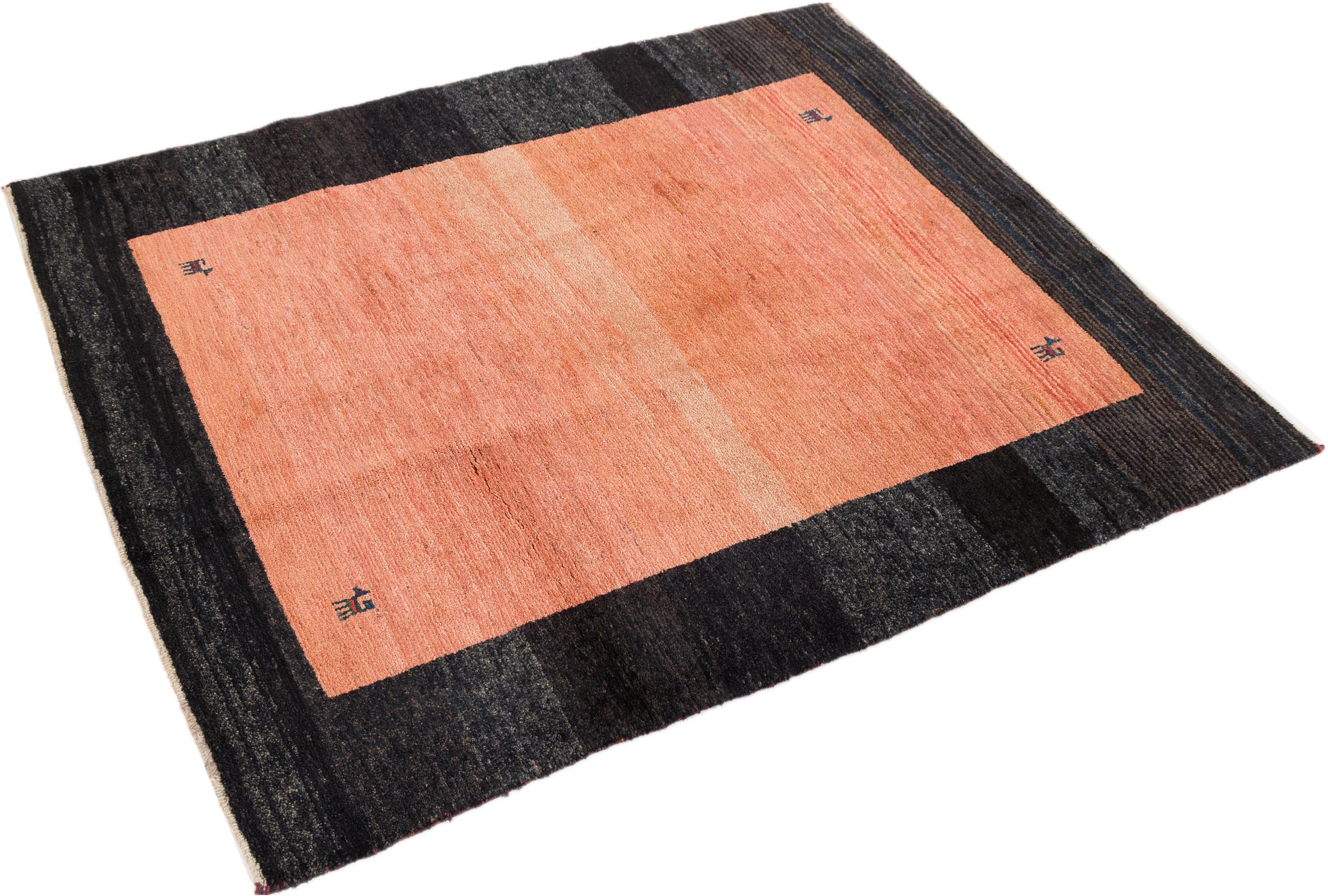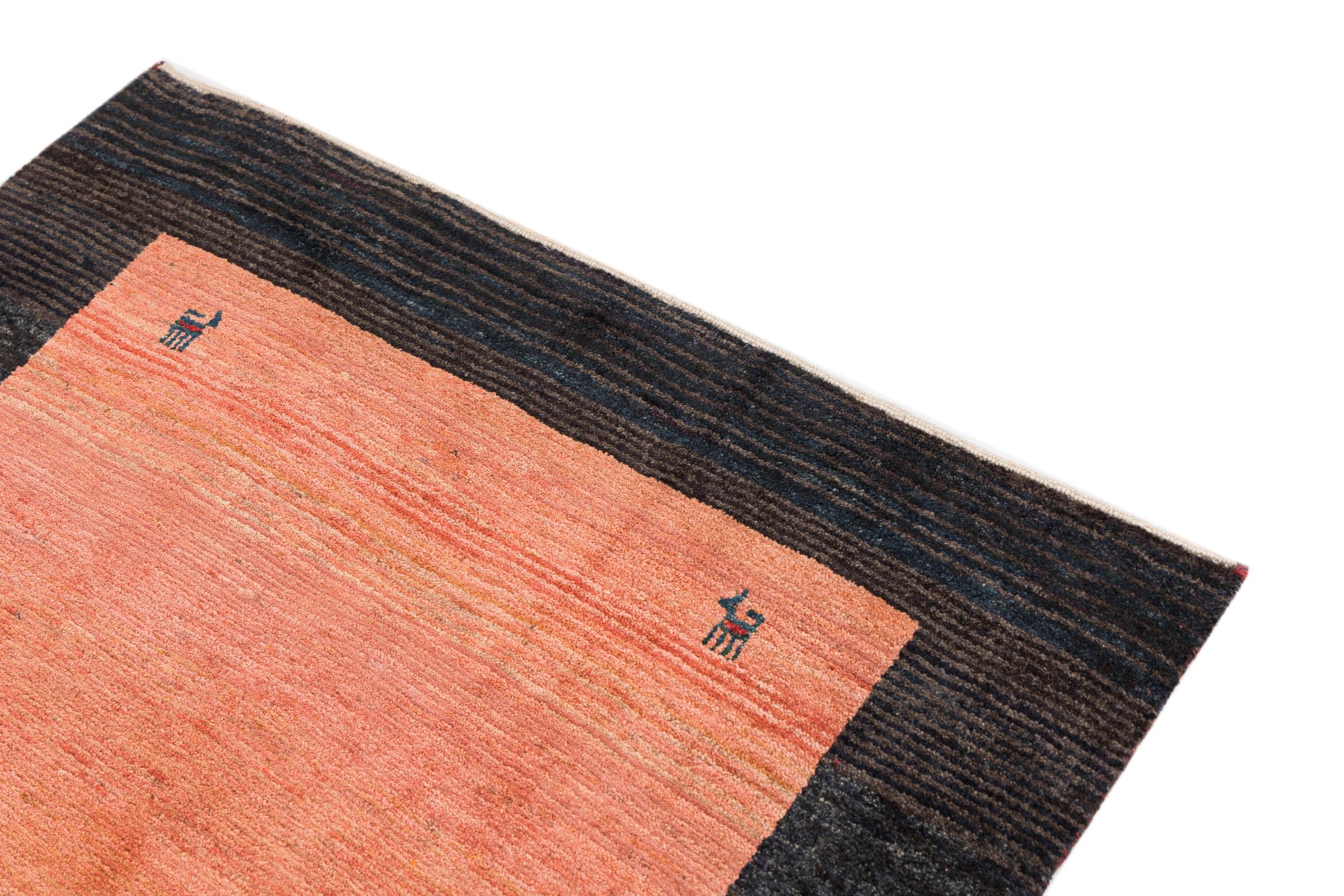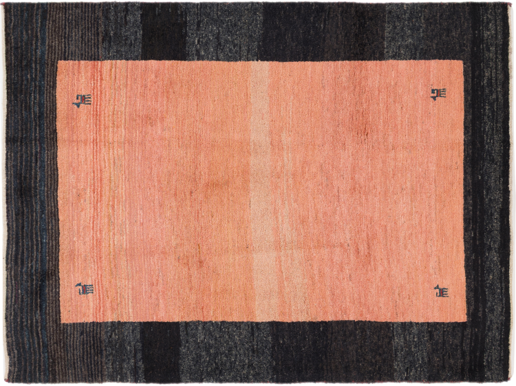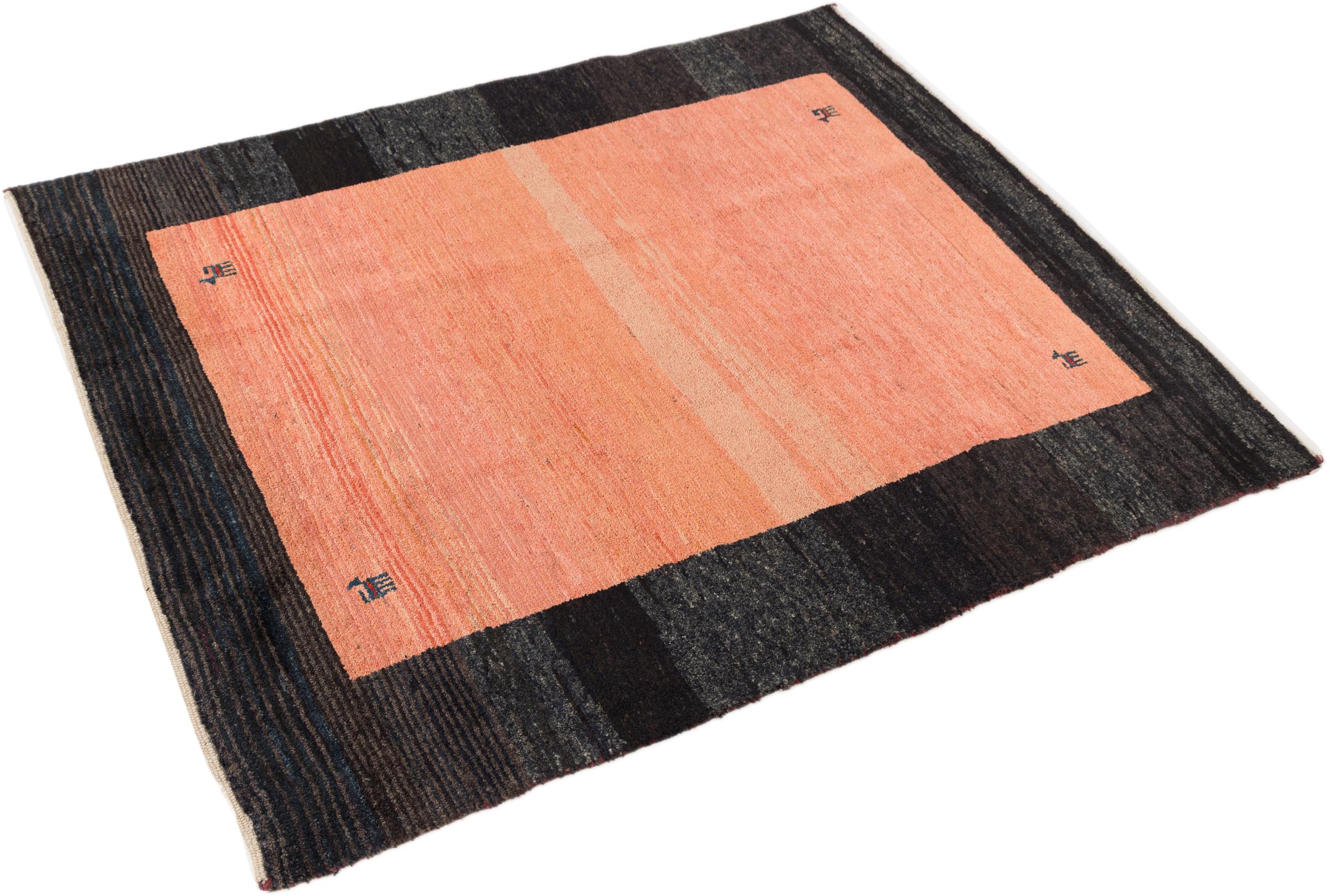 This beautiful rug is a Persian Gabbeh and thus belongs to the highest quality Gabbeh rugs. The rugs are knotted by nomads or semi-nomads in Iran following traditional handicraft. The simple motifs and patterns are mostly inspired by the nomads' close environment. For example camels, trees or bushes can be found on the traditional rugs. Persian Gabbeh rugs are made of wool from locally raised flocks of sheep. The wool is therefore mostly still spun by hand. Thus each of these oriental rugs embodies a unique character of centuries-old culture.