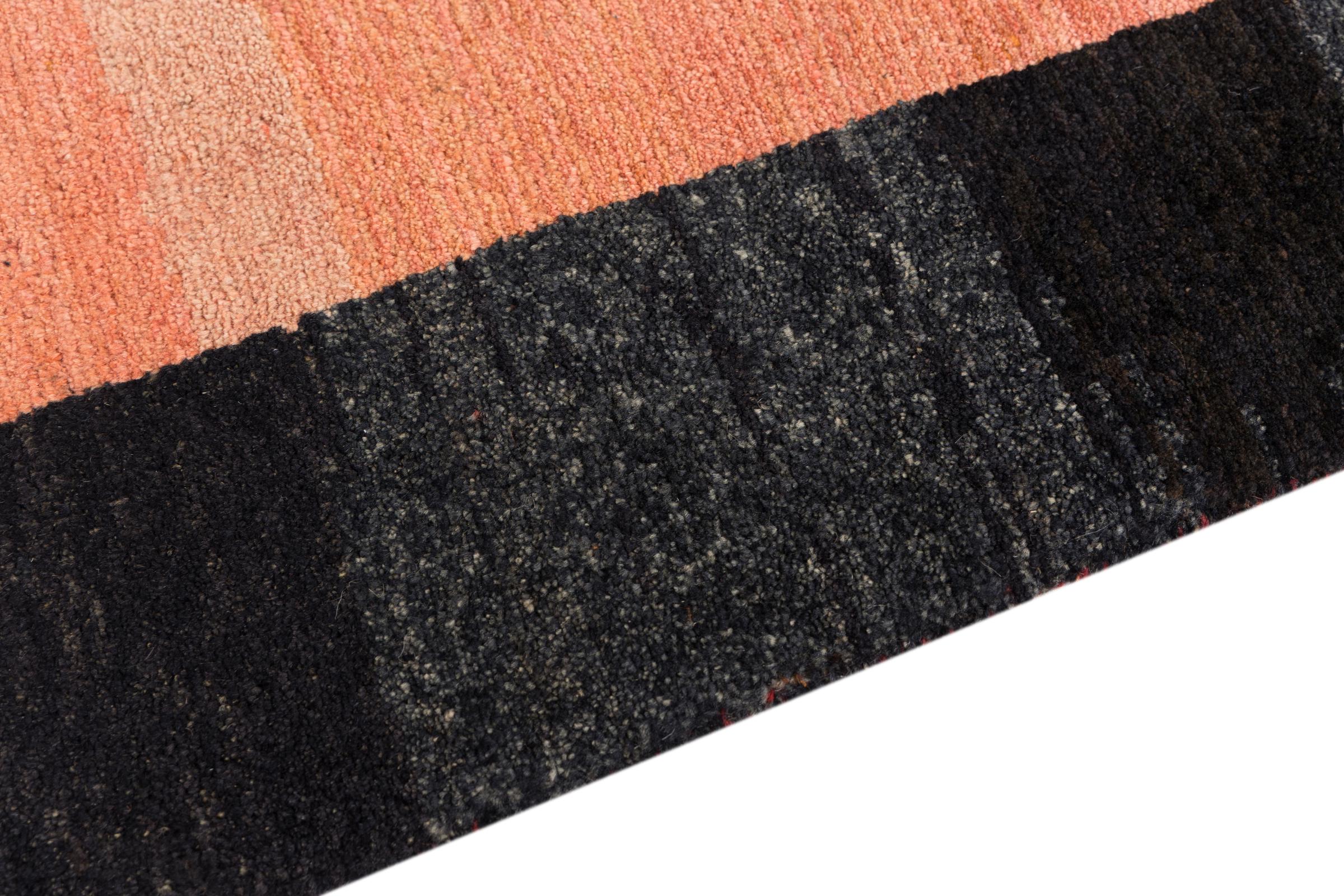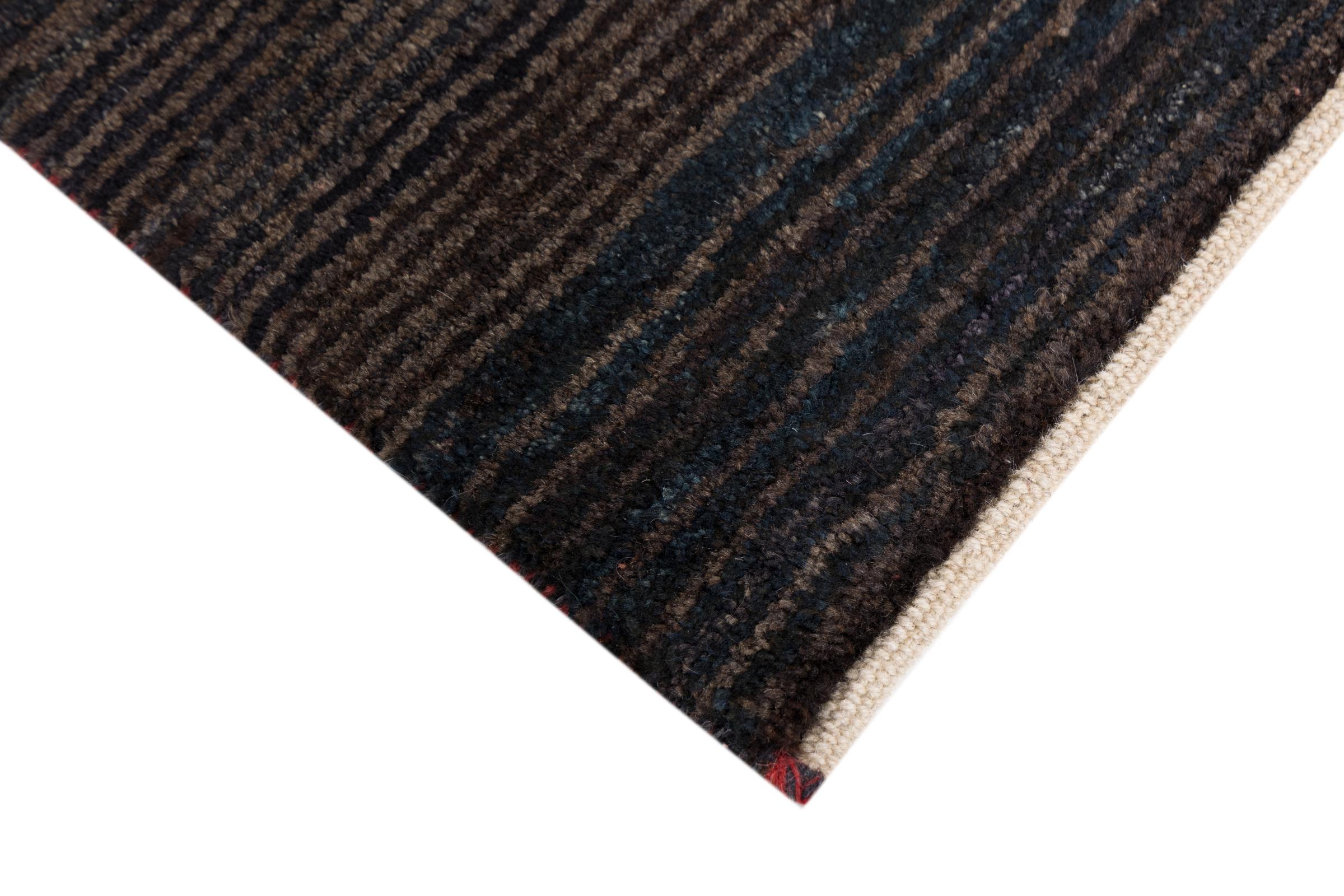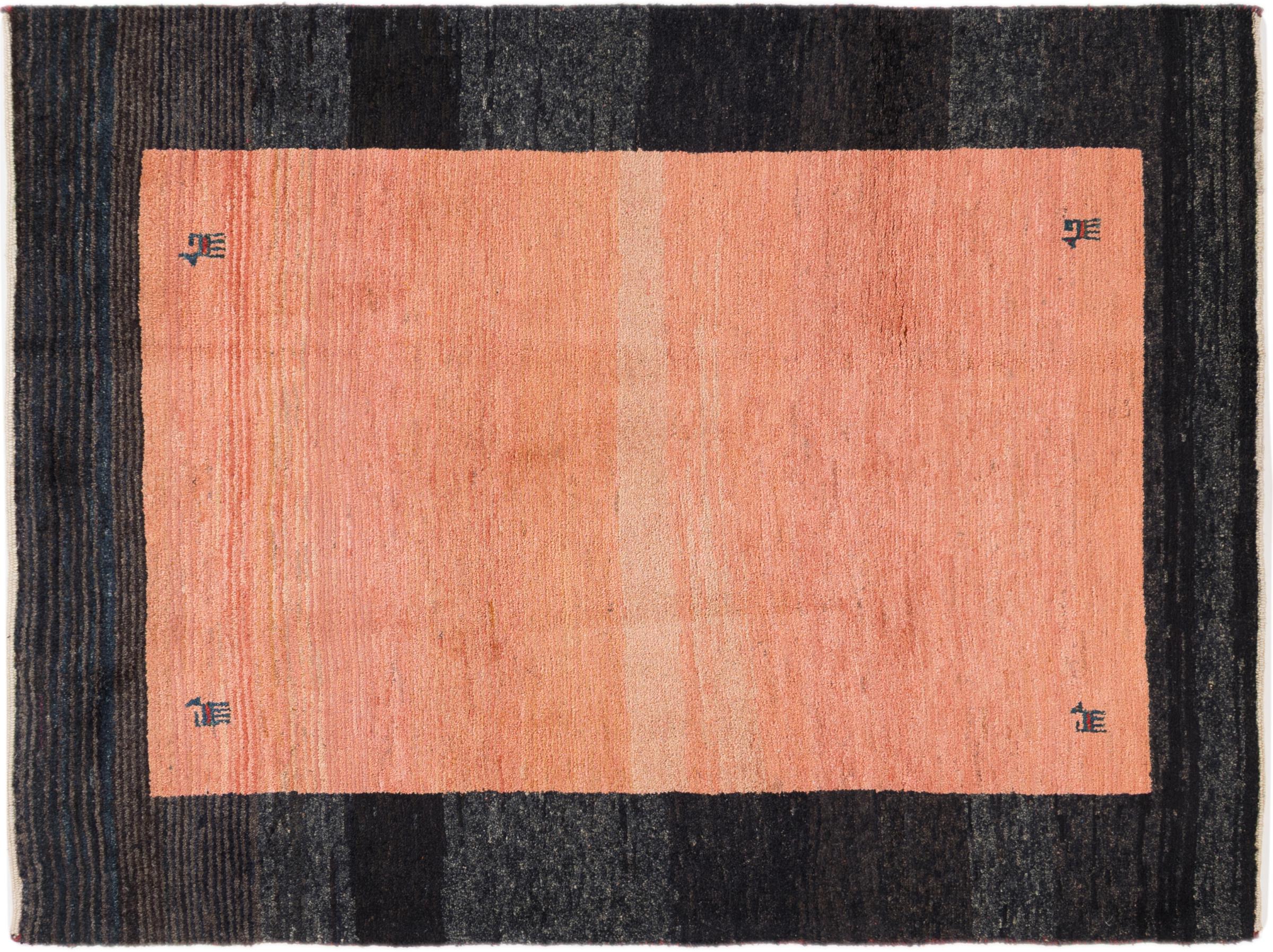 This beautiful rug is a Persian Gabbeh and thus belongs to the highest quality Gabbeh rugs. The rugs are knotted by nomads or semi-nomads in Iran following traditional handicraft. The simple motifs and patterns are mostly inspired by the nomads' close environment. For example camels, trees or bushes can be found on the traditional rugs. Persian Gabbeh rugs are made of wool from locally raised flocks of sheep. The wool is therefore mostly still spun by hand. Thus each of these oriental rugs embodies a unique character of centuries-old culture.