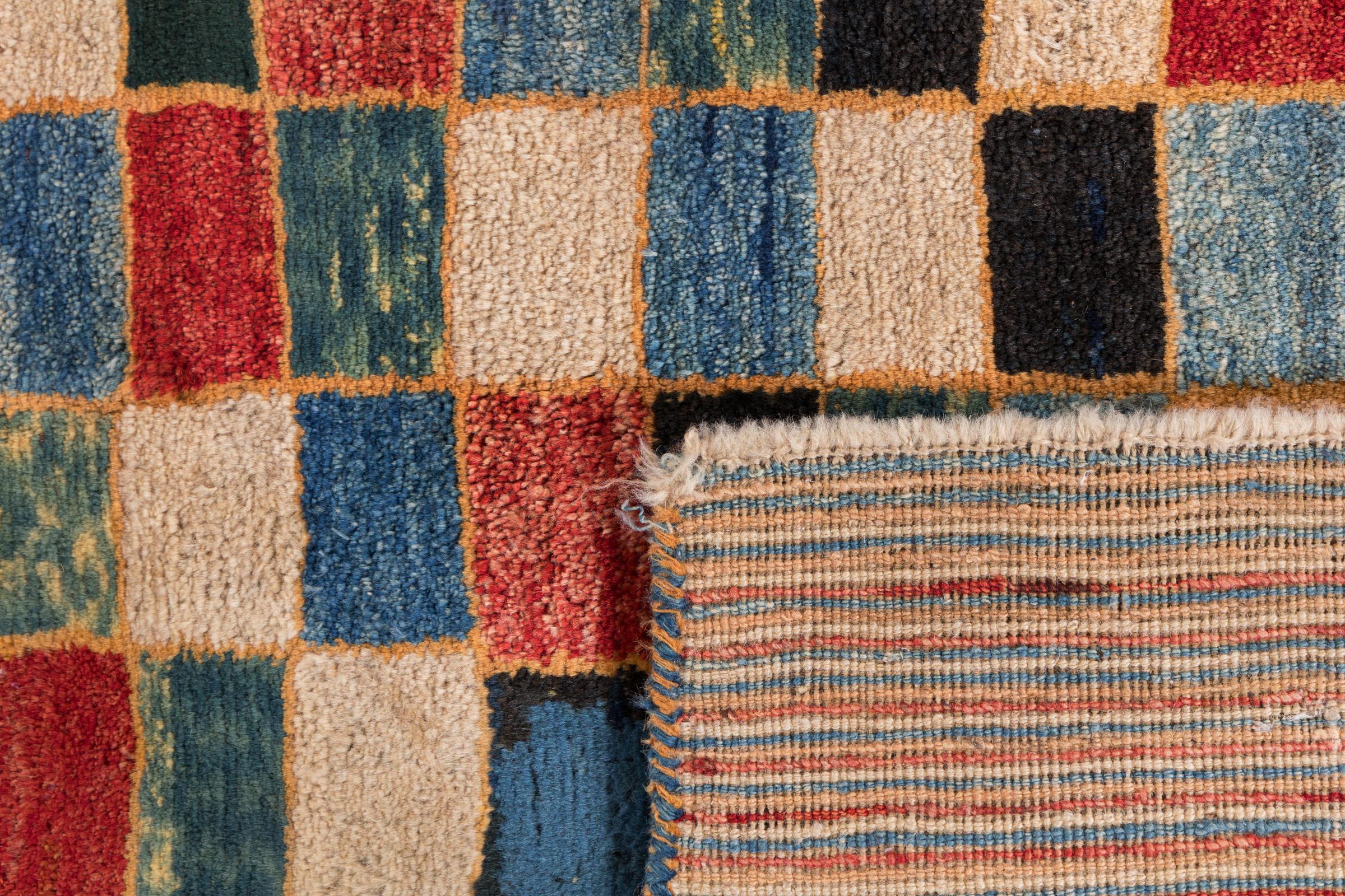 This hand-knotted Persian Gabbeh is immediately impressive with its high quality and very robust pile. It was knotted by hand by Ghashghai nomads in the province of Fars in southern Persia using the best local sheep's wool. Natural vegetable dyes are used to dye the wool. This also makes it a very valuable enrichment for the children's room. This Persian Gabbeh represents the highest class of Gabbeh rugs.