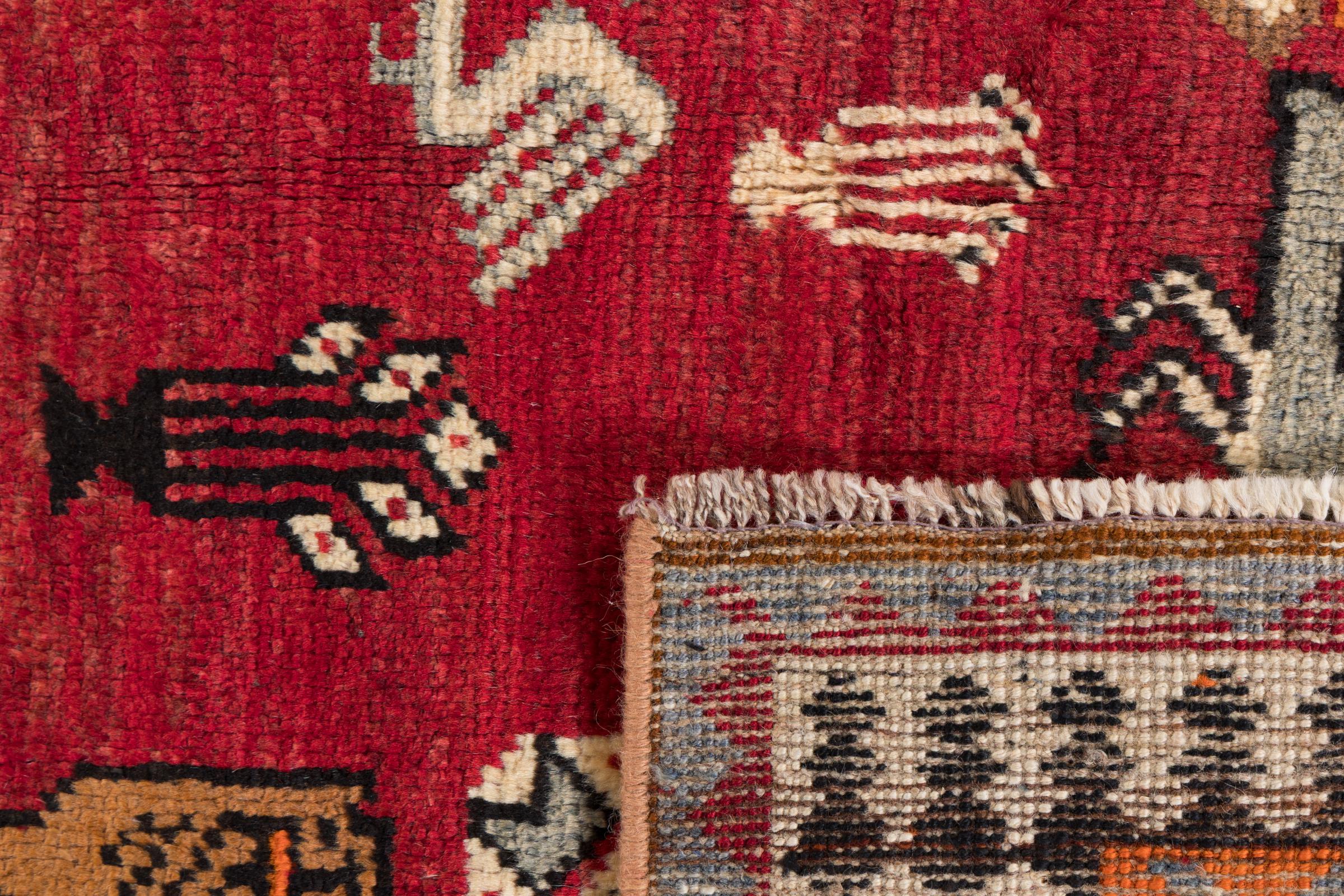 This hand-knotted Persian Gabbeh is immediately impressive with its high quality and very robust pile. It was knotted by hand by Ghashghai nomads in the province of Fars in southern Persia using the best local sheep's wool. Natural vegetable dyes are used to dye the wool. This also makes it a very valuable enrichment for the children's room. This Persian Gabbeh represents the highest class of Gabbeh rugs.