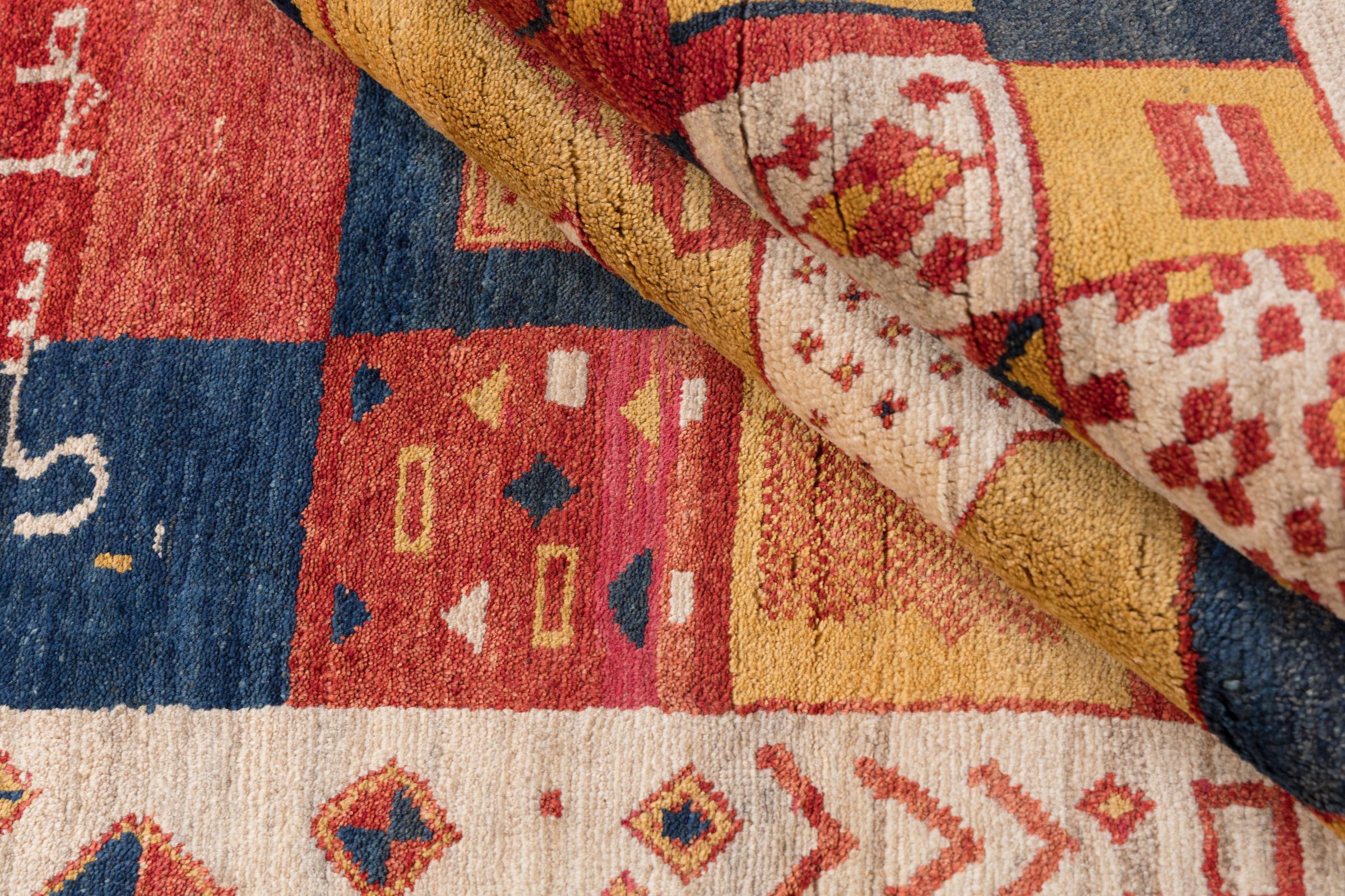 This hand-knotted Persian Gabbeh is immediately impressive with its high quality and very robust pile. It was knotted by hand by Ghashghai nomads in the province of Fars in southern Persia using the best local sheep's wool. Natural vegetable dyes are used to dye the wool. This also makes it a very valuable enrichment for the children's room. This Persian Gabbeh represents the highest class of Gabbeh rugs.