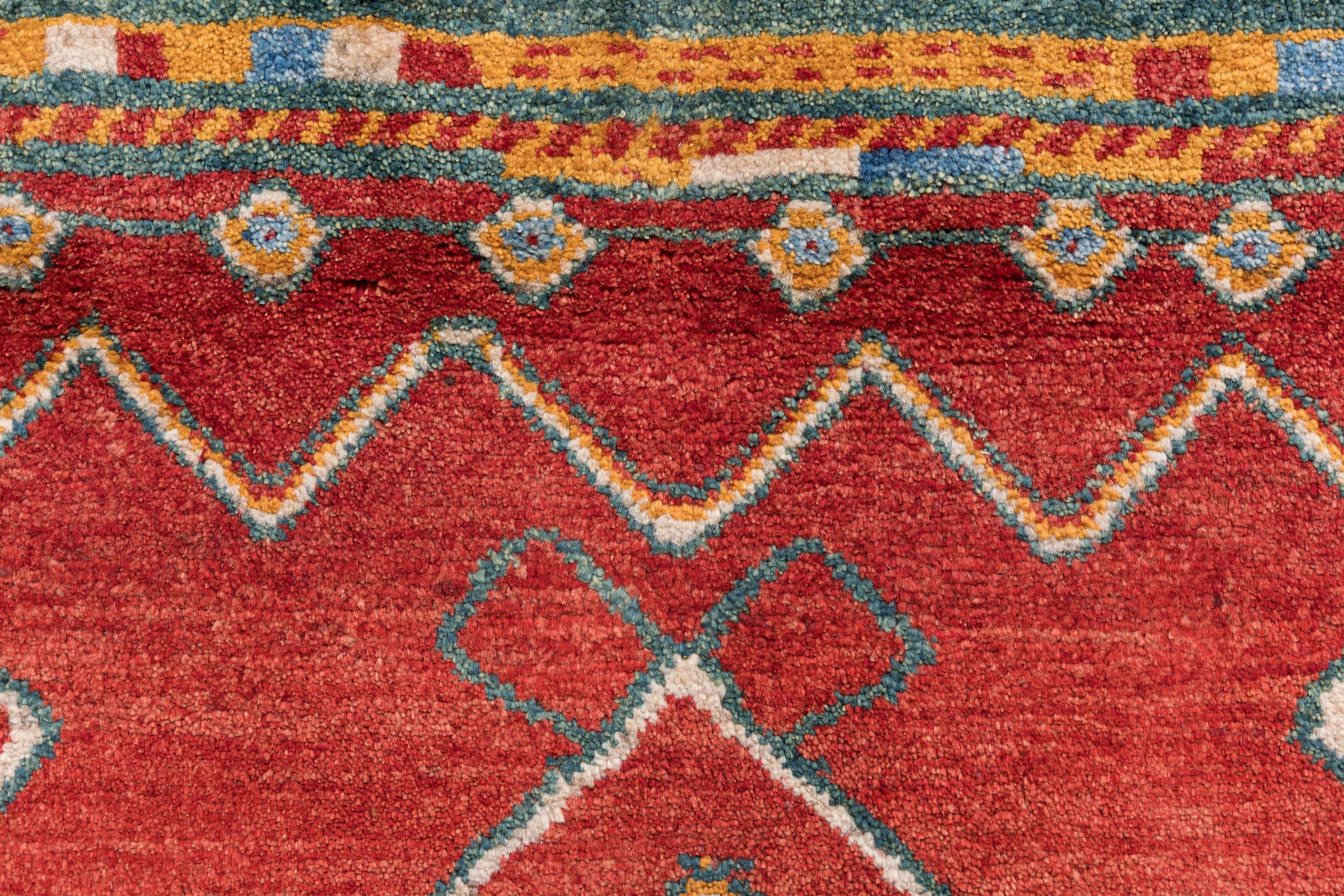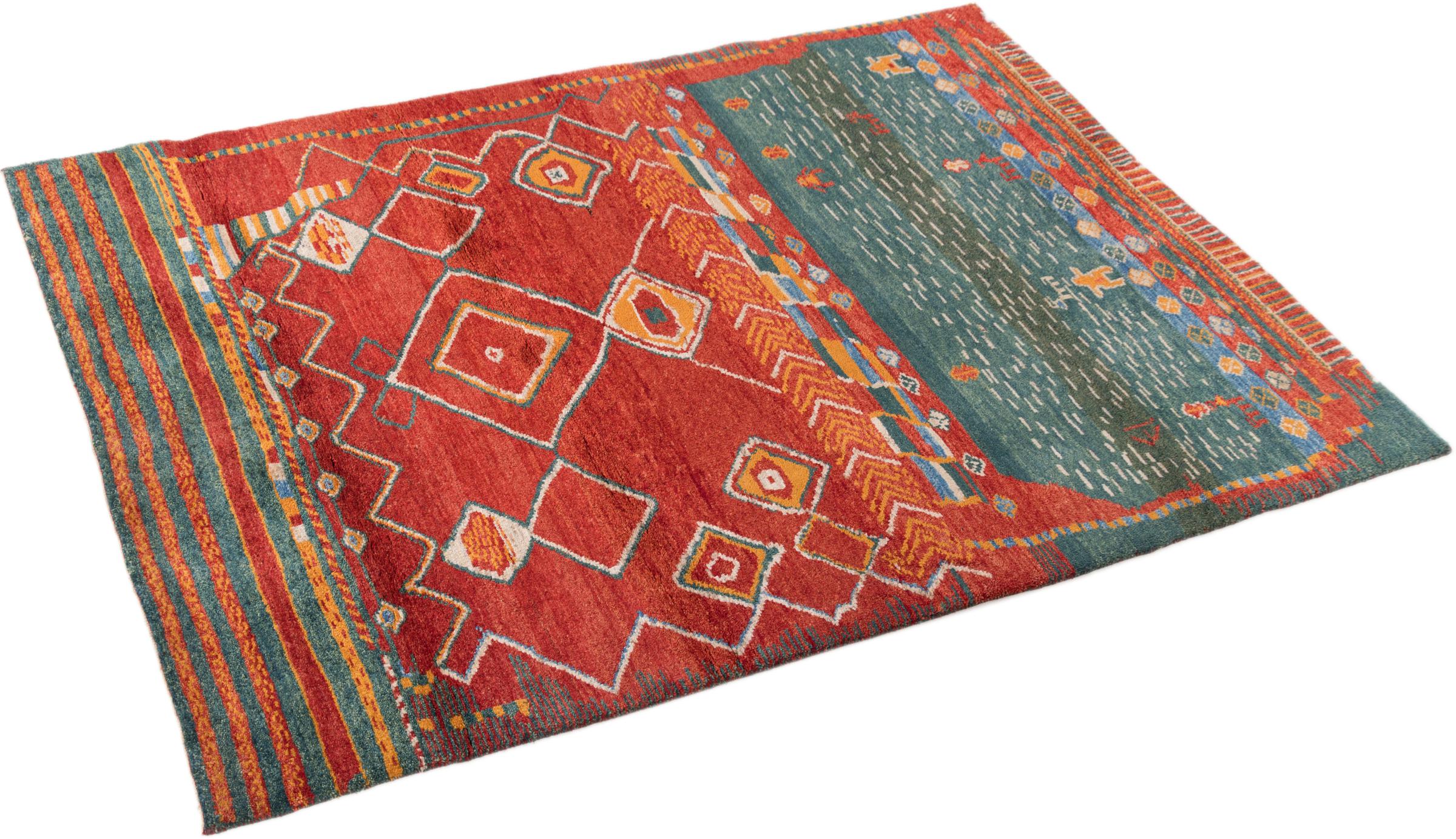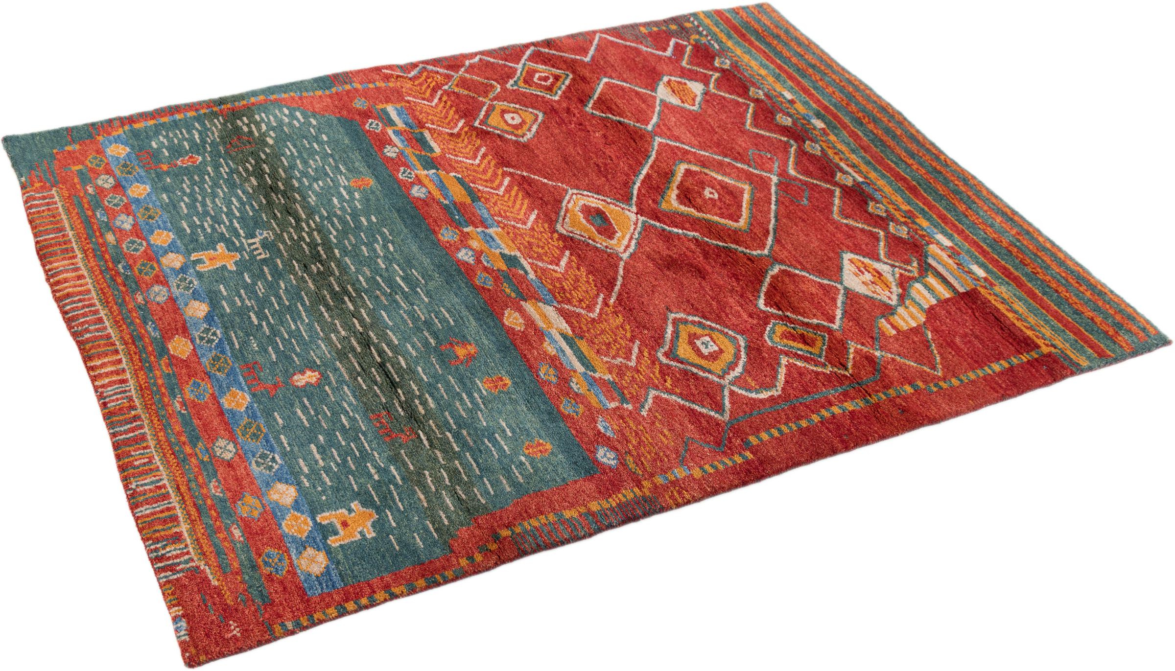 This hand-knotted Persian Gabbeh is immediately impressive with its high quality and very robust pile. It was knotted by hand by Ghashghai nomads in the province of Fars in southern Persia using the best local sheep's wool. Natural vegetable dyes are used to dye the wool. This also makes it a very valuable enrichment for the children's room. This Persian Gabbeh represents the highest class of Gabbeh rugs.