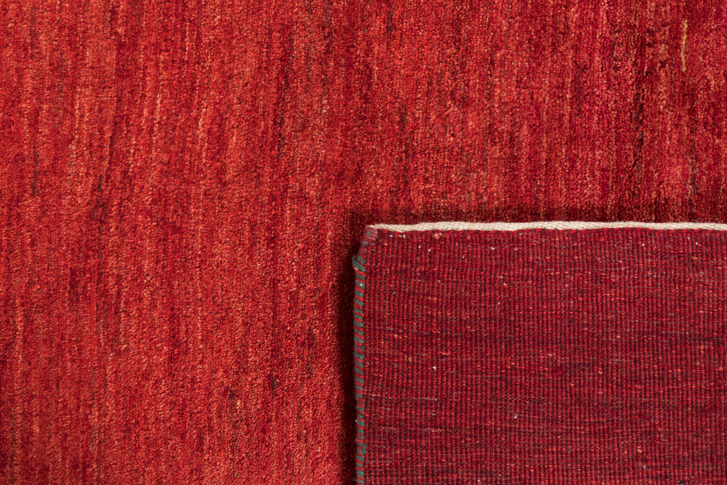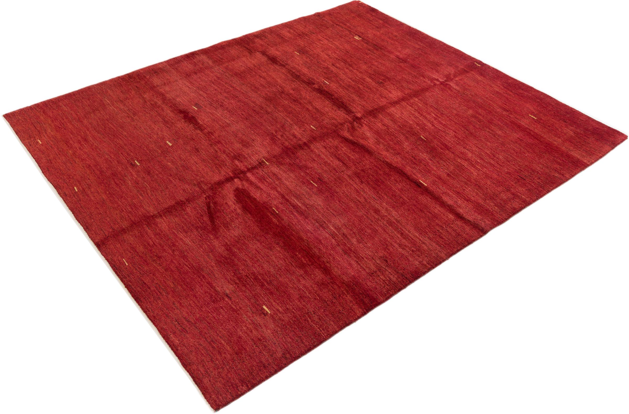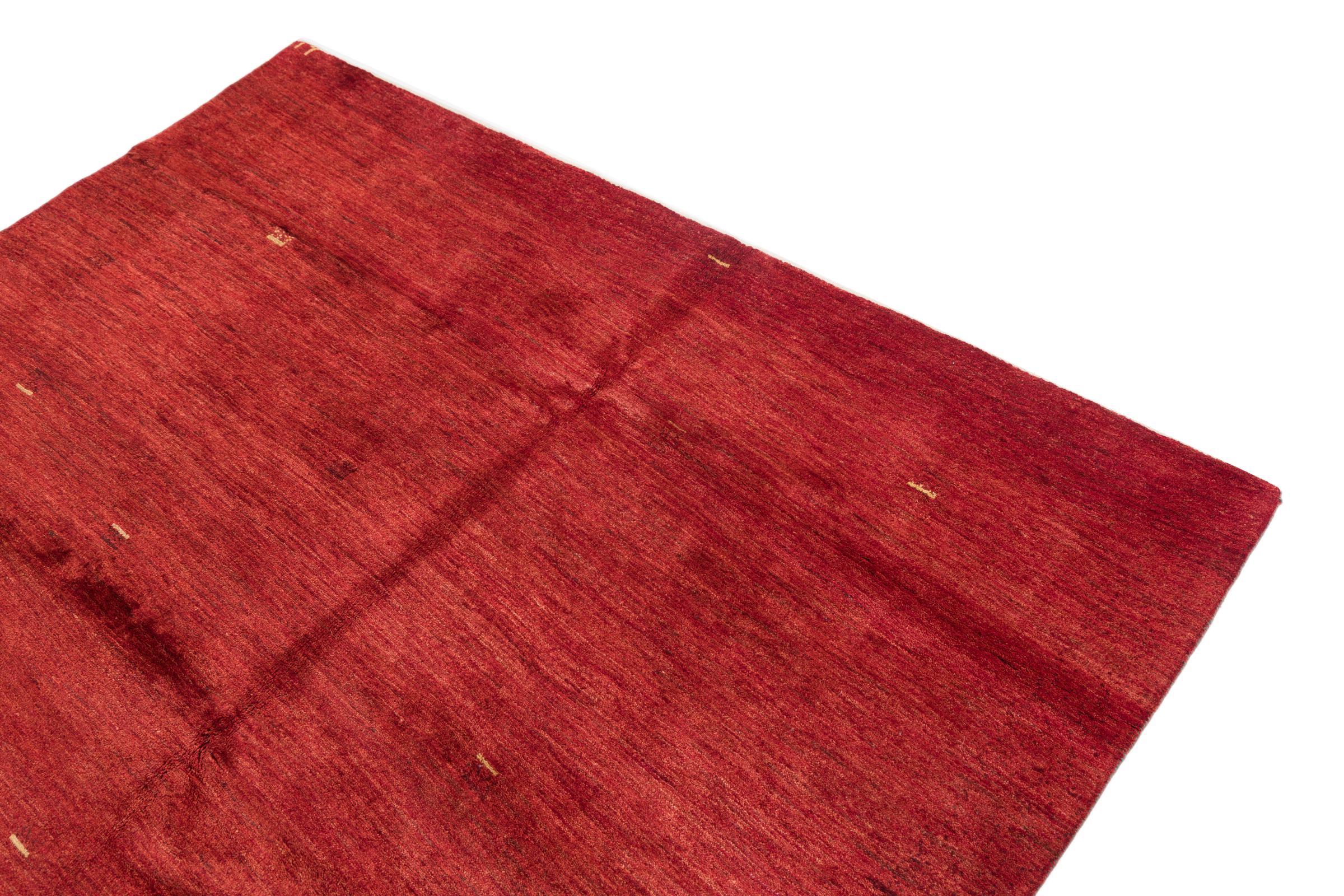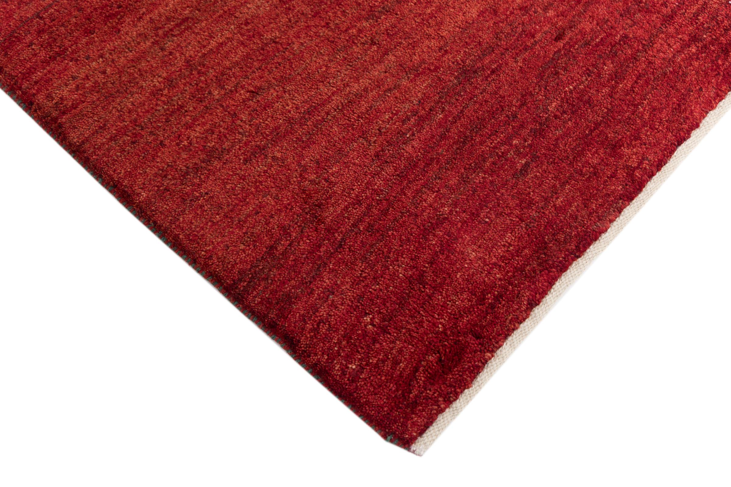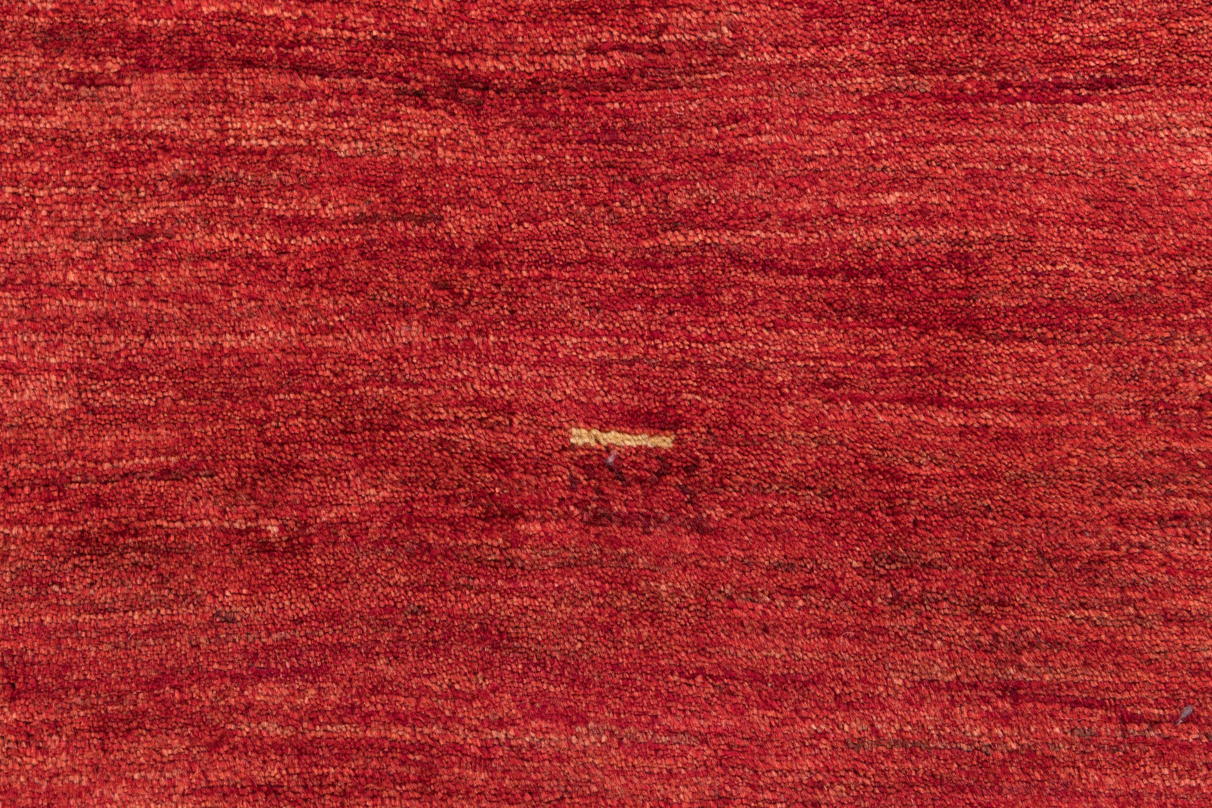 This beautiful rug is a Persian Gabbeh and thus belongs to the highest quality Gabbeh rugs. The rugs are knotted by nomads or semi-nomads in Iran following traditional handicraft. The simple motifs and patterns are mostly inspired by the nomads' close environment. For example camels, trees or bushes can be found on the traditional rugs. Persian Gabbeh rugs are made of wool from locally raised flocks of sheep. The wool is therefore mostly still spun by hand. Thus each of these oriental rugs embodies a unique character of centuries-old culture.