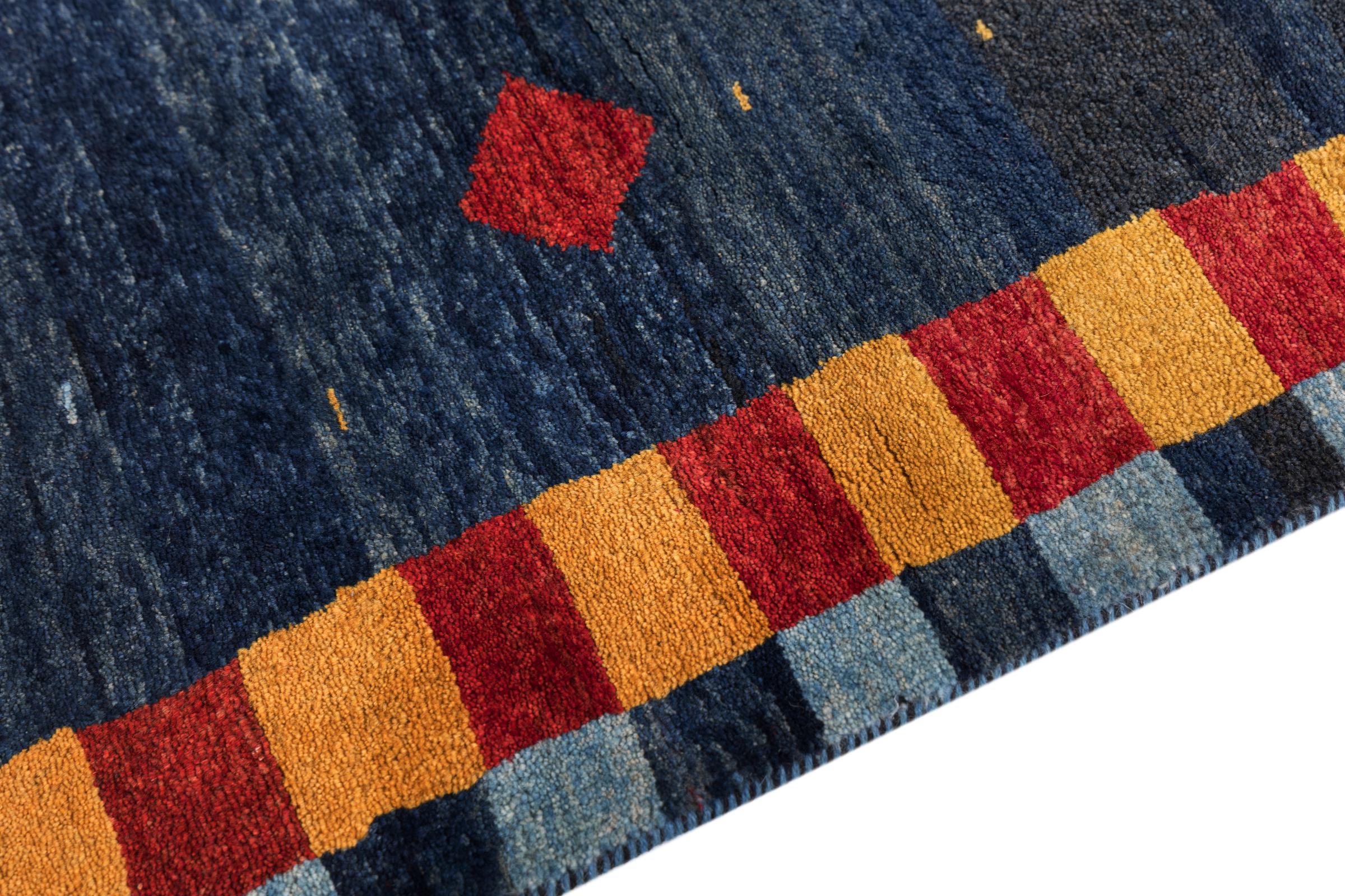 This hand-knotted Persian Gabbeh is immediately impressive with its high quality and very robust pile. It was knotted by hand by Ghashghai nomads in the province of Fars in southern Persia using the best local sheep's wool. Natural vegetable dyes are used to dye the wool. This also makes it a very valuable enrichment for the children's room. This Persian Gabbeh represents the highest class of Gabbeh rugs.