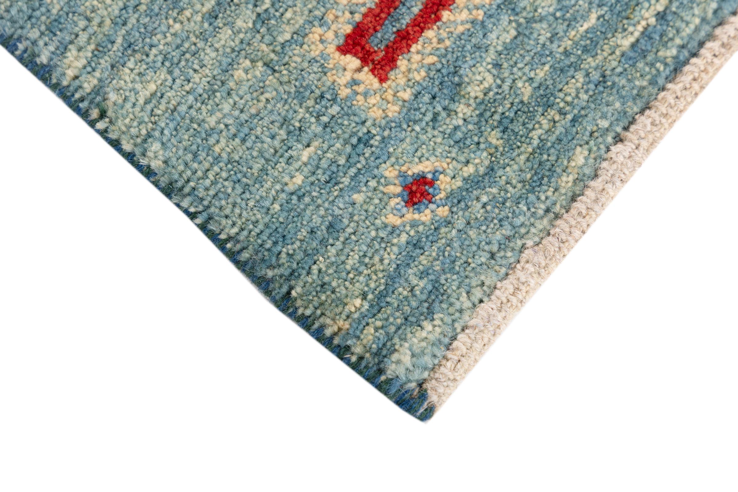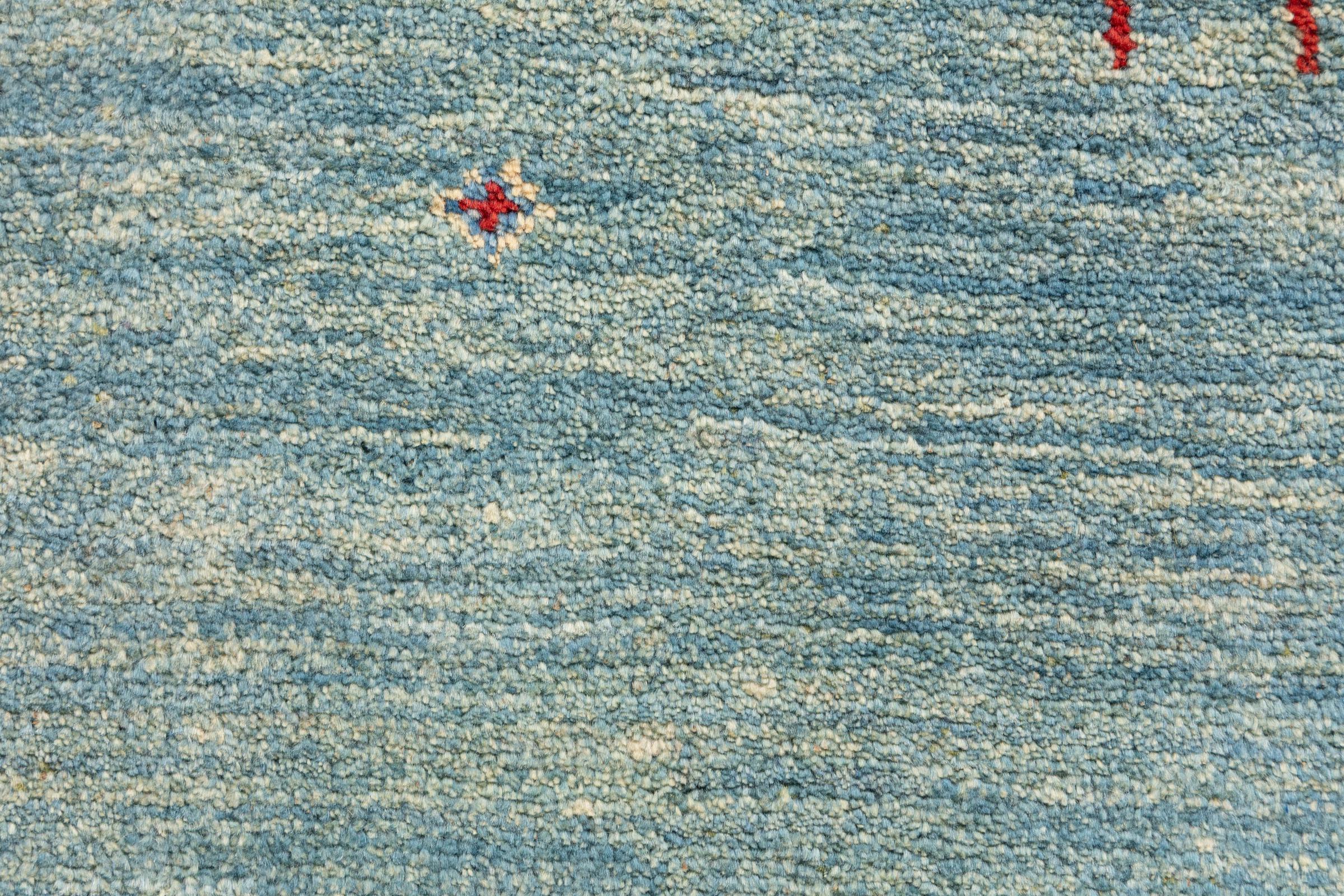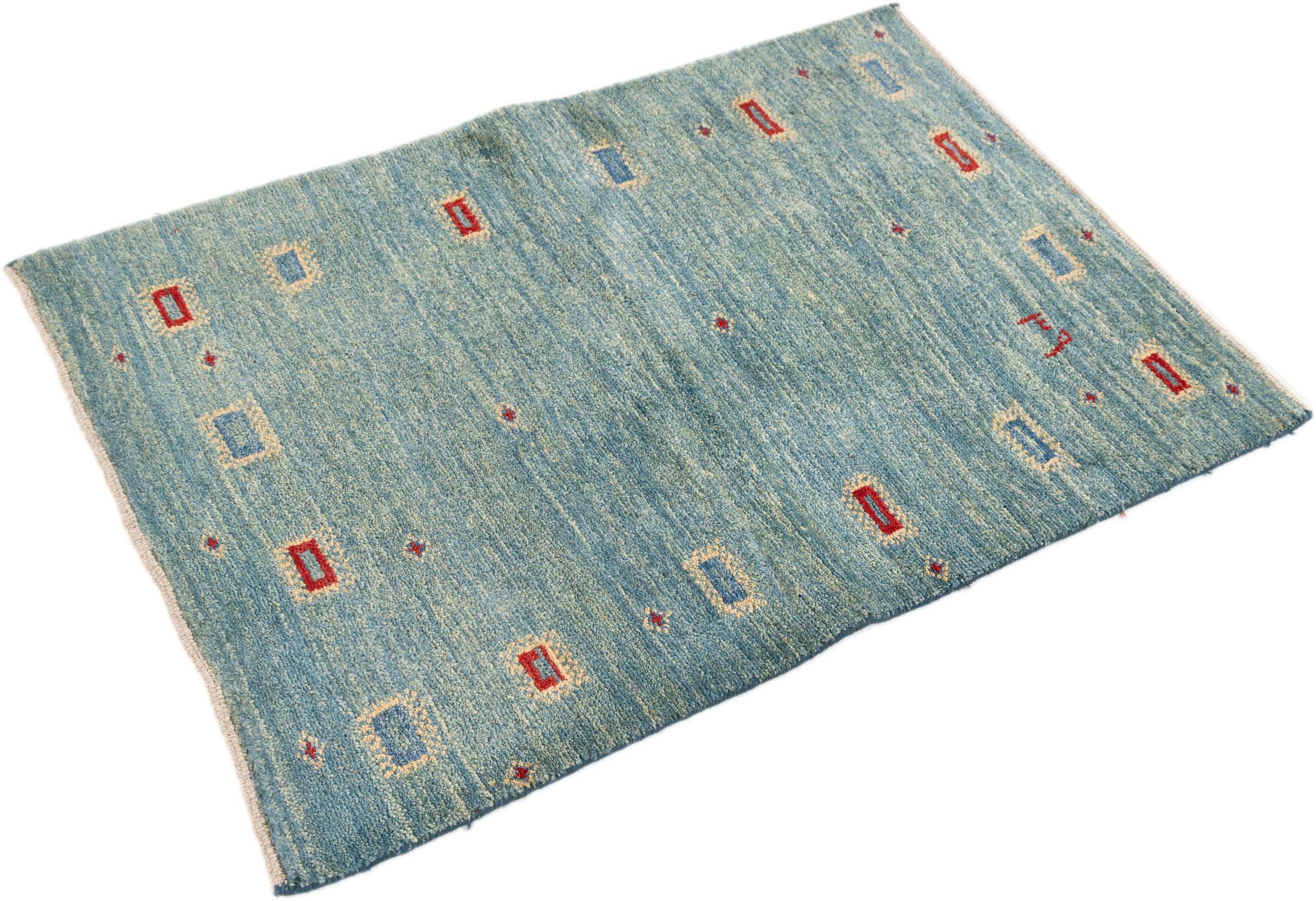 This beautiful rug is a Persian Gabbeh and thus belongs to the highest quality Gabbeh rugs. The rugs are knotted by nomads or semi-nomads in Iran following traditional handicraft. The simple motifs and patterns are mostly inspired by the nomads' close environment. For example camels, trees or bushes can be found on the traditional rugs. Persian Gabbeh rugs are made of wool from locally raised flocks of sheep. The wool is therefore mostly still spun by hand. Thus each of these oriental rugs embodies a unique character of centuries-old culture.