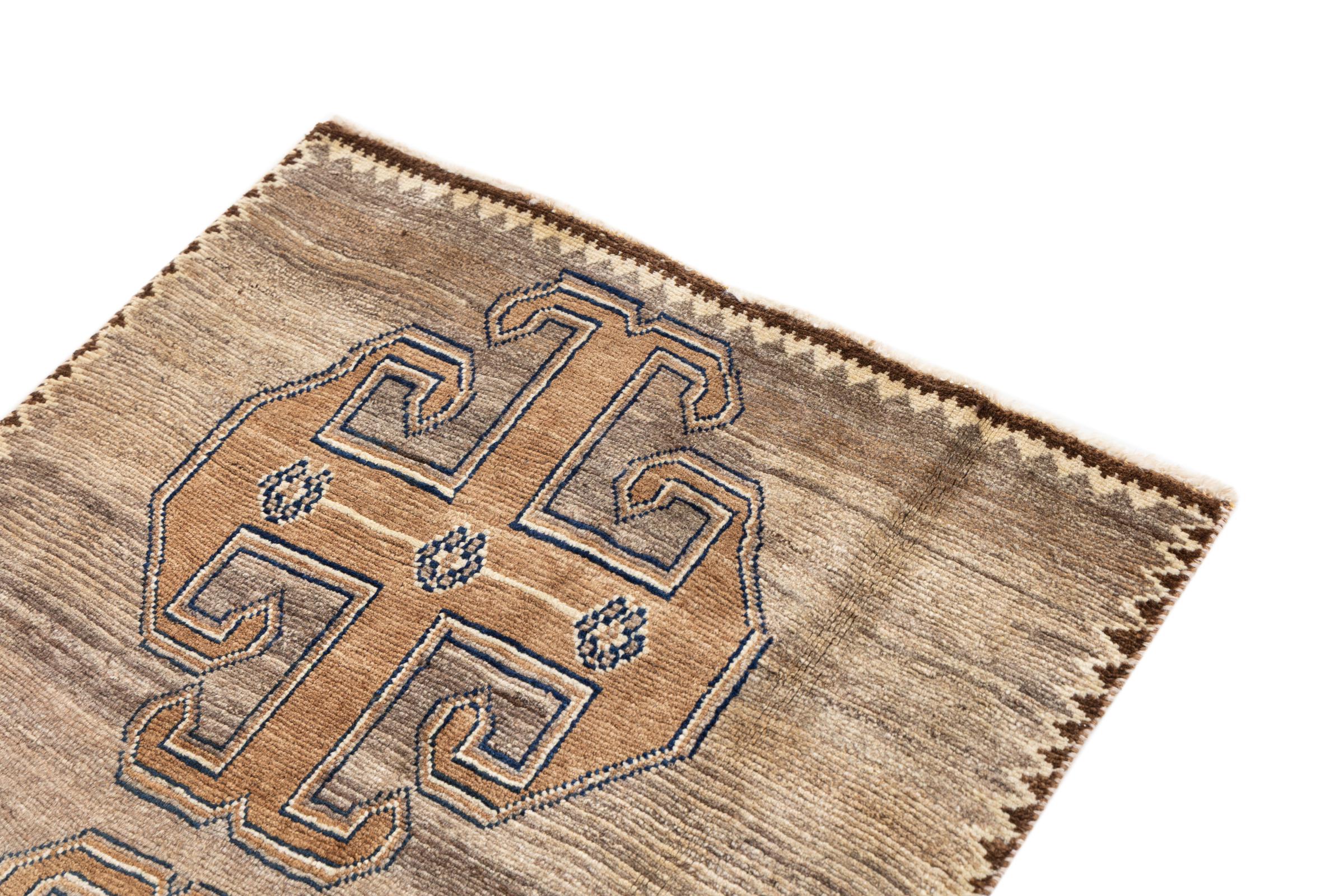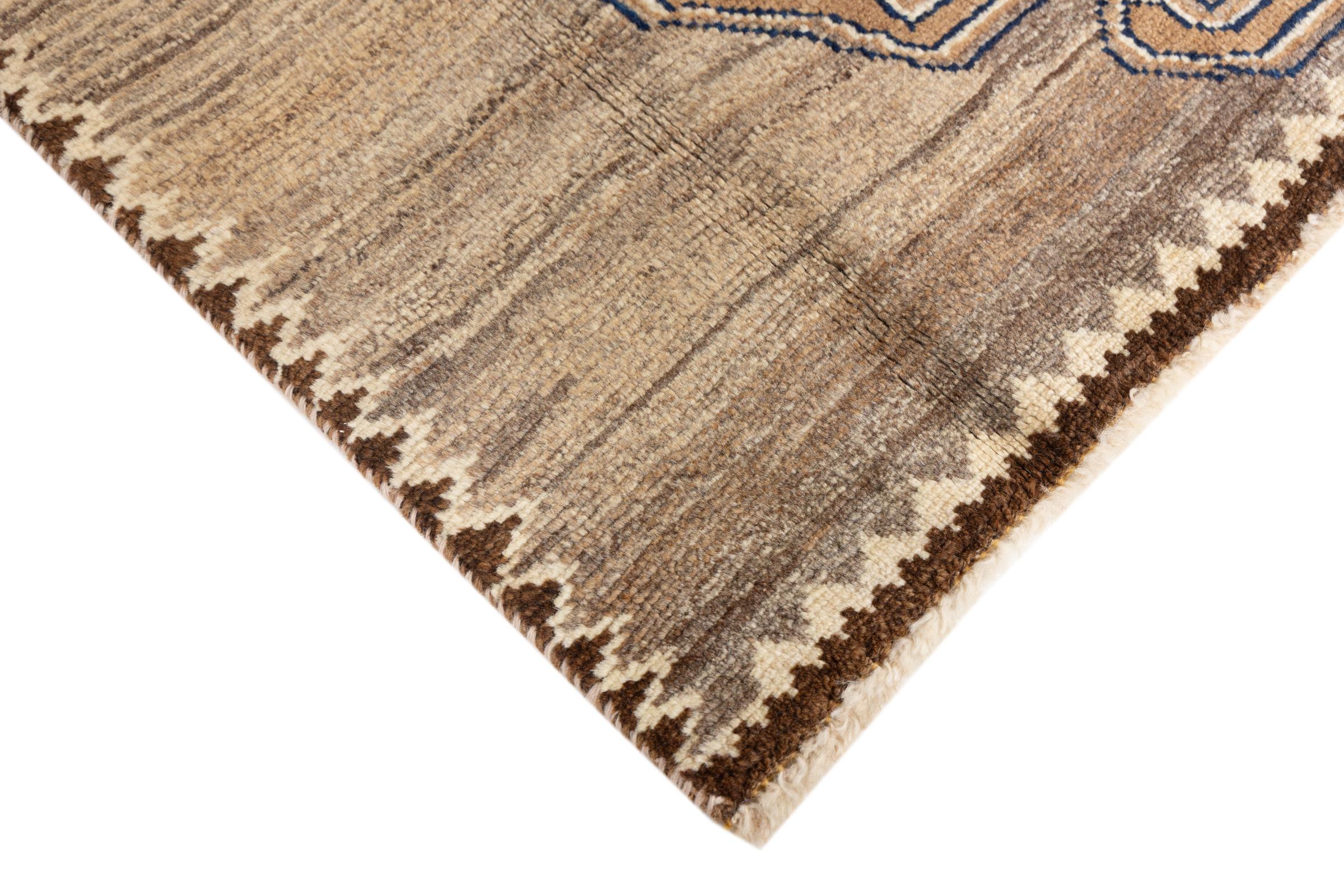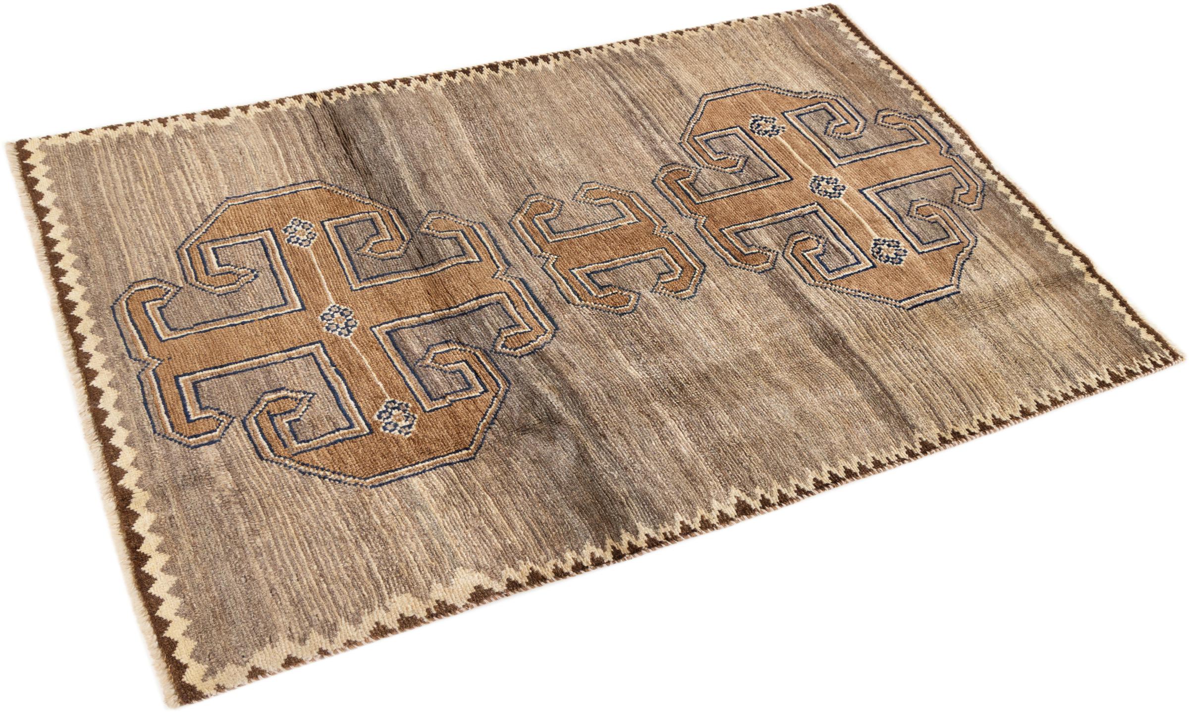 This beautiful rug is a Persian Gabbeh and thus belongs to the highest quality Gabbeh rugs. The rugs are knotted by nomads or semi-nomads in Iran following traditional handicraft. The simple motifs and patterns are mostly inspired by the nomads' close environment. For example camels, trees or bushes can be found on the traditional rugs. Persian Gabbeh rugs are made of wool from locally raised flocks of sheep. The wool is therefore mostly still spun by hand. Thus each of these oriental rugs embodies a unique character of centuries-old culture.