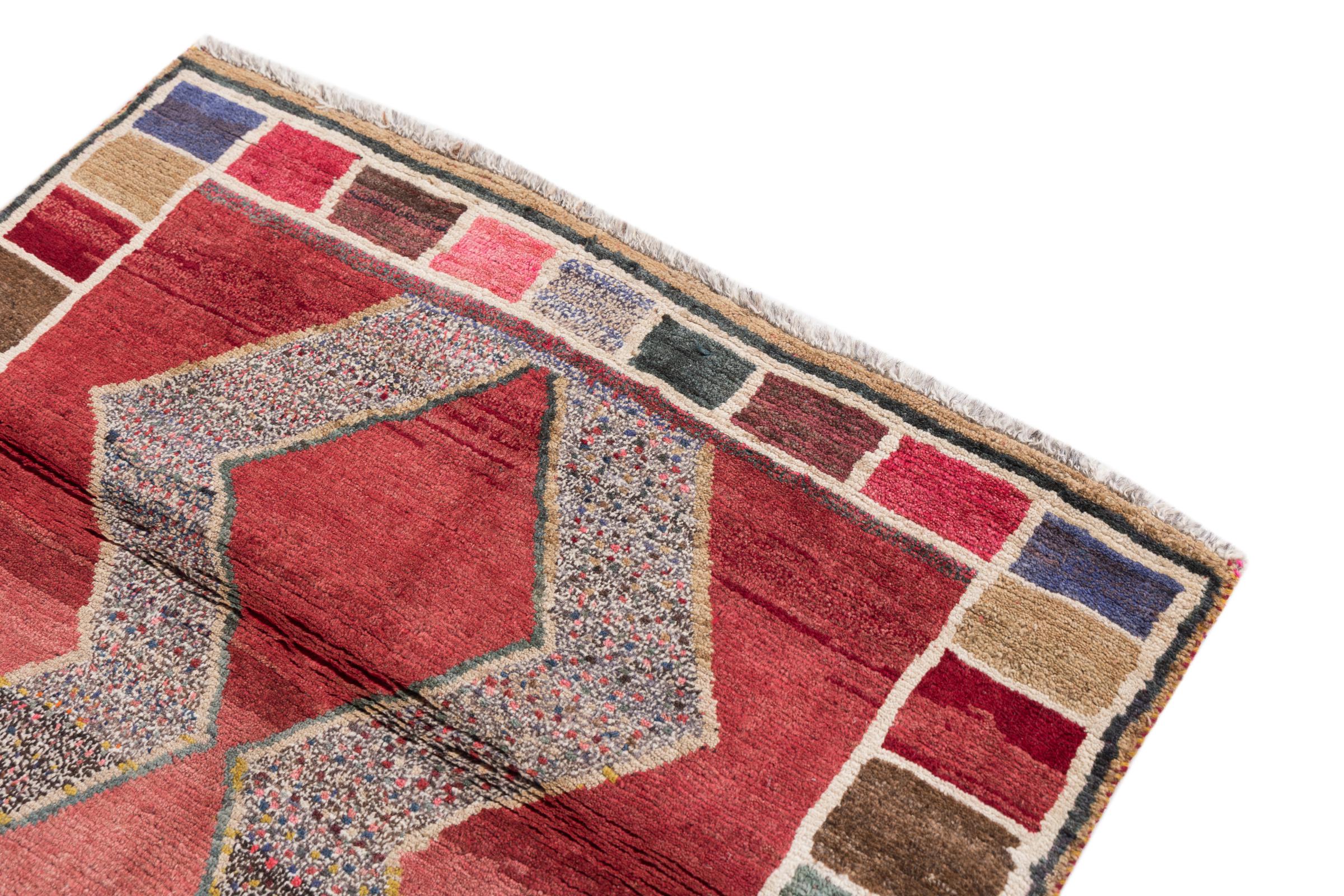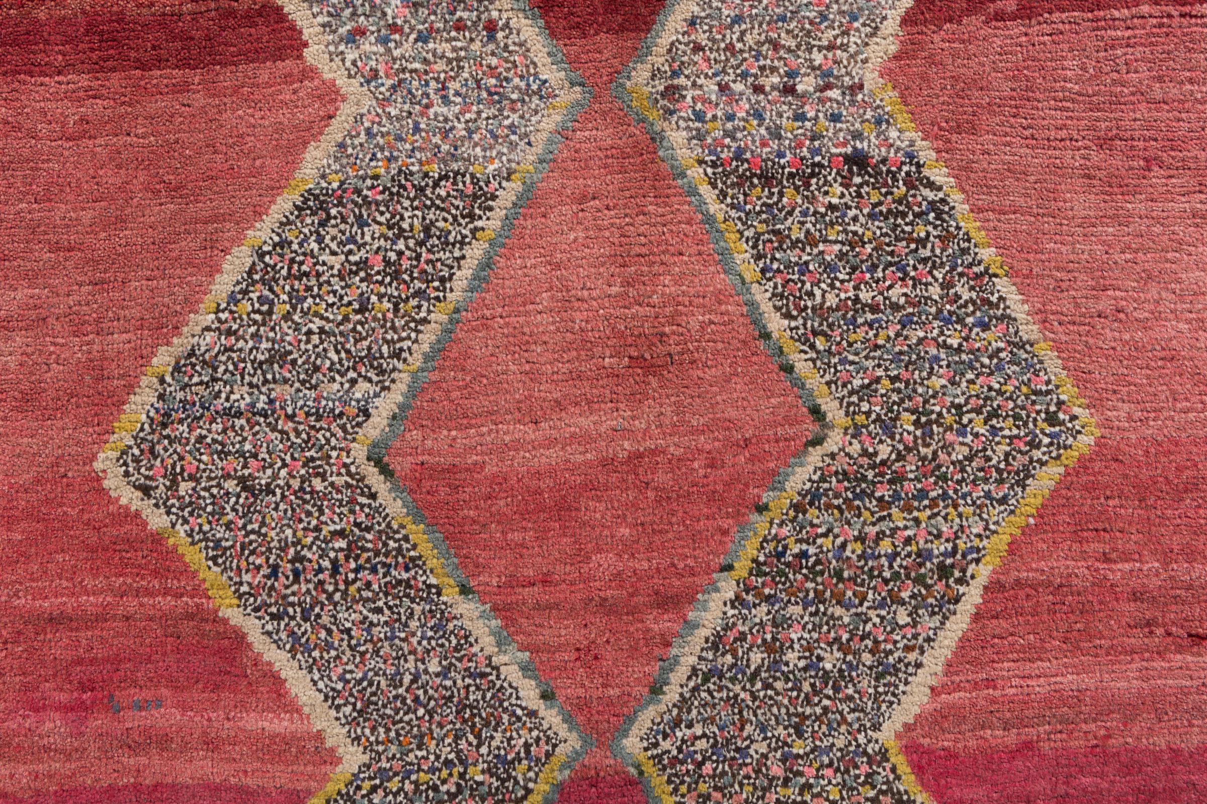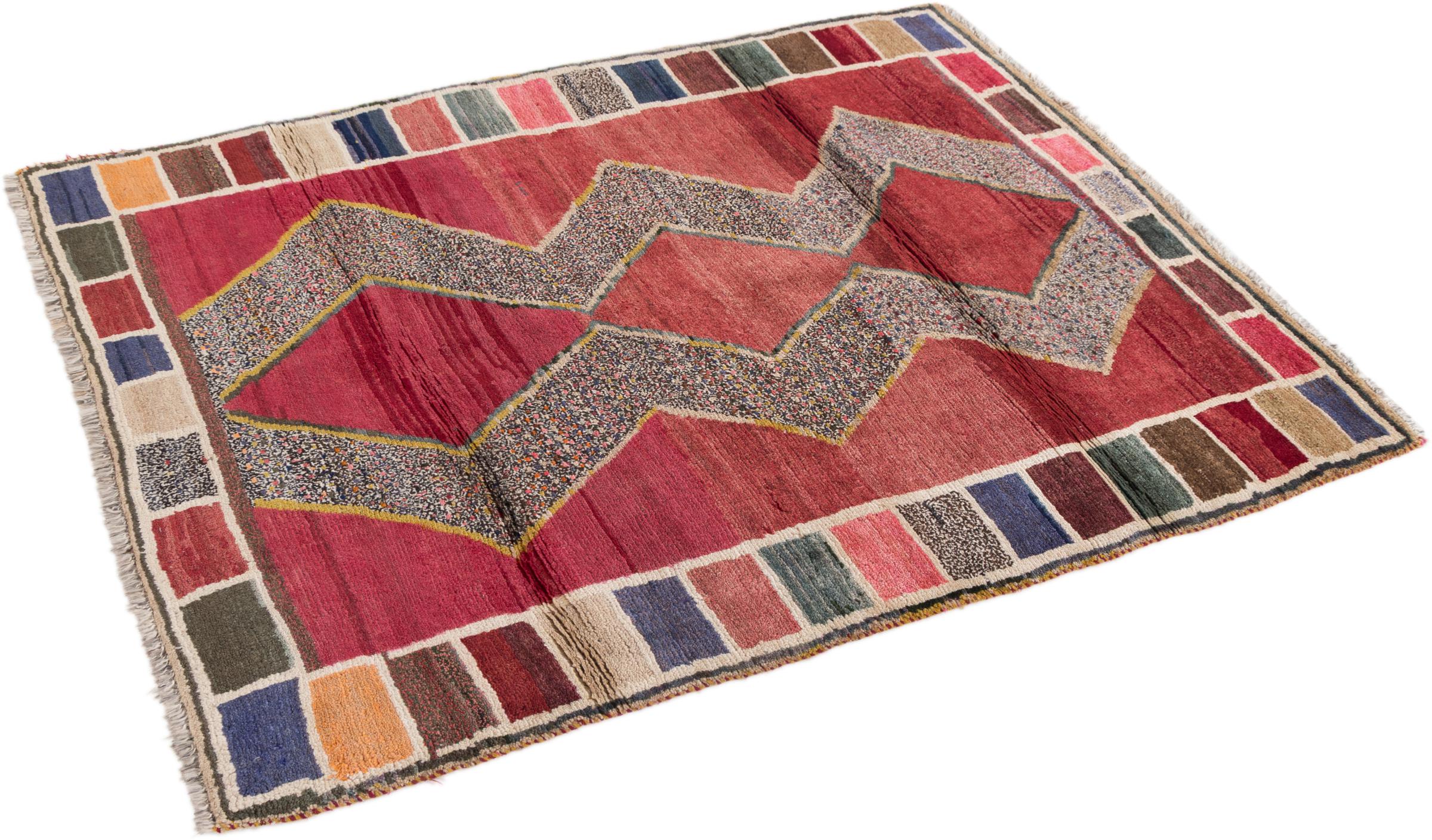 This hand-knotted Persian Gabbeh is immediately impressive with its high quality and very robust pile. It was knotted by hand by Ghashghai nomads in the province of Fars in southern Persia using the best local sheep's wool. Natural vegetable dyes are used to dye the wool. This also makes it a very valuable enrichment for the children's room. This Persian Gabbeh represents the highest class of Gabbeh rugs.