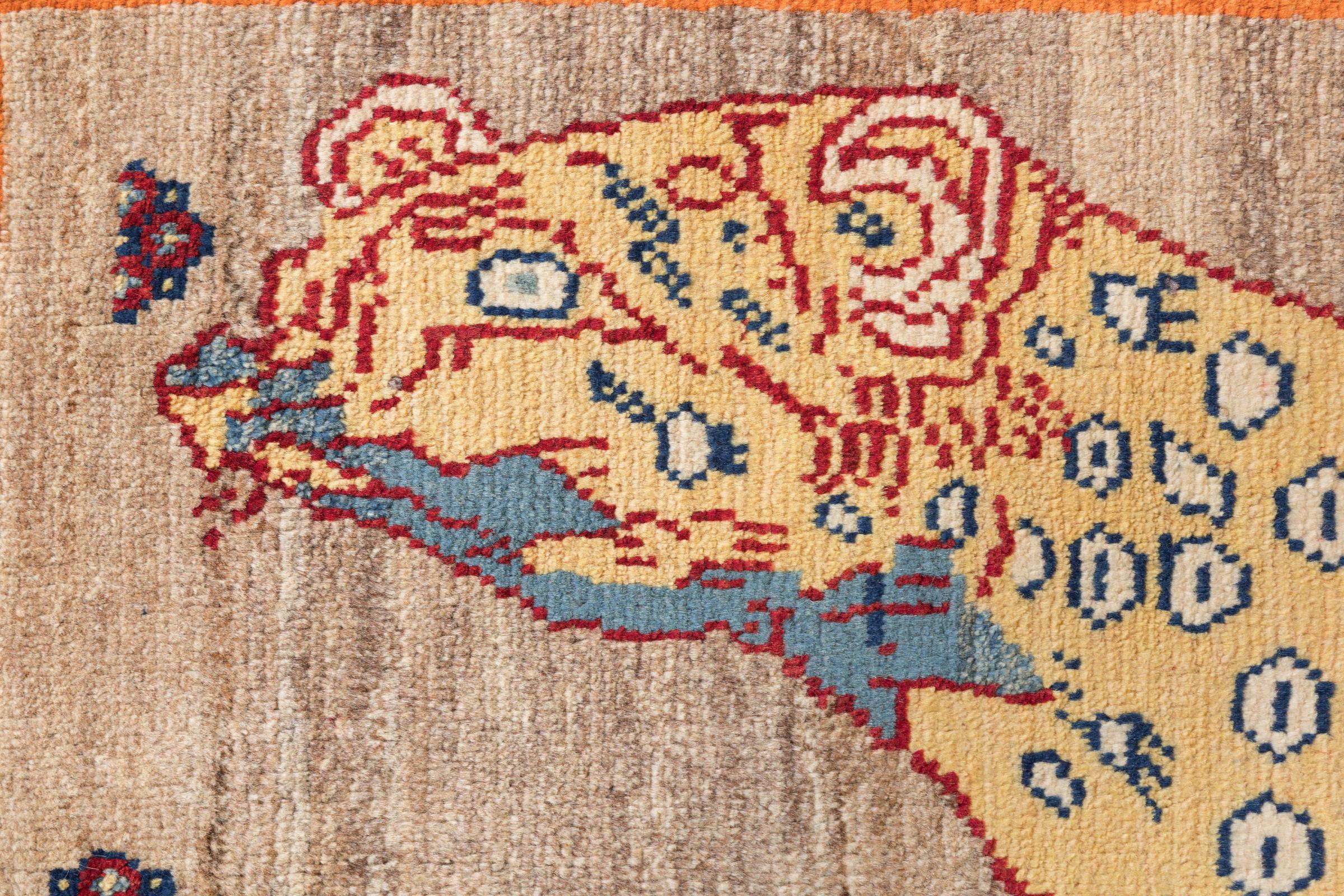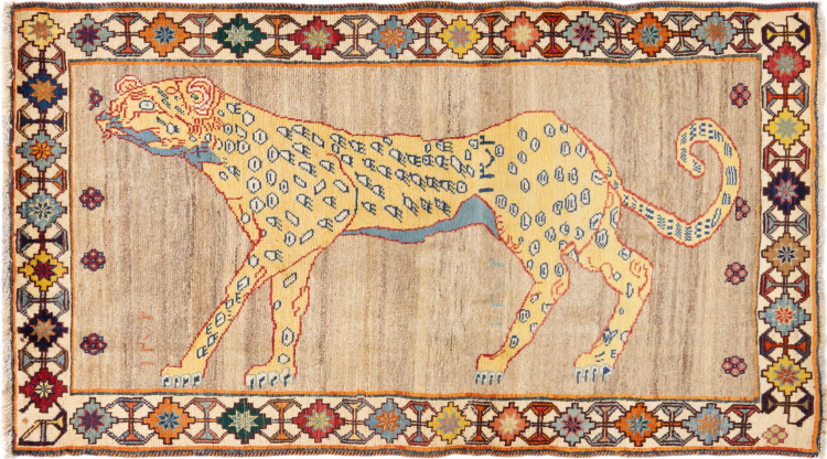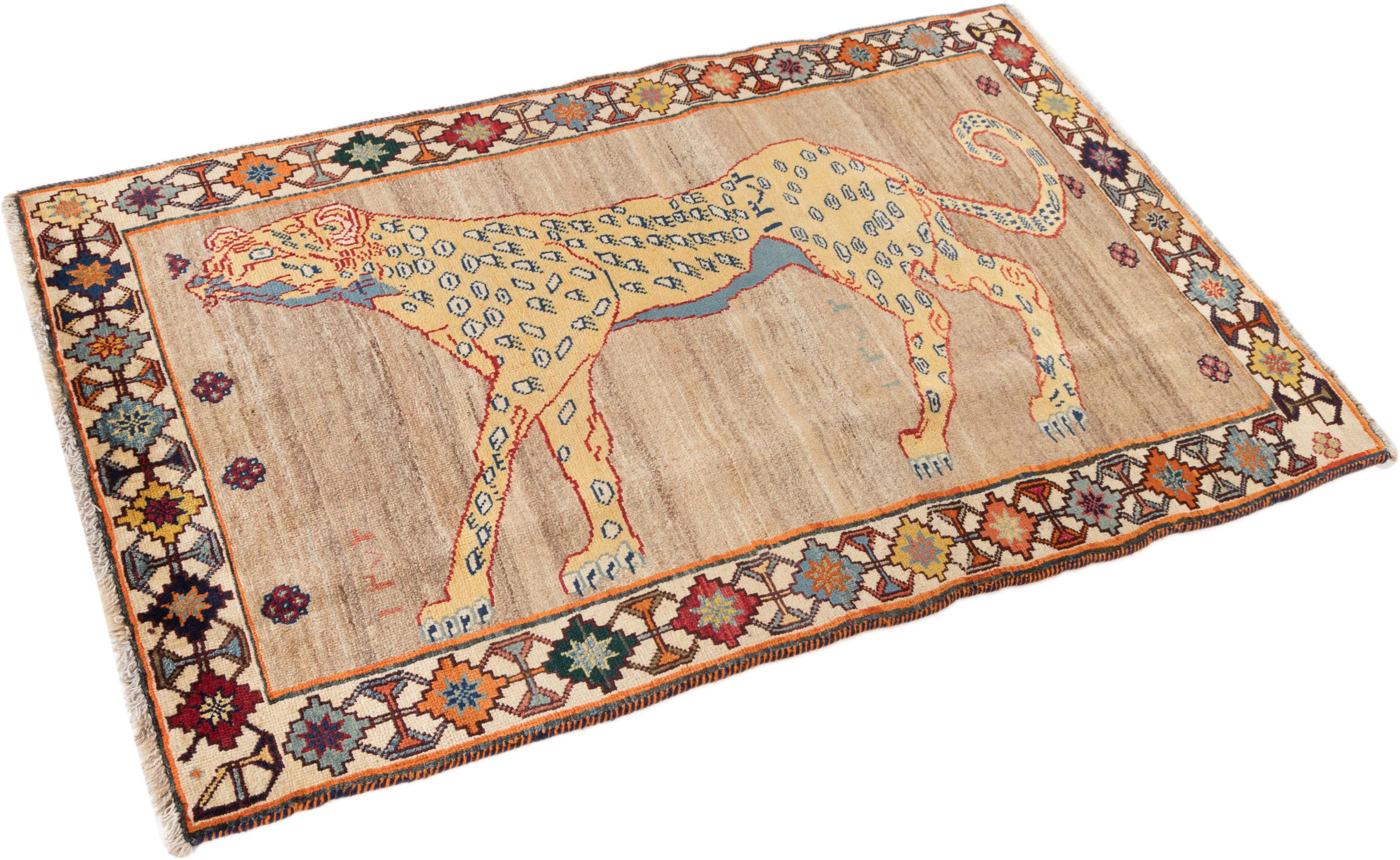This beautiful rug is a Persian Gabbeh and thus belongs to the highest quality Gabbeh rugs. The rugs are knotted by nomads or semi-nomads in Iran following traditional handicraft. The simple motifs and patterns are mostly inspired by the nomads' close environment. For example camels, trees or bushes can be found on the traditional rugs. Persian Gabbeh rugs are made of wool from locally raised flocks of sheep. The wool is therefore mostly still spun by hand. Thus each of these oriental rugs embodies a unique character of centuries-old culture.