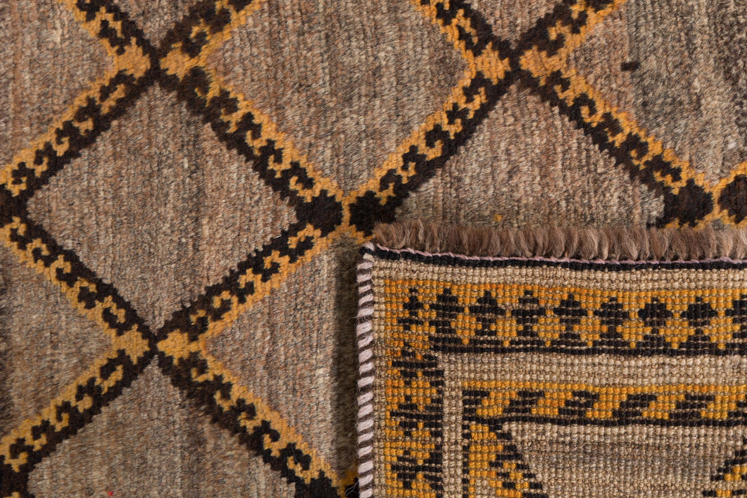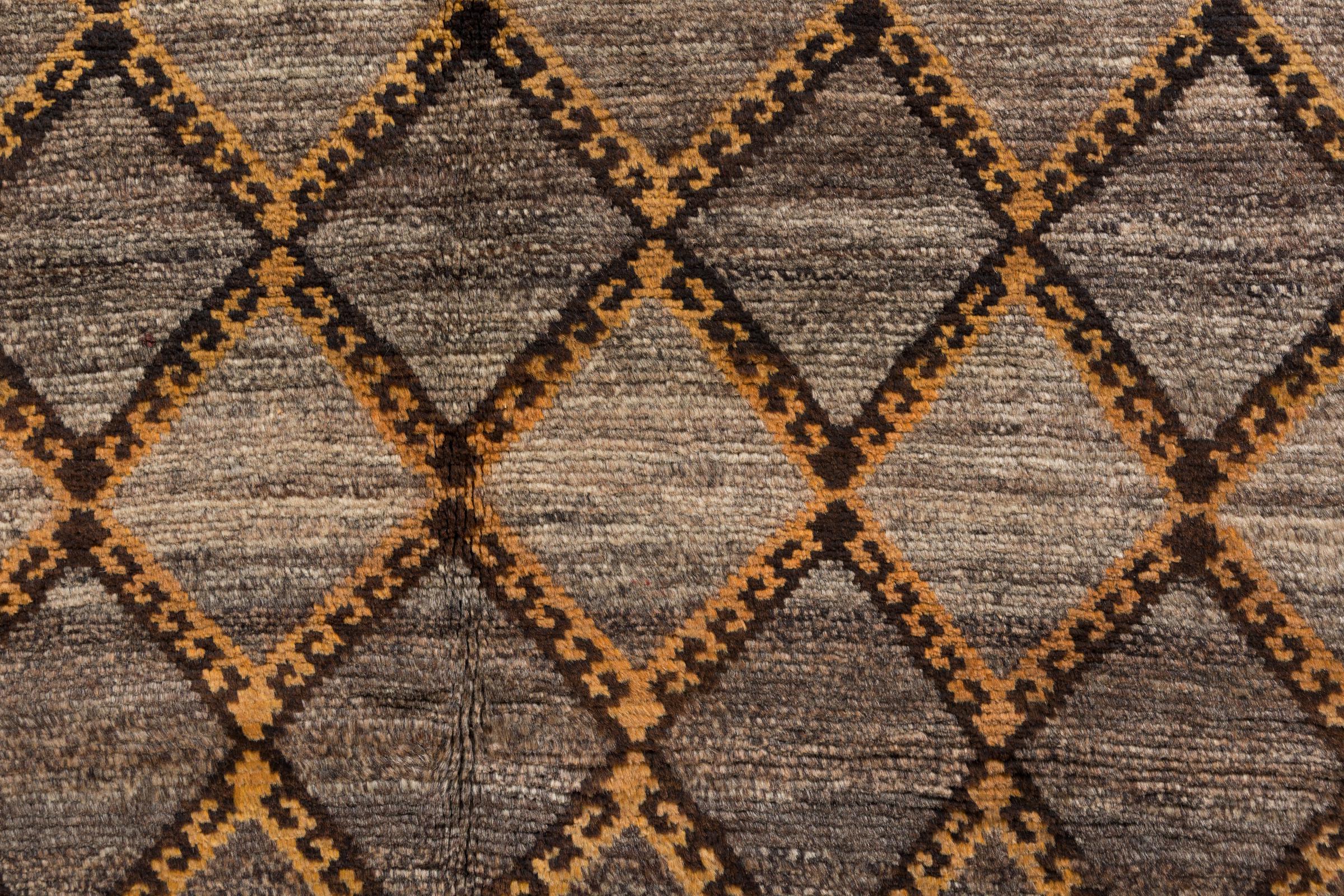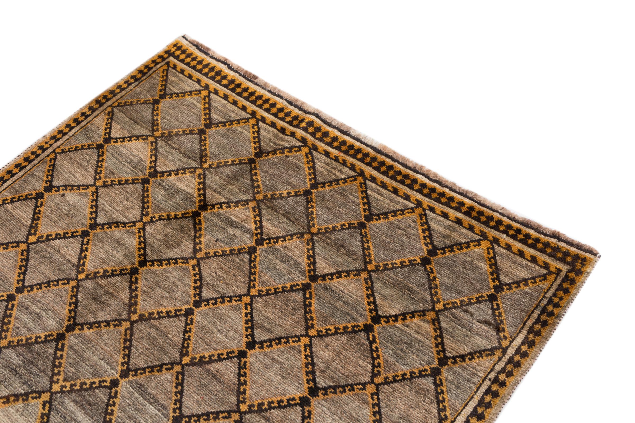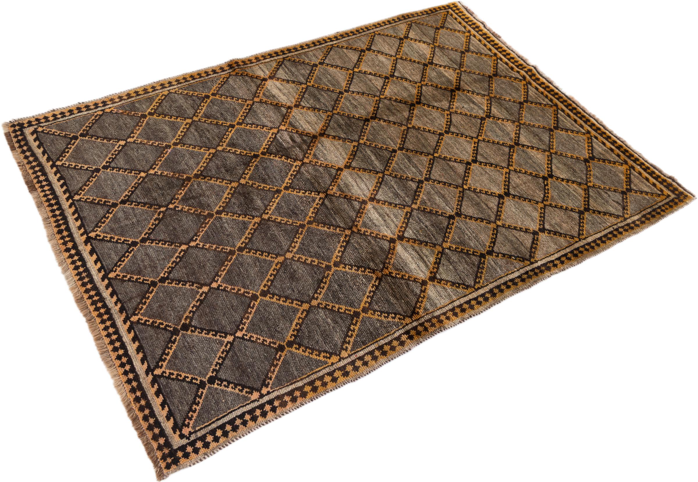 This beautiful rug is a Persian Gabbeh and thus belongs to the highest quality Gabbeh rugs. The rugs are knotted by nomads or semi-nomads in Iran following traditional handicraft. The simple motifs and patterns are mostly inspired by the nomads' close environment. For example camels, trees or bushes can be found on the traditional rugs. Persian Gabbeh rugs are made of wool from locally raised flocks of sheep. The wool is therefore mostly still spun by hand. Thus each of these oriental rugs embodies a unique character of centuries-old culture.
