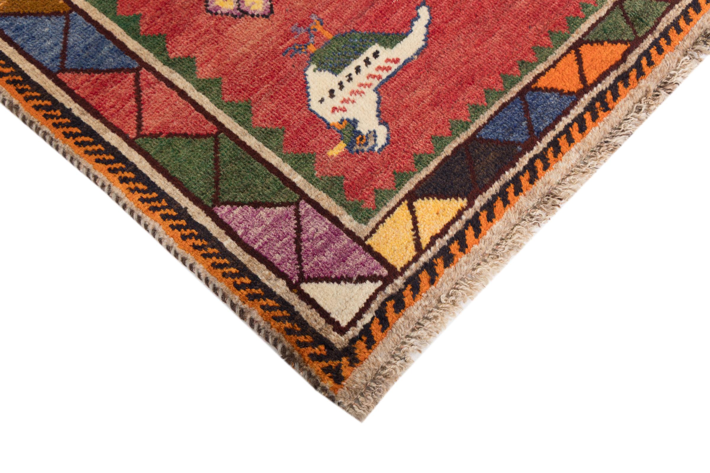 This hand-knotted Persian Gabbeh is immediately impressive with its high quality and very robust pile. It was knotted by hand by Ghashghai nomads in the province of Fars in southern Persia using the best local sheep's wool. Natural vegetable dyes are used to dye the wool. This also makes it a very valuable enrichment for the children's room. This Persian Gabbeh represents the highest class of Gabbeh rugs.