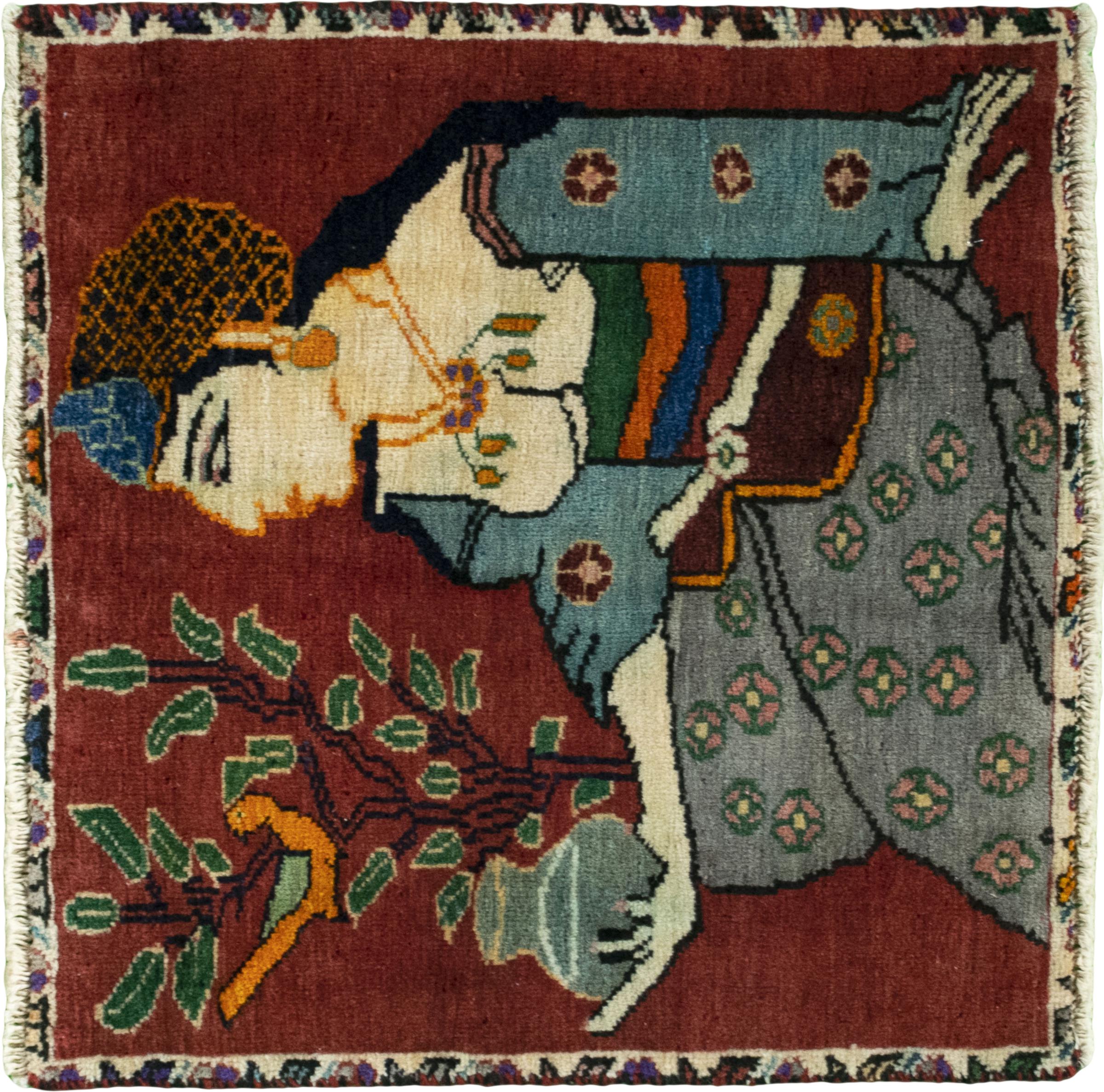 Carpet ID: 286125001229396 Size: 55x54 cm Thickness: ap. 15 mm Knot density: 96 000 - 120 000 / m² Manufacturing: Knotted by hand Pile: Handspun wool Warp: Sheep wool Origin: Persia Age: New Weight: ap. 1 kg Also know as Gabbe, Ghabbeh In stock: Unique - Only 1 in stock