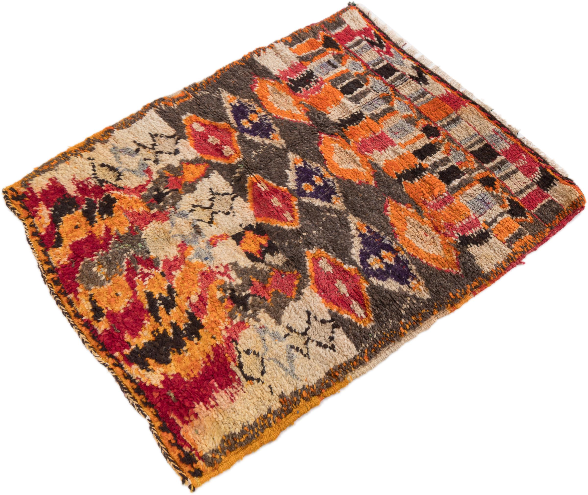 Carpet ID: 295650007364 Size: 90x76 cm Thickness: ap. 15 mm Knot density: 72 000 - 90 000 / m² Manufacturing: Knotted by hand Pile: Handspun wool Warp: Sheep wool Origin: Persia Age: Old/Semi antique, over 50 years Weight: ap. 3 kg Also know as Gabbe, Ghabbeh In stock: Unique - Only 1 in stock
