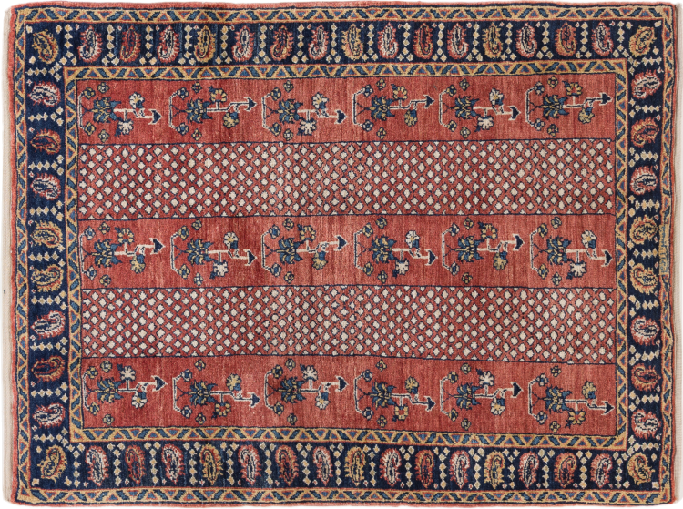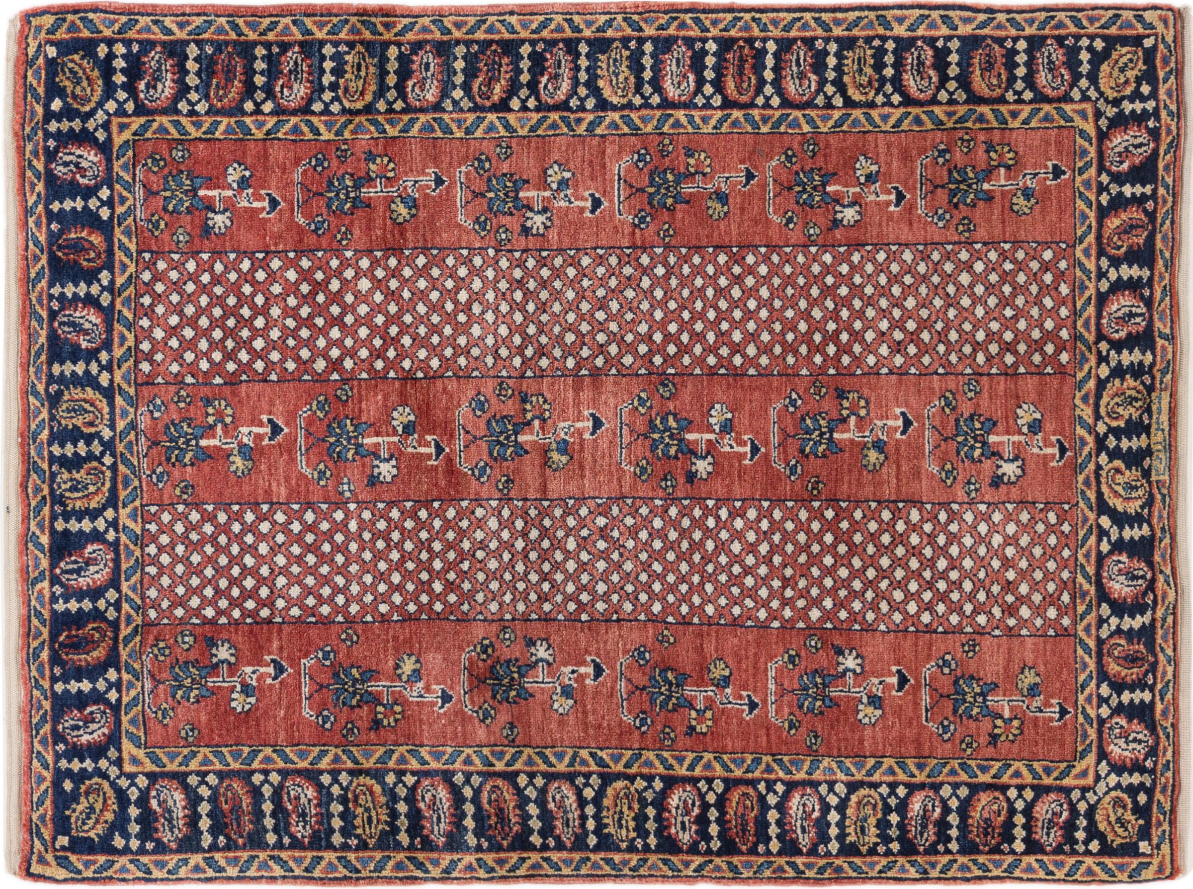 Carpet ID: 296737002410 Size: 112x84 cm Thickness: ap. 12 mm Knot density: 200 000 - 250 000 / m² Manufacturing: Knotted by hand Pile: Handspun wool Warp: Sheep wool Origin: Persia Age: New Weight: ap. 3 kg In stock: Unique - Only 1 in stock