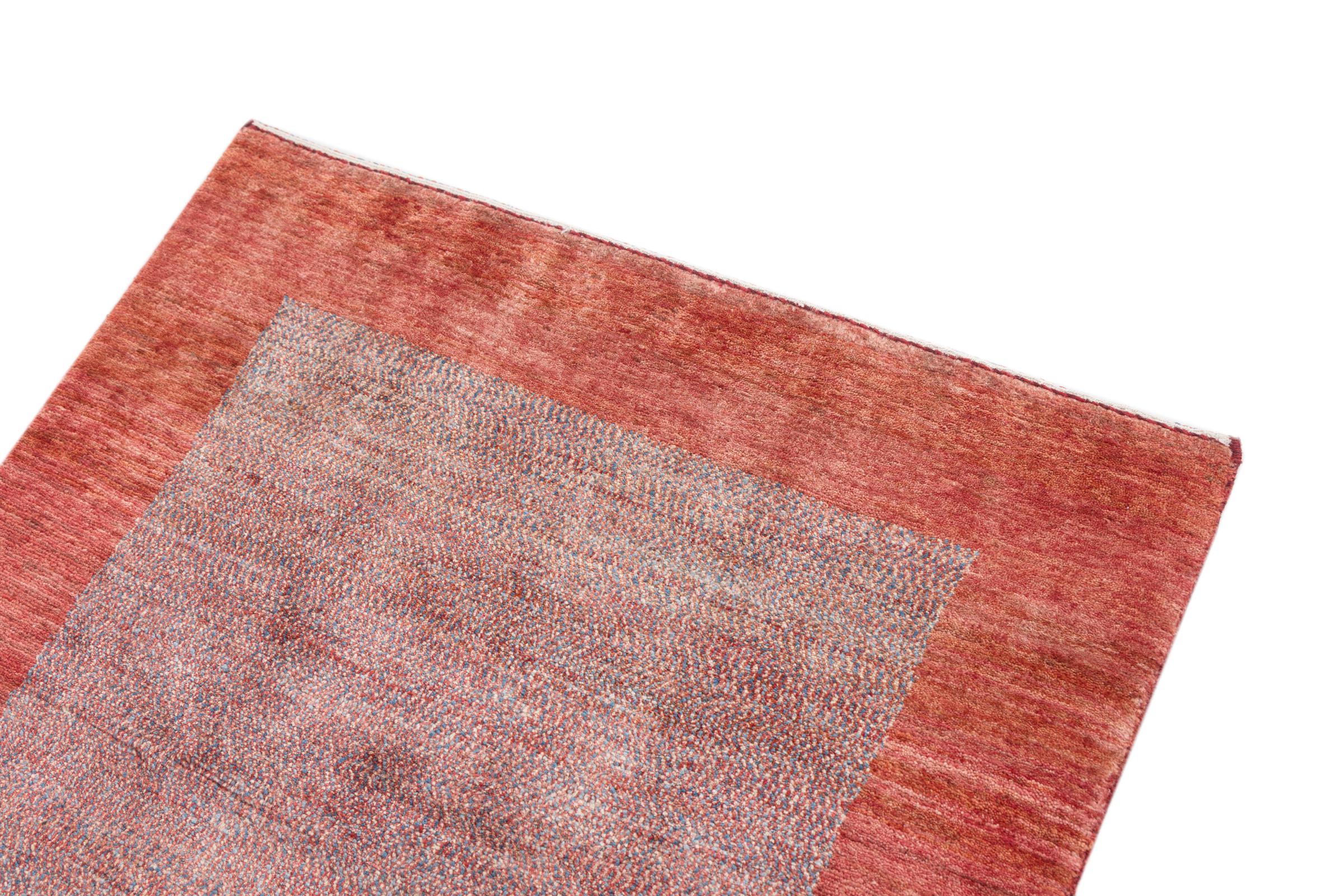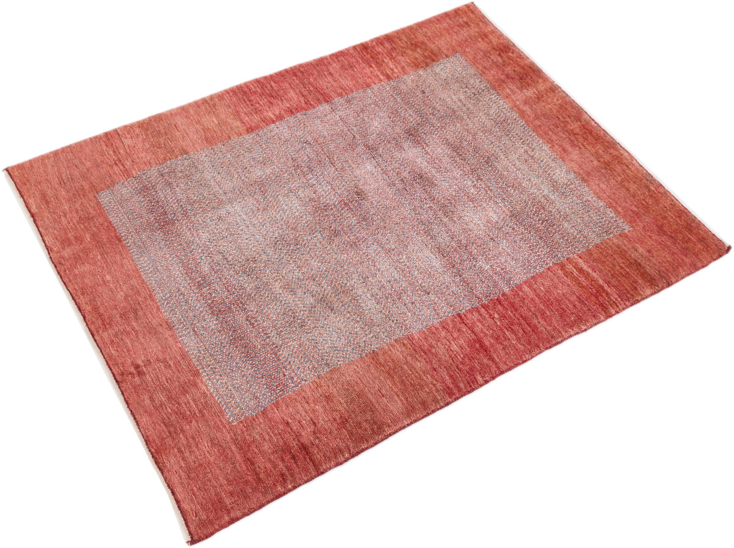 This beautiful rug is a Persian Gabbeh and thus belongs to the highest quality Gabbeh rugs. The rugs are knotted by nomads or semi-nomads in Iran following traditional handicraft. The simple motifs and patterns are mostly inspired by the nomads' close environment. For example camels, trees or bushes can be found on the traditional rugs. Persian Gabbeh rugs are made of wool from locally raised flocks of sheep. The wool is therefore mostly still spun by hand. Thus each of these oriental rugs embodies a unique character of centuries-old culture.