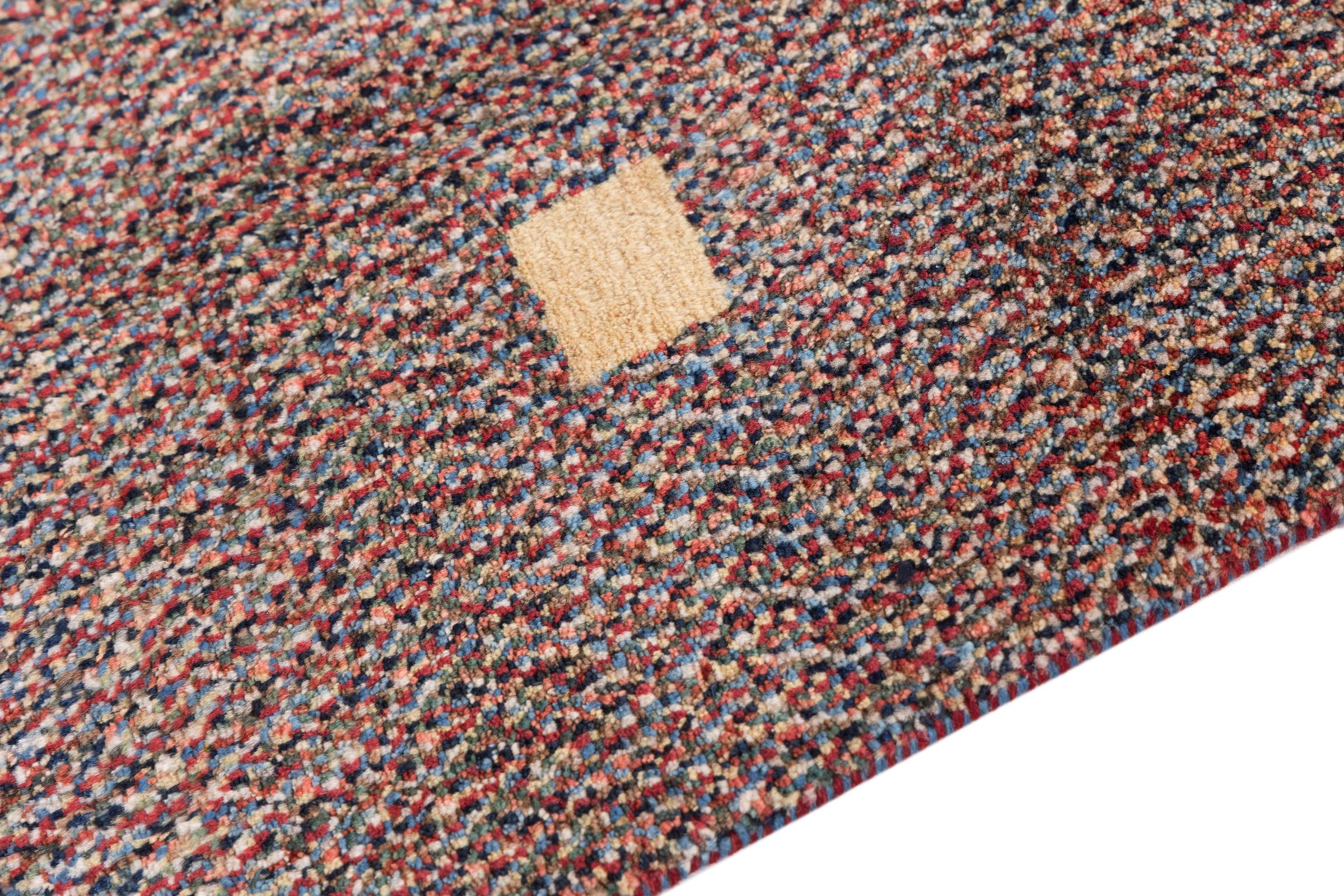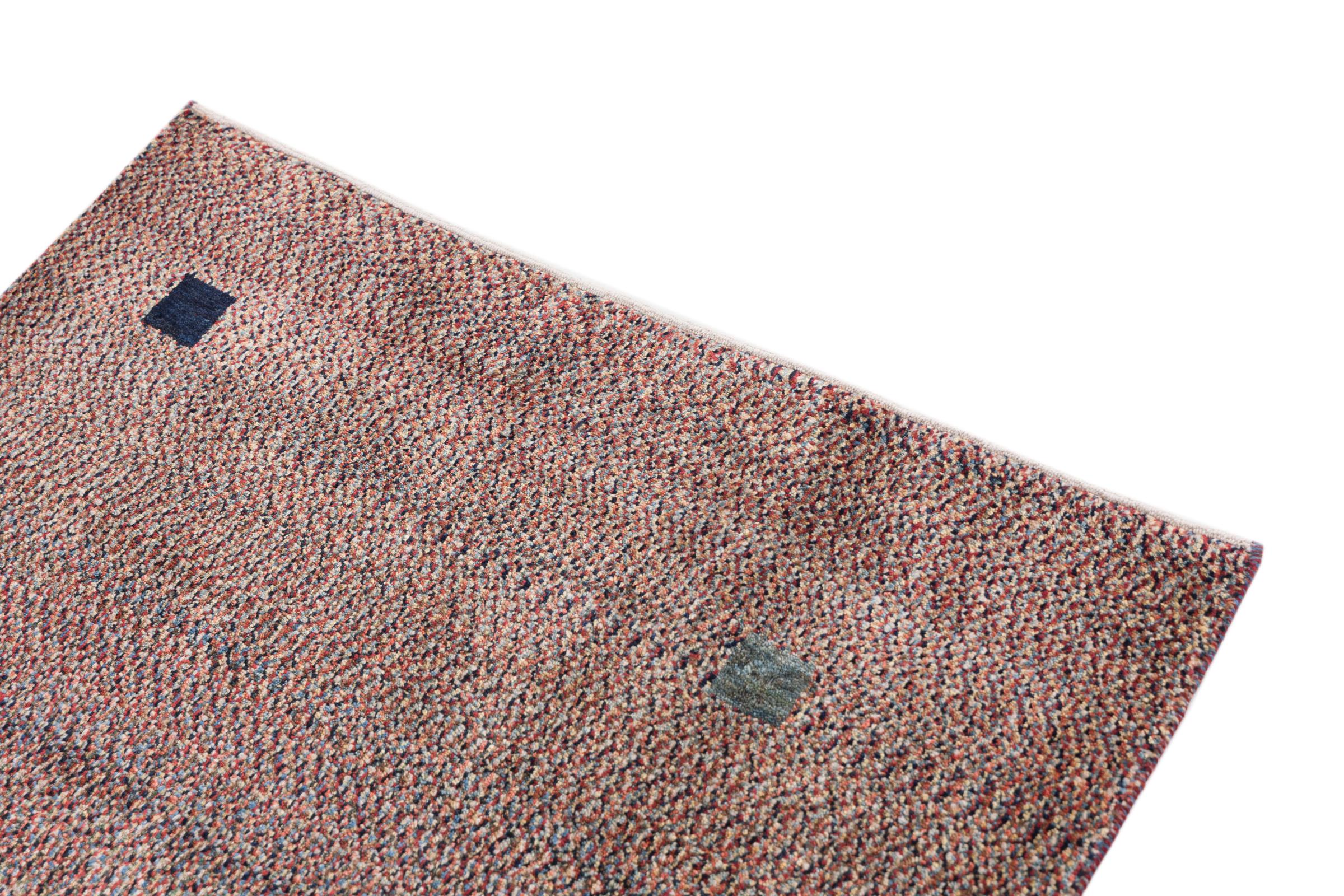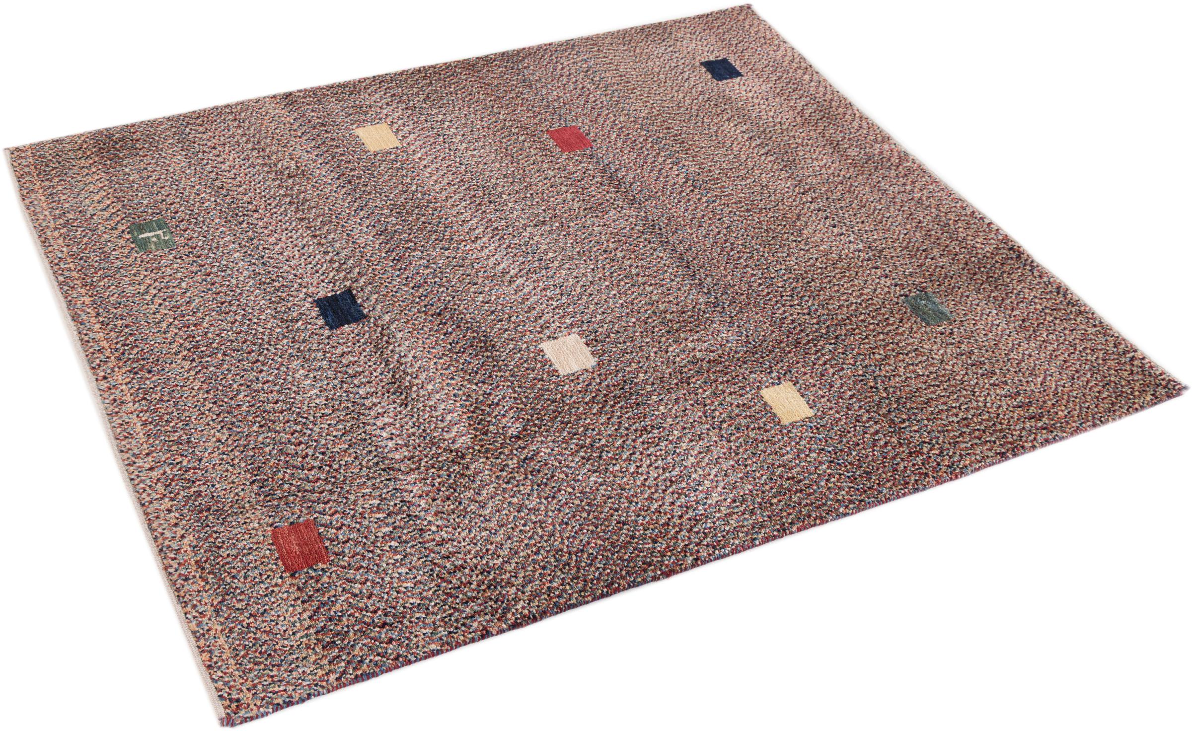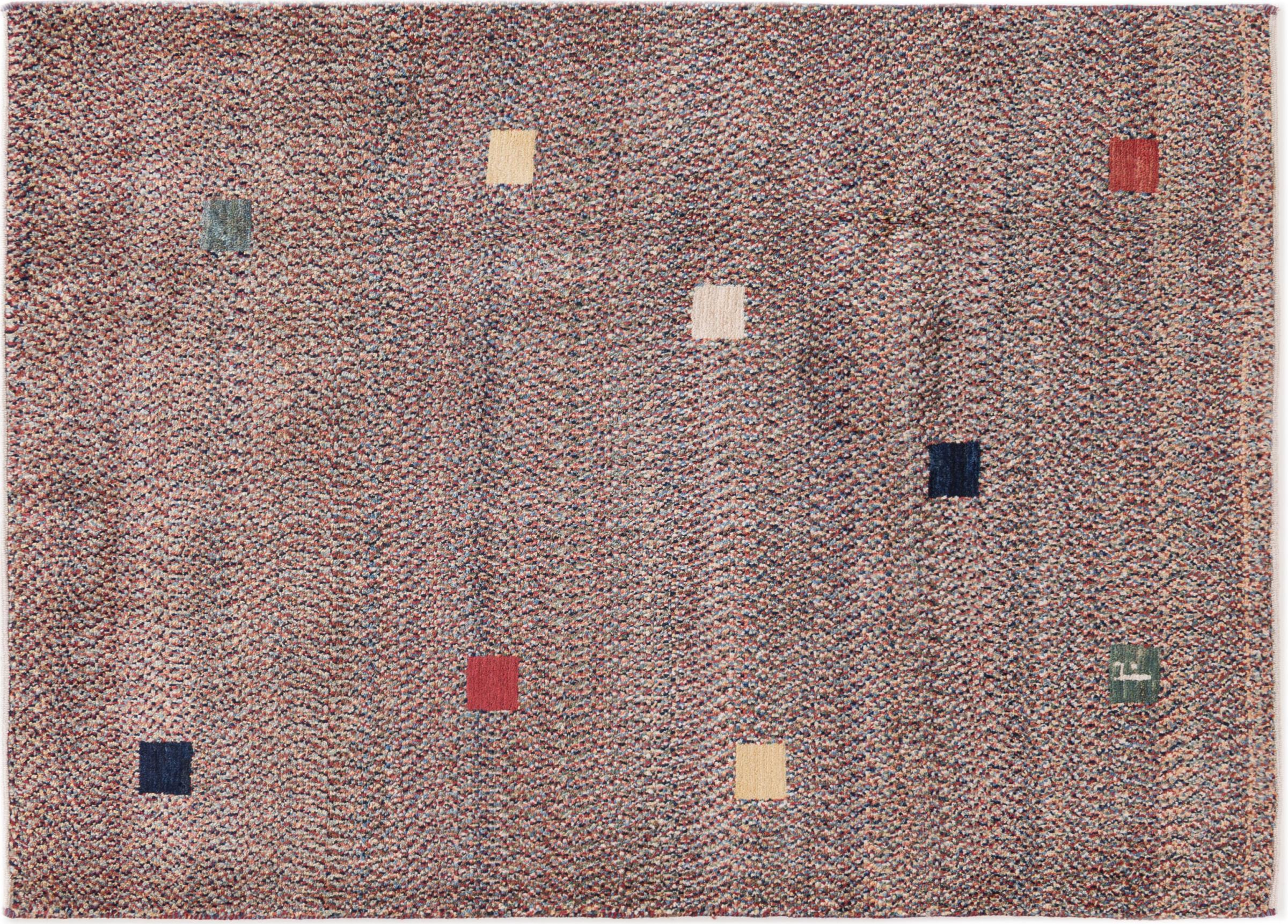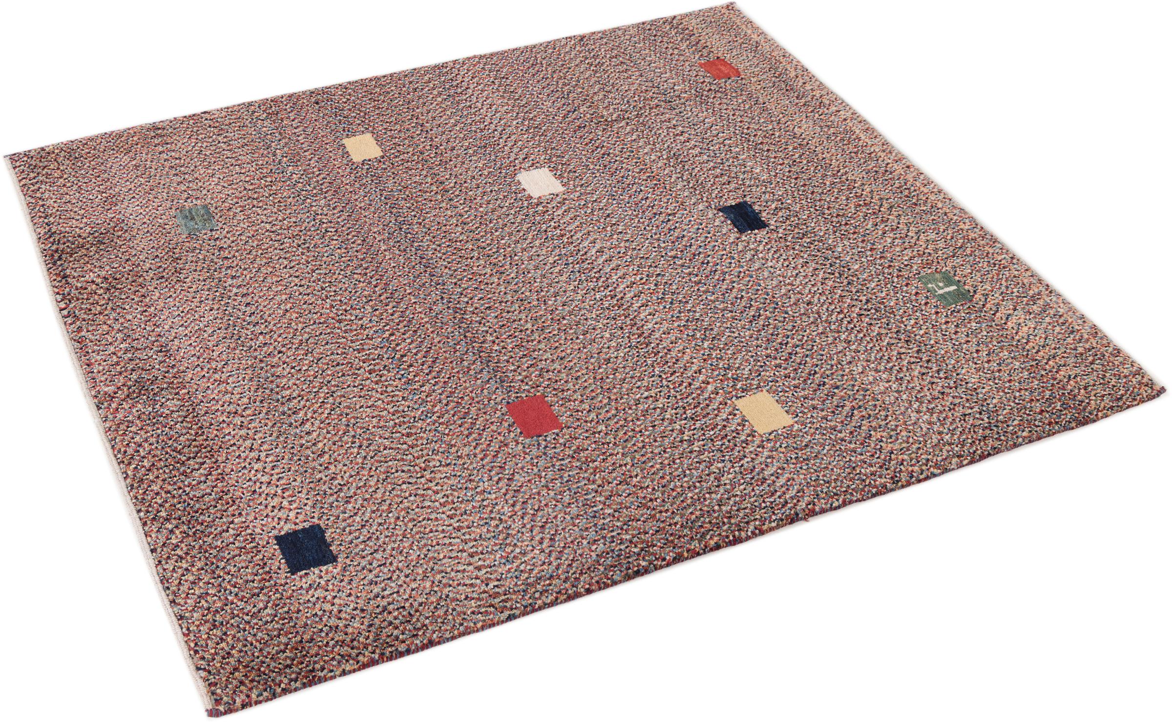 This beautiful rug is a Persian Gabbeh and thus belongs to the highest quality Gabbeh rugs. The rugs are knotted by nomads or semi-nomads in Iran following traditional handicraft. The simple motifs and patterns are mostly inspired by the nomads' close environment. For example camels, trees or bushes can be found on the traditional rugs. Persian Gabbeh rugs are made of wool from locally raised flocks of sheep. The wool is therefore mostly still spun by hand. Thus each of these oriental rugs embodies a unique character of centuries-old culture.