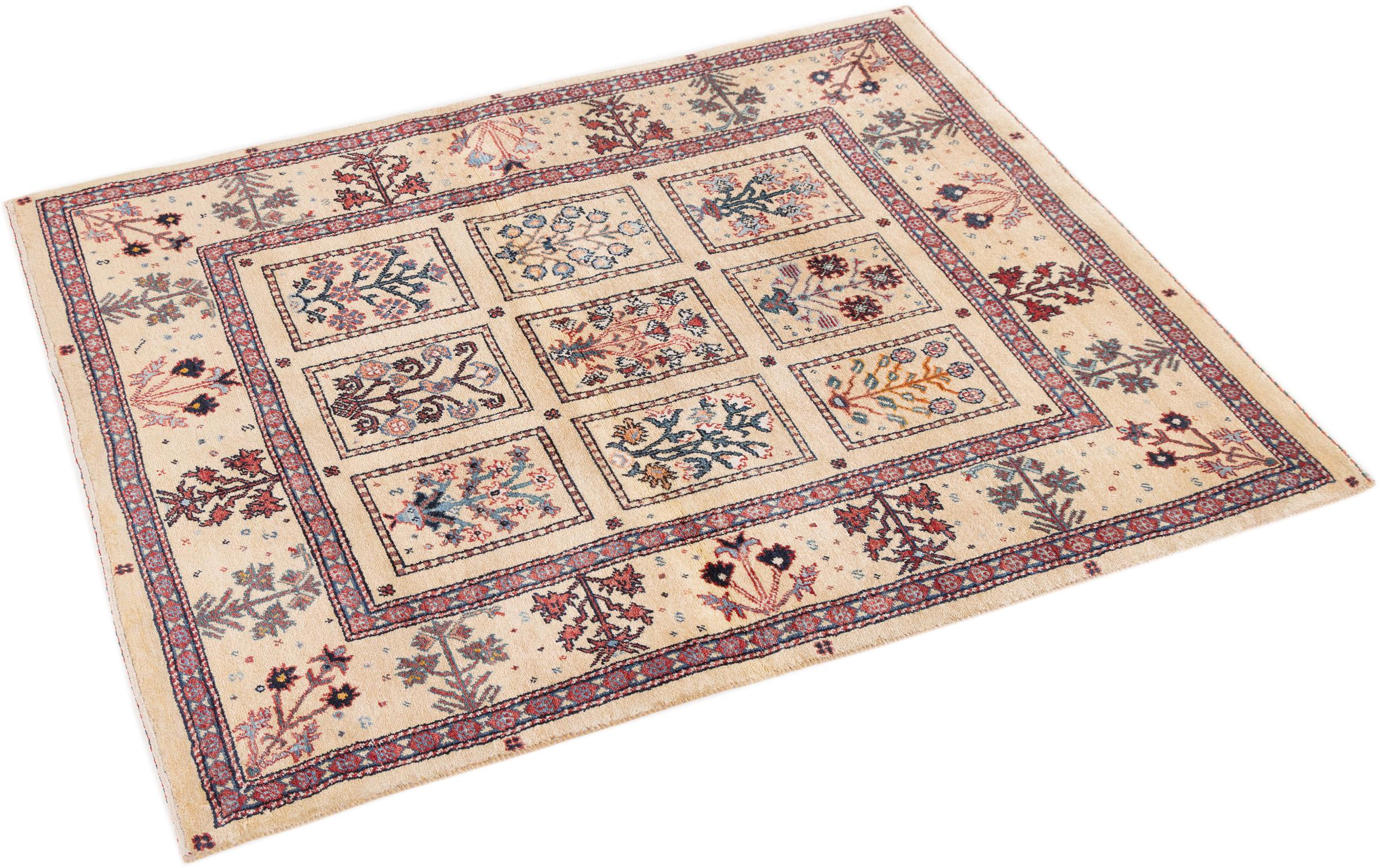This rug is made of hand spun sheep wool of the highest quality. Especially in Iran (former Persia), Afghanistan and Pakistan wool is still spun by hand before the actual knotting of the rug begins. Wool has proven itself as a natural and extremely hard-wearing material over centuries. Among other things, it has dirt-repellent and heat-insulating properties. At the same time, wool is incomparably soft and has a natural shine.