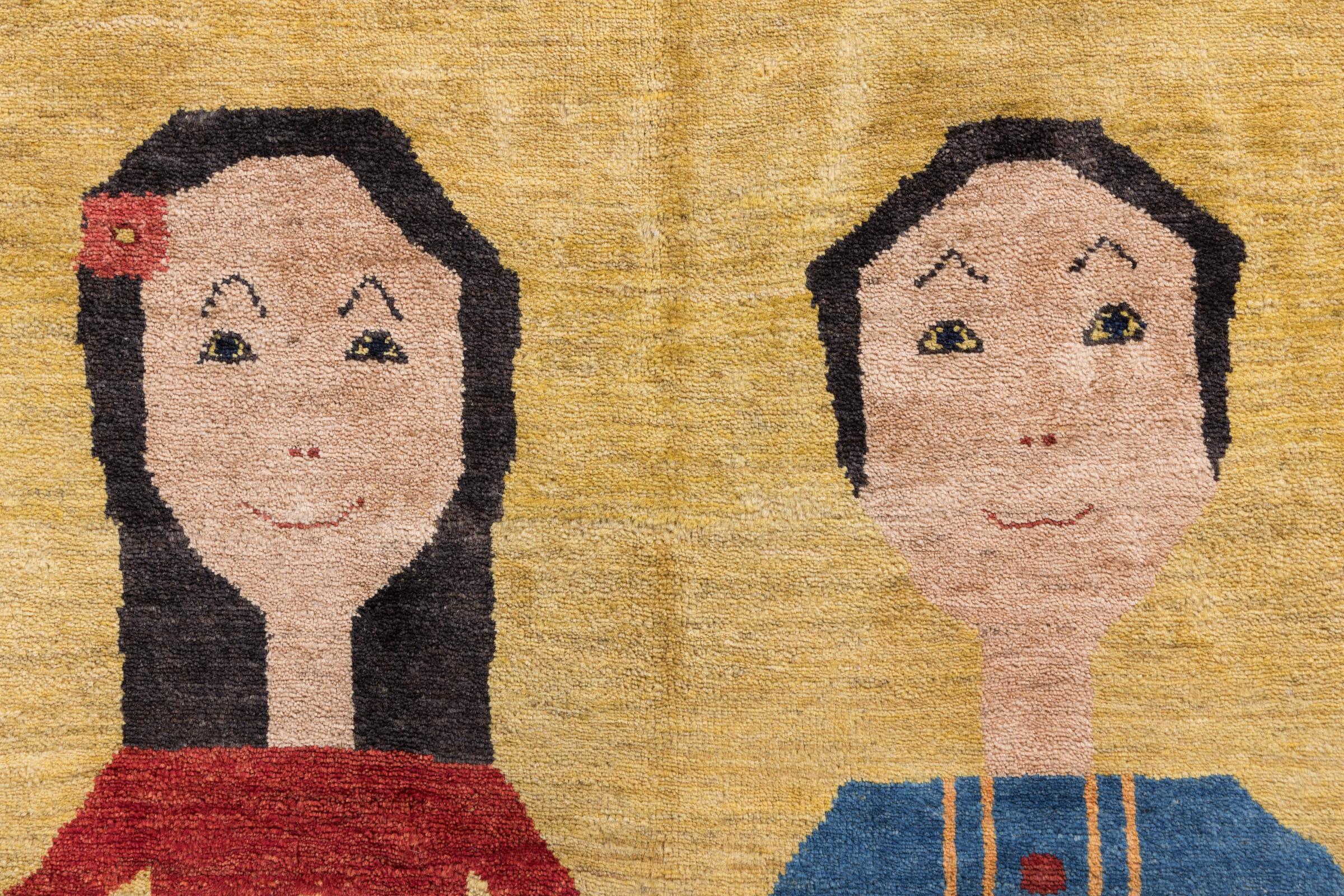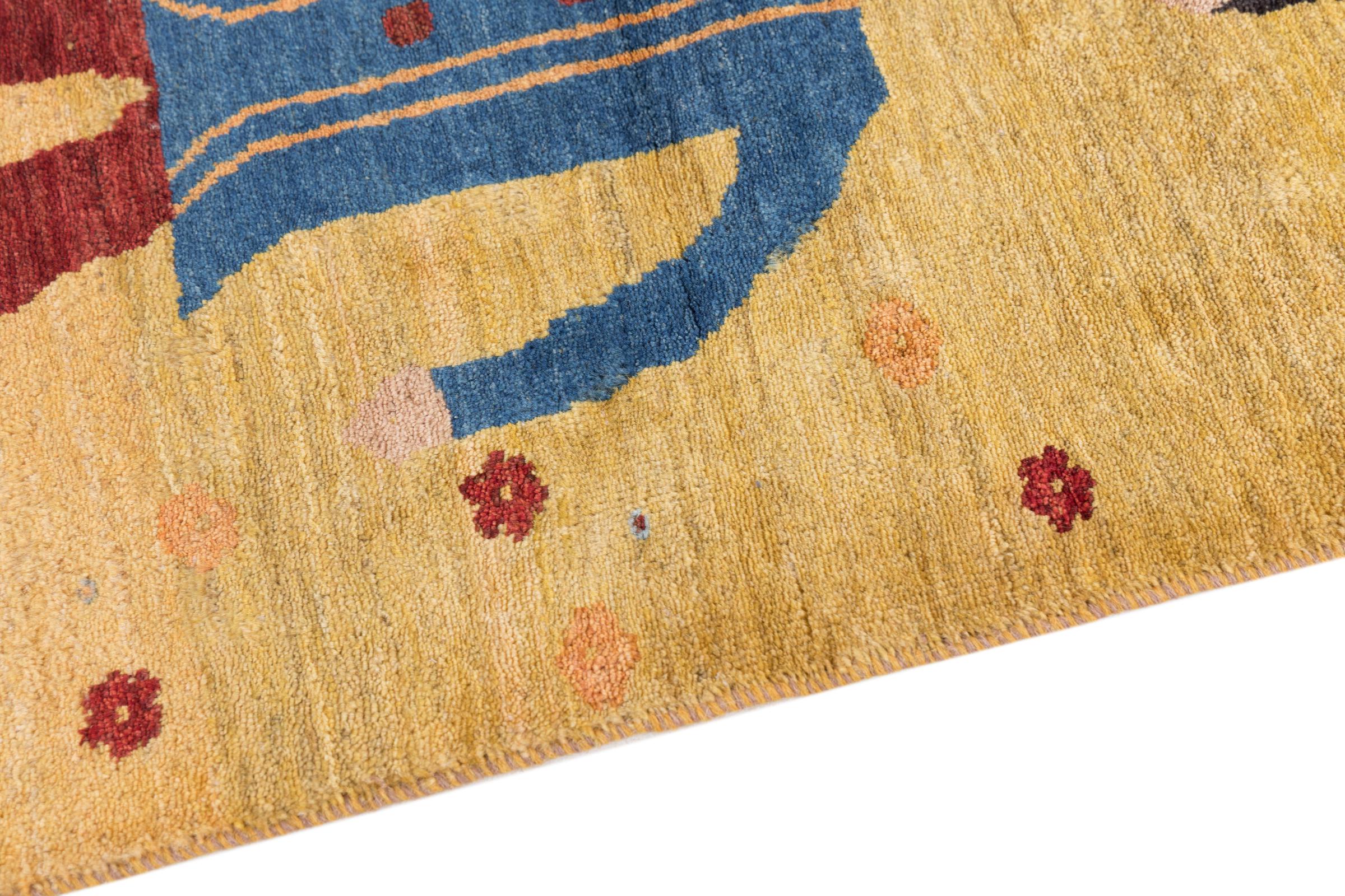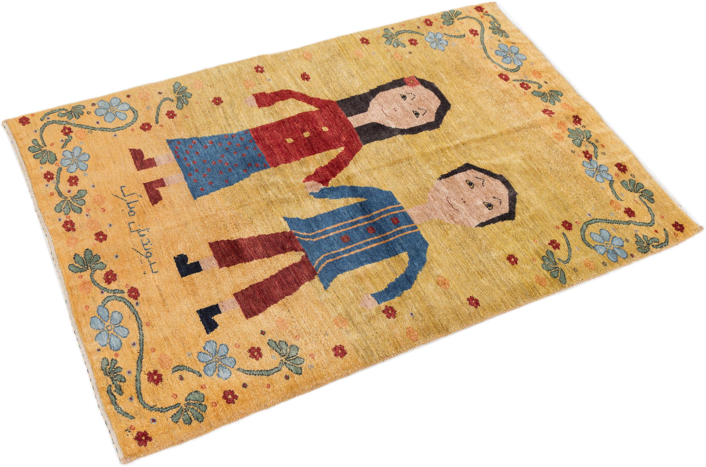This beautiful rug is a Persian Gabbeh and thus belongs to the highest quality Gabbeh rugs. The rugs are knotted by nomads or semi-nomads in Iran following traditional handicraft. The simple motifs and patterns are mostly inspired by the nomads' close environment. For example camels, trees or bushes can be found on the traditional rugs. Persian Gabbeh rugs are made of wool from locally raised flocks of sheep. The wool is therefore mostly still spun by hand. Thus each of these oriental rugs embodies a unique character of centuries-old culture.