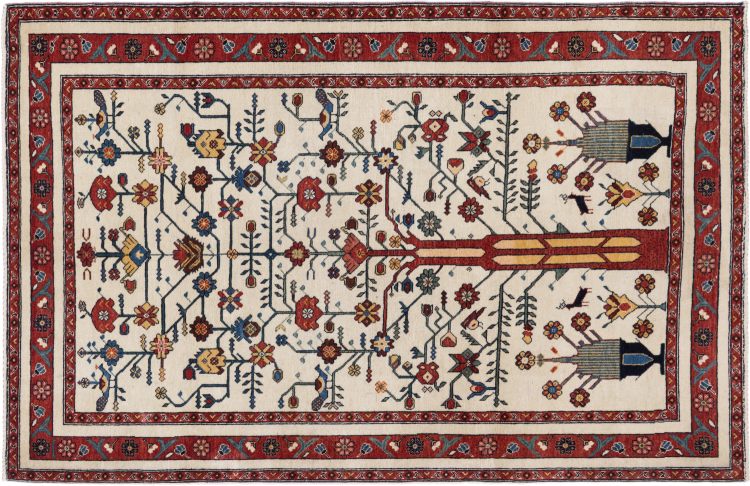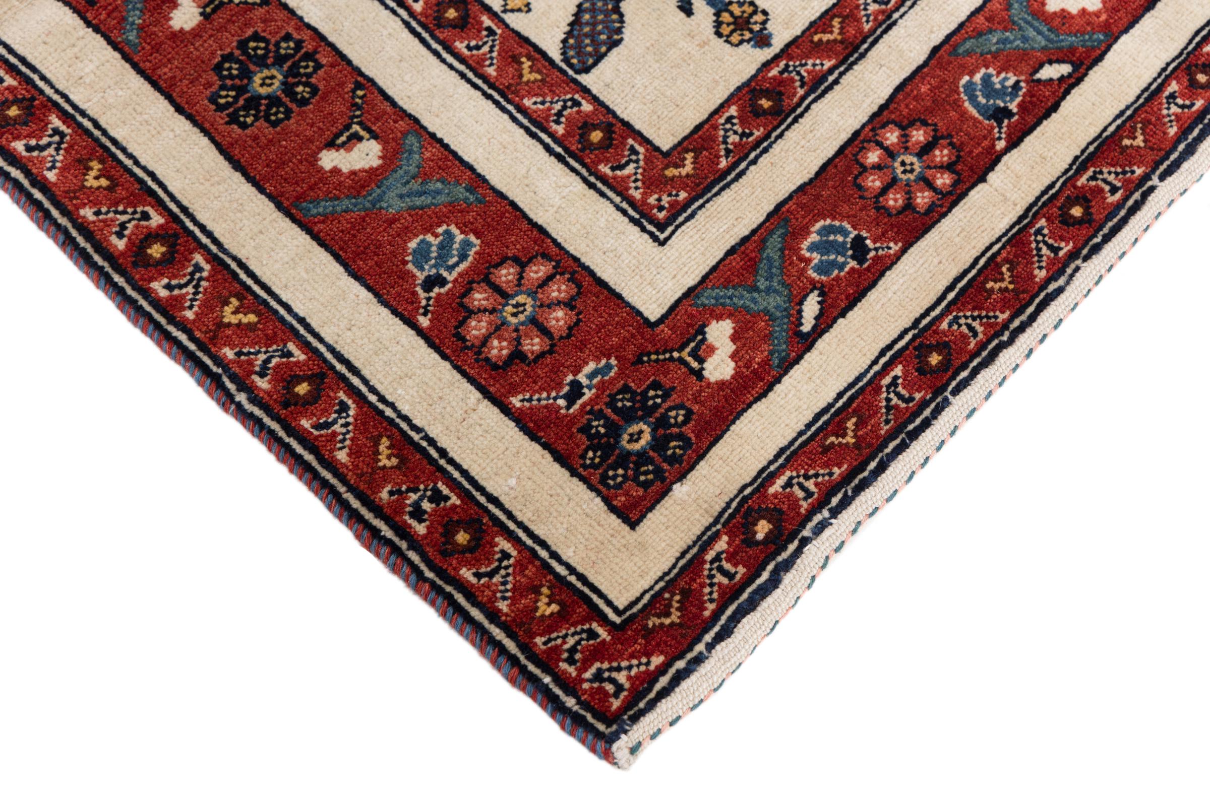 This rug is made of hand spun sheep wool of the highest quality. Especially in Iran (former Persia), Afghanistan and Pakistan wool is still spun by hand before the actual knotting of the rug begins. Wool has proven itself as a natural and extremely hard-wearing material over centuries. Among other things, it has dirt-repellent and heat-insulating properties. At the same time, wool is incomparably soft and has a natural shine.