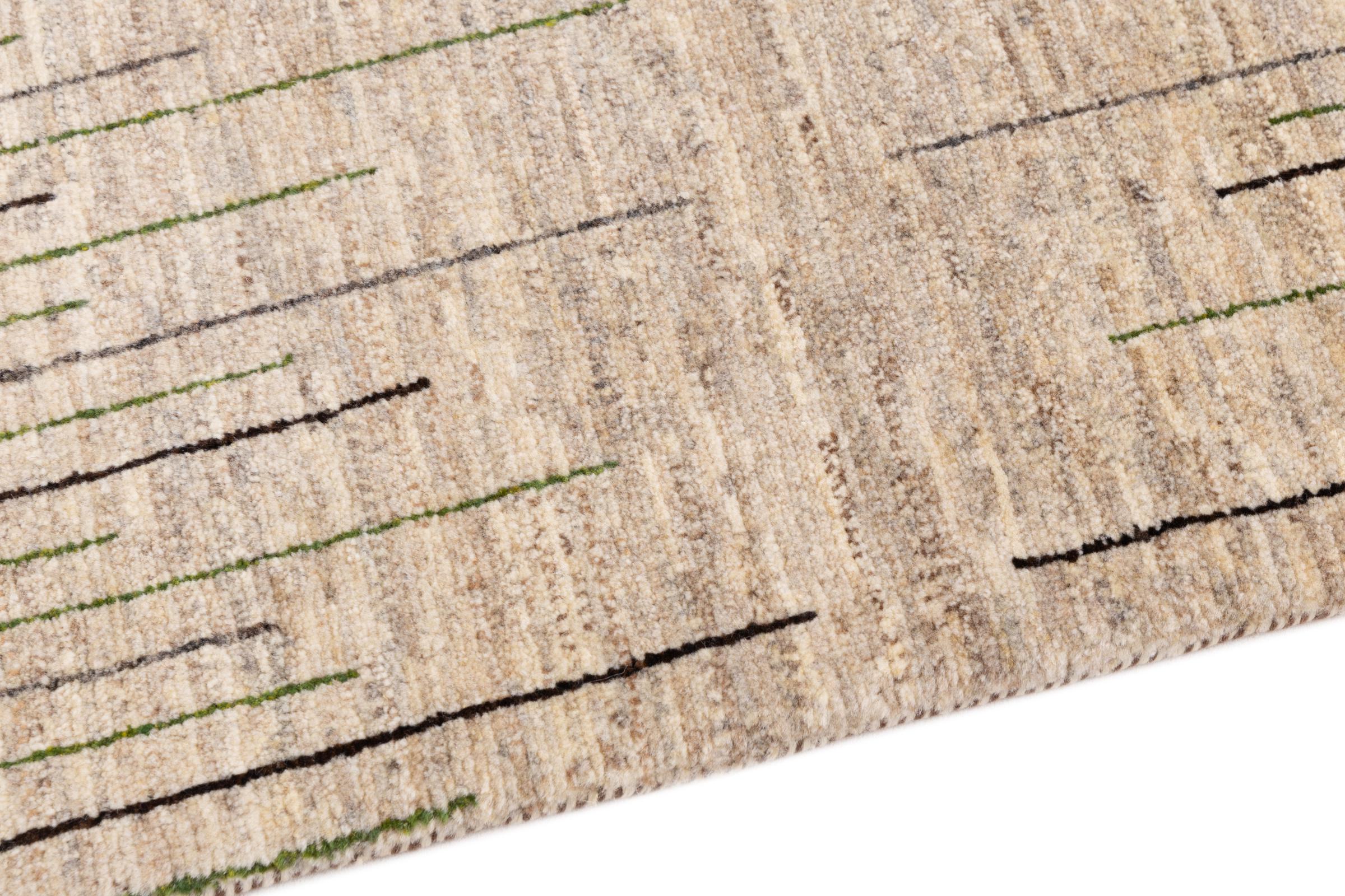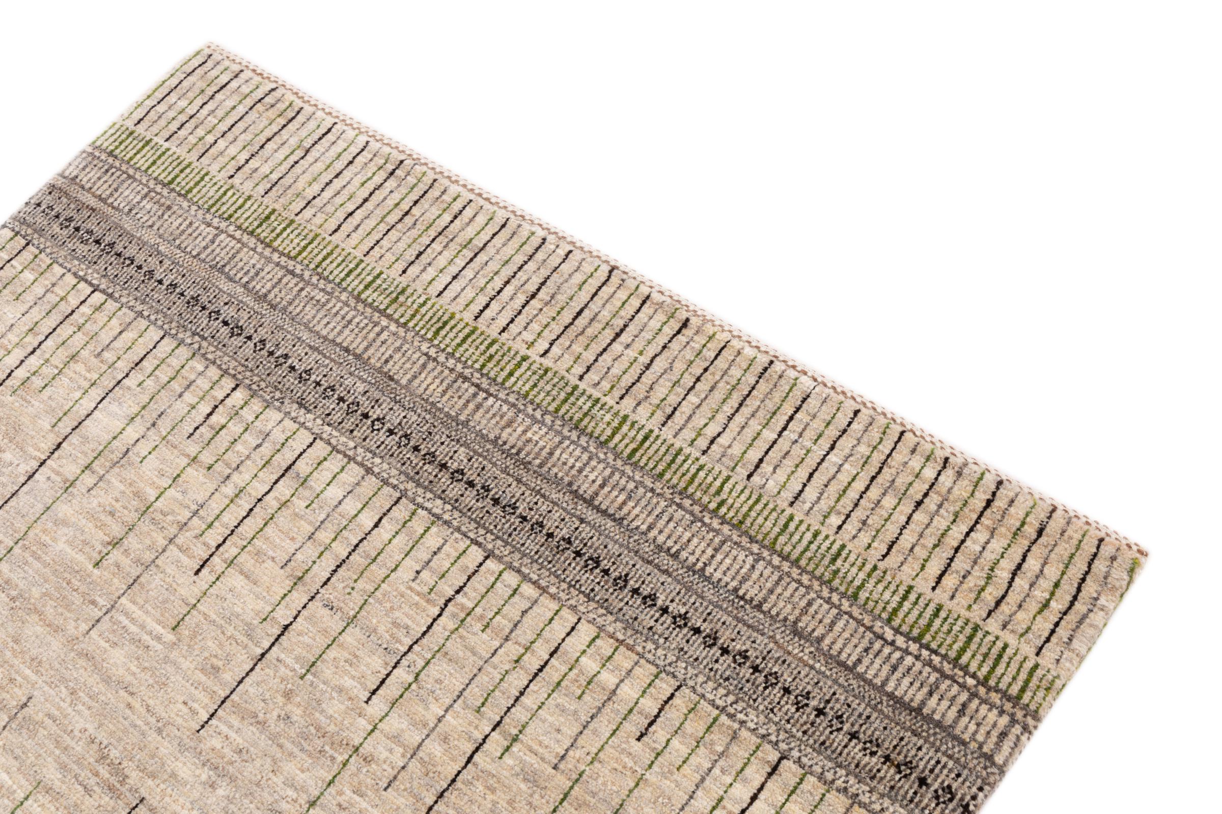 This beautiful rug is a Persian Gabbeh and thus belongs to the highest quality Gabbeh rugs. The rugs are knotted by nomads or semi-nomads in Iran following traditional handicraft. The simple motifs and patterns are mostly inspired by the nomads' close environment. For example camels, trees or bushes can be found on the traditional rugs. Persian Gabbeh rugs are made of wool from locally raised flocks of sheep. The wool is therefore mostly still spun by hand. Thus each of these oriental rugs embodies a unique character of centuries-old culture.
