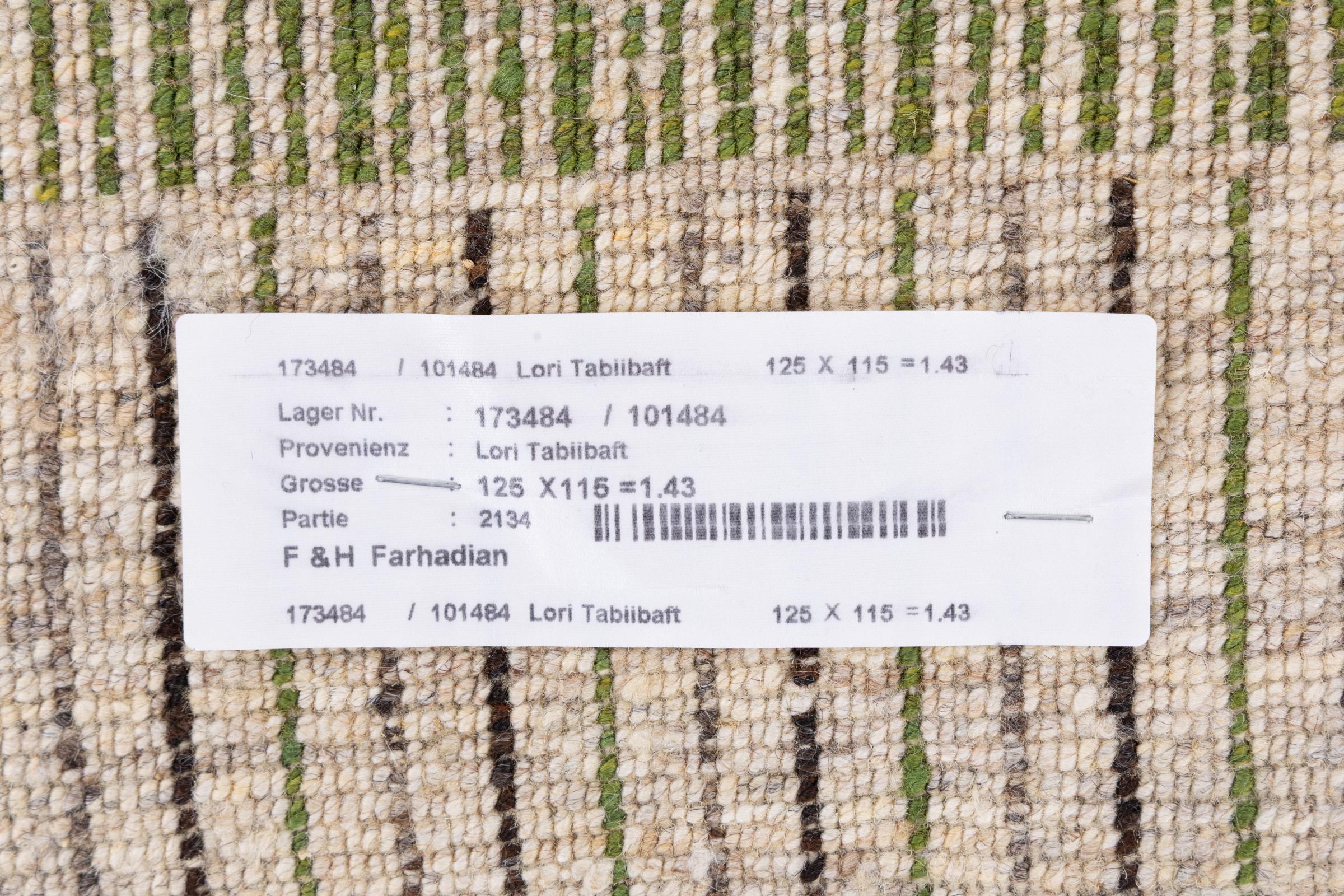 Carpet ID: 28735000436185 Size: 124x116 cm Thickness: ap. 12 mm Knot density: 160 000 - 200 000 / m² Manufacturing: Knotted by hand Pile: Handspun wool Warp: Sheep wool Origin: Persia Age: New Weight: ap. 5 kg In stock: Unique - Only 1 in stock