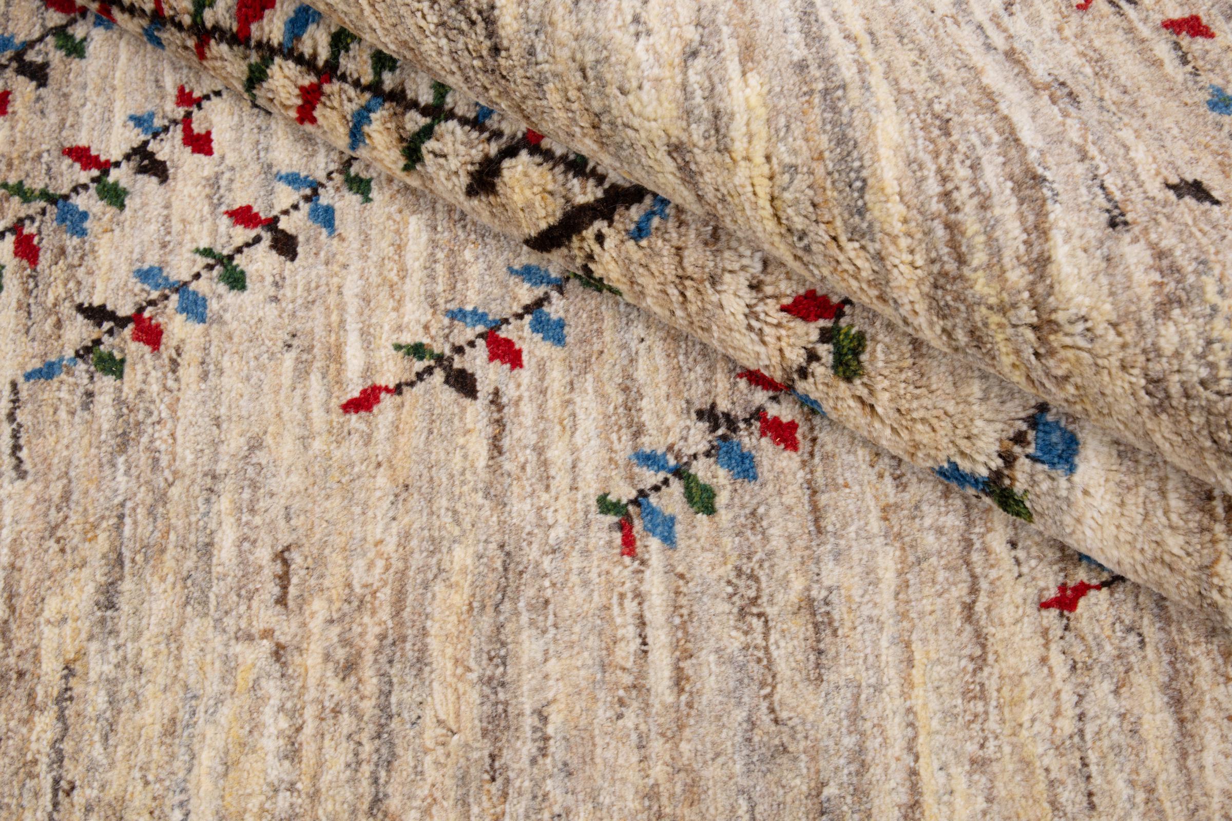 This rug is made of hand spun sheep wool of the highest quality. Especially in Iran (former Persia), Afghanistan and Pakistan wool is still spun by hand before the actual knotting of the rug begins. Wool has proven itself as a natural and extremely hard-wearing material over centuries. Among other things, it has dirt-repellent and heat-insulating properties. At the same time, wool is incomparably soft and has a natural shine.