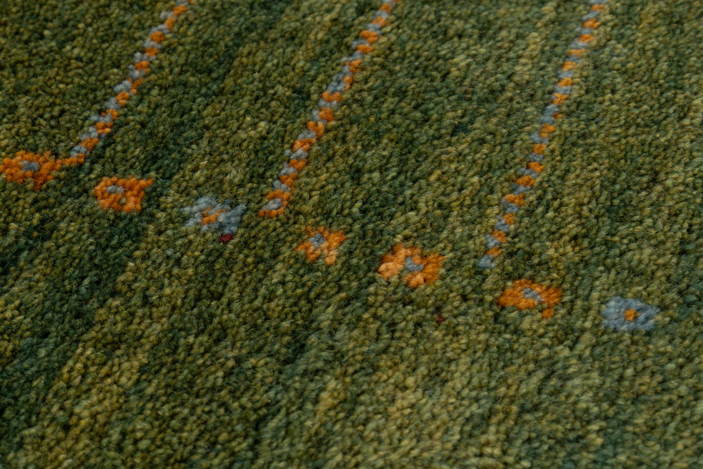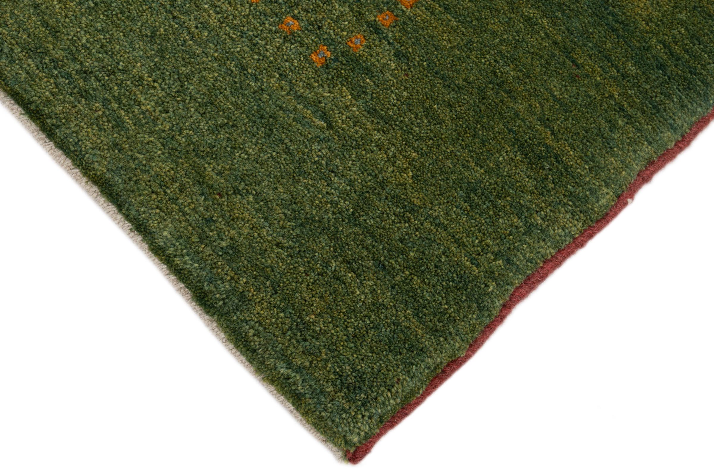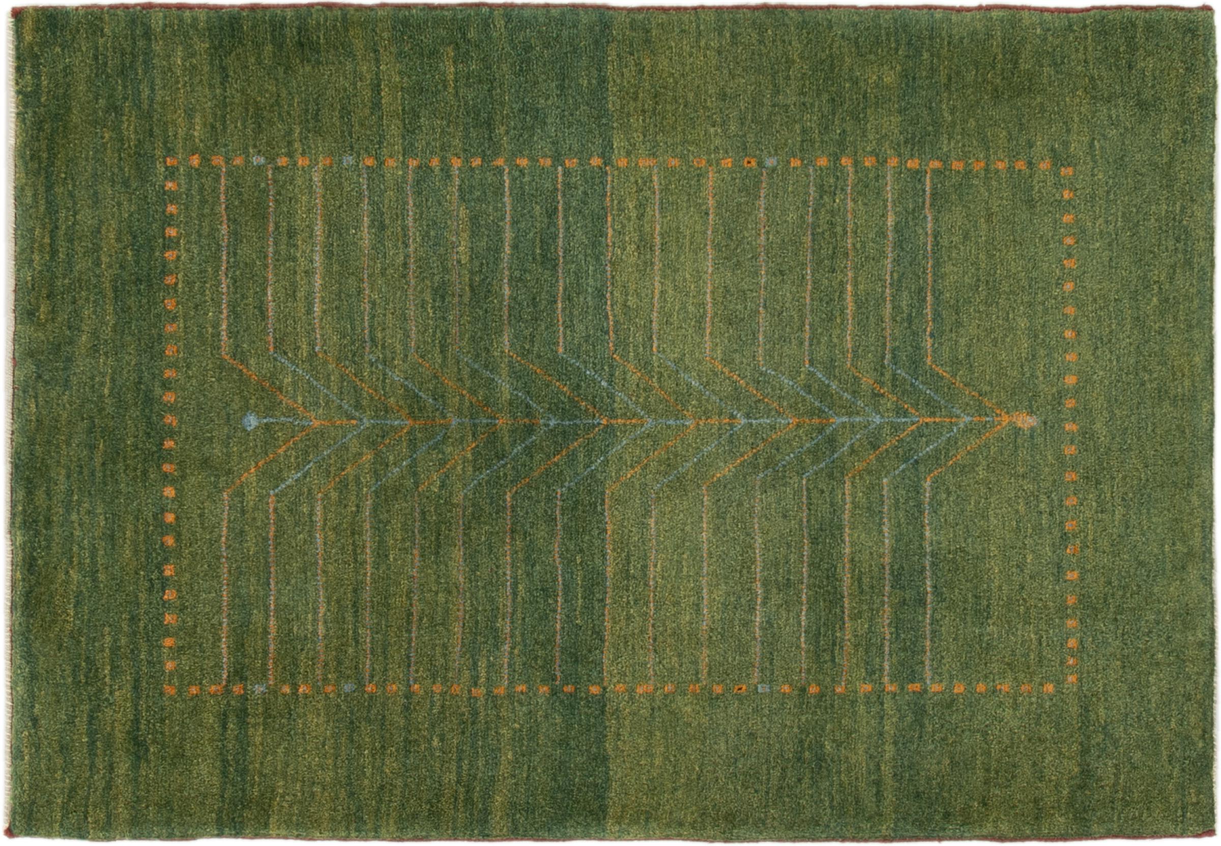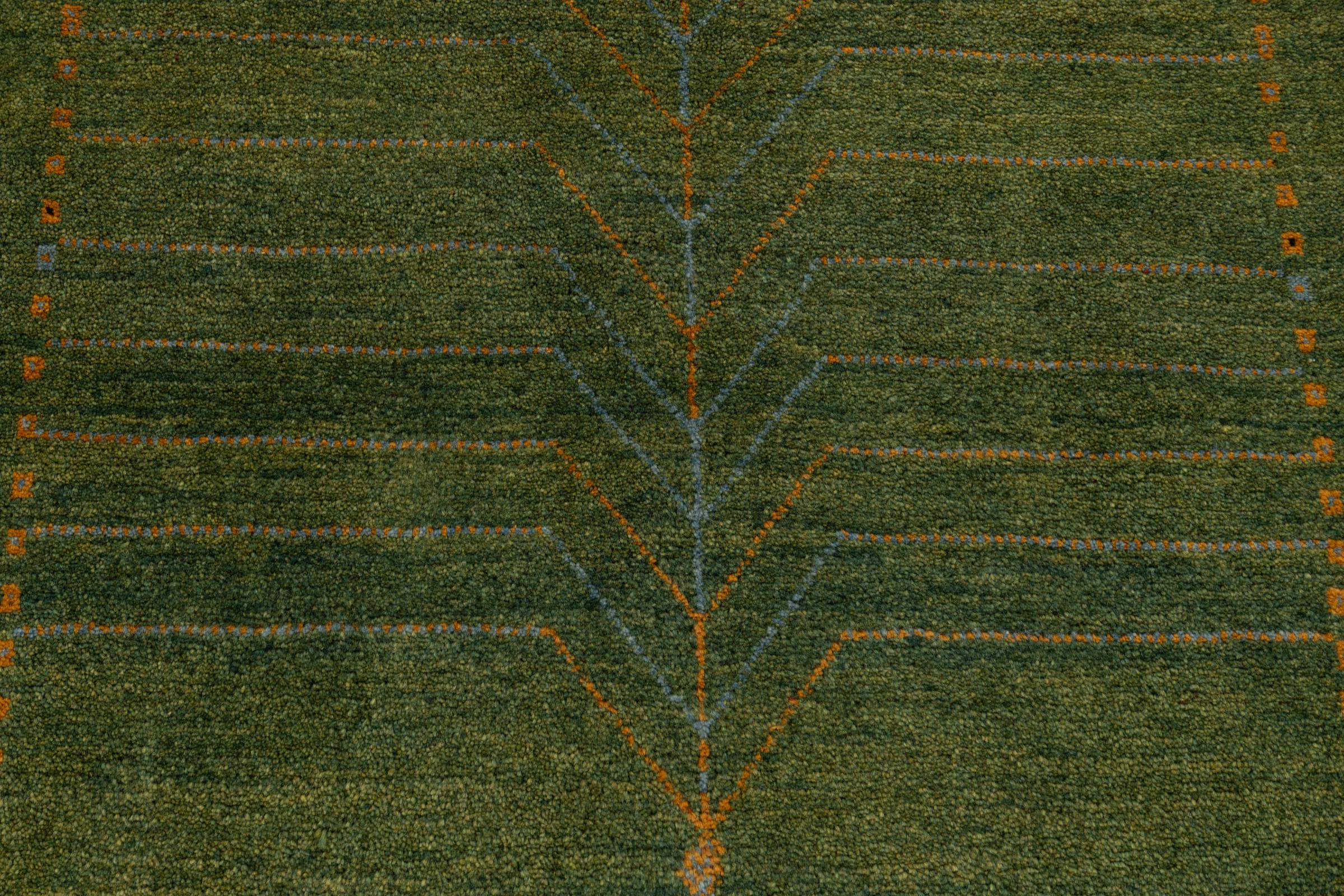 This beautiful rug is a Persian Gabbeh and thus belongs to the highest quality Gabbeh rugs. The rugs are knotted by nomads or semi-nomads in Iran following traditional handicraft. The simple motifs and patterns are mostly inspired by the nomads' close environment. For example camels, trees or bushes can be found on the traditional rugs. Persian Gabbeh rugs are made of wool from locally raised flocks of sheep. The wool is therefore mostly still spun by hand. Thus each of these oriental rugs embodies a unique character of centuries-old culture.