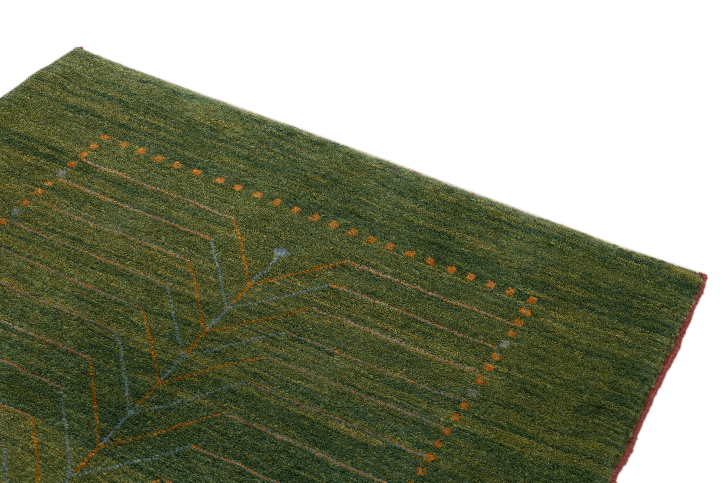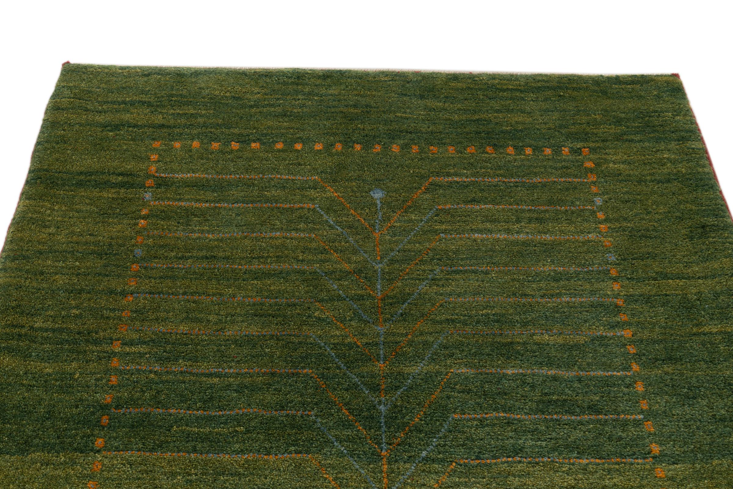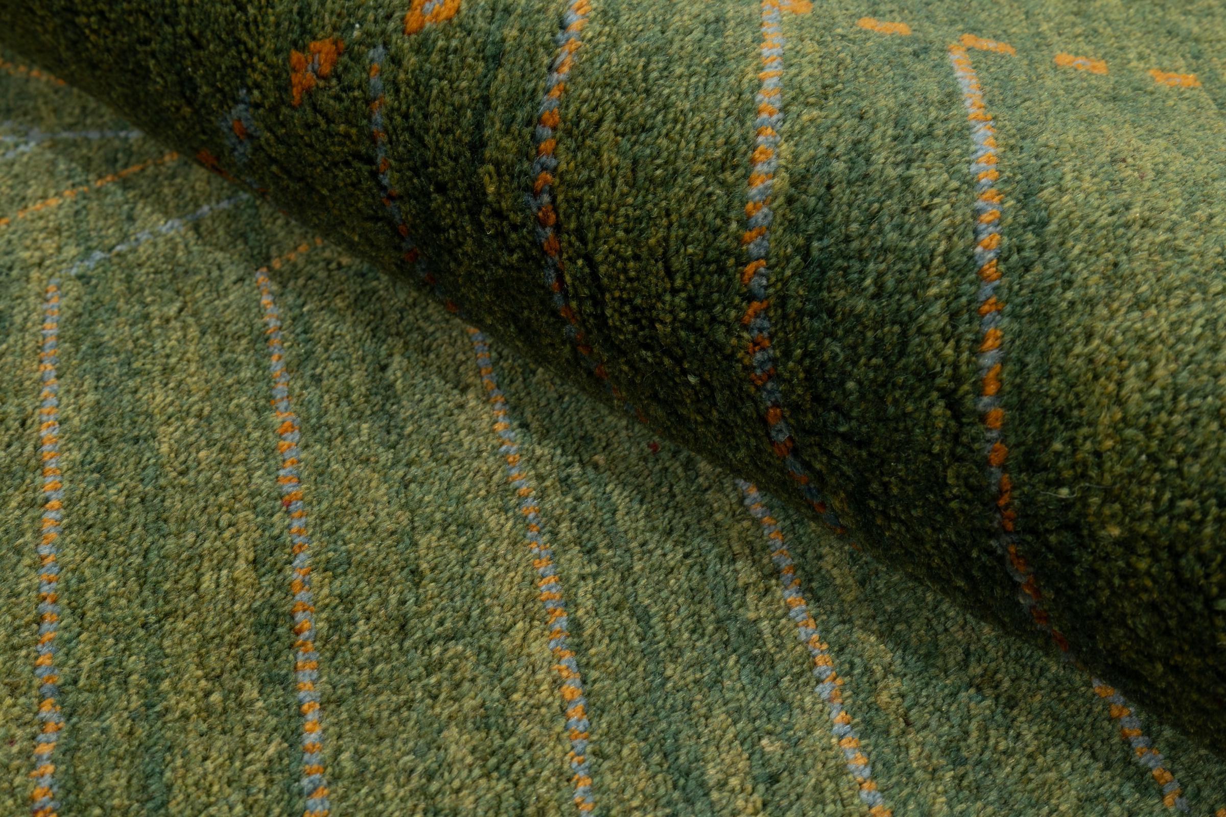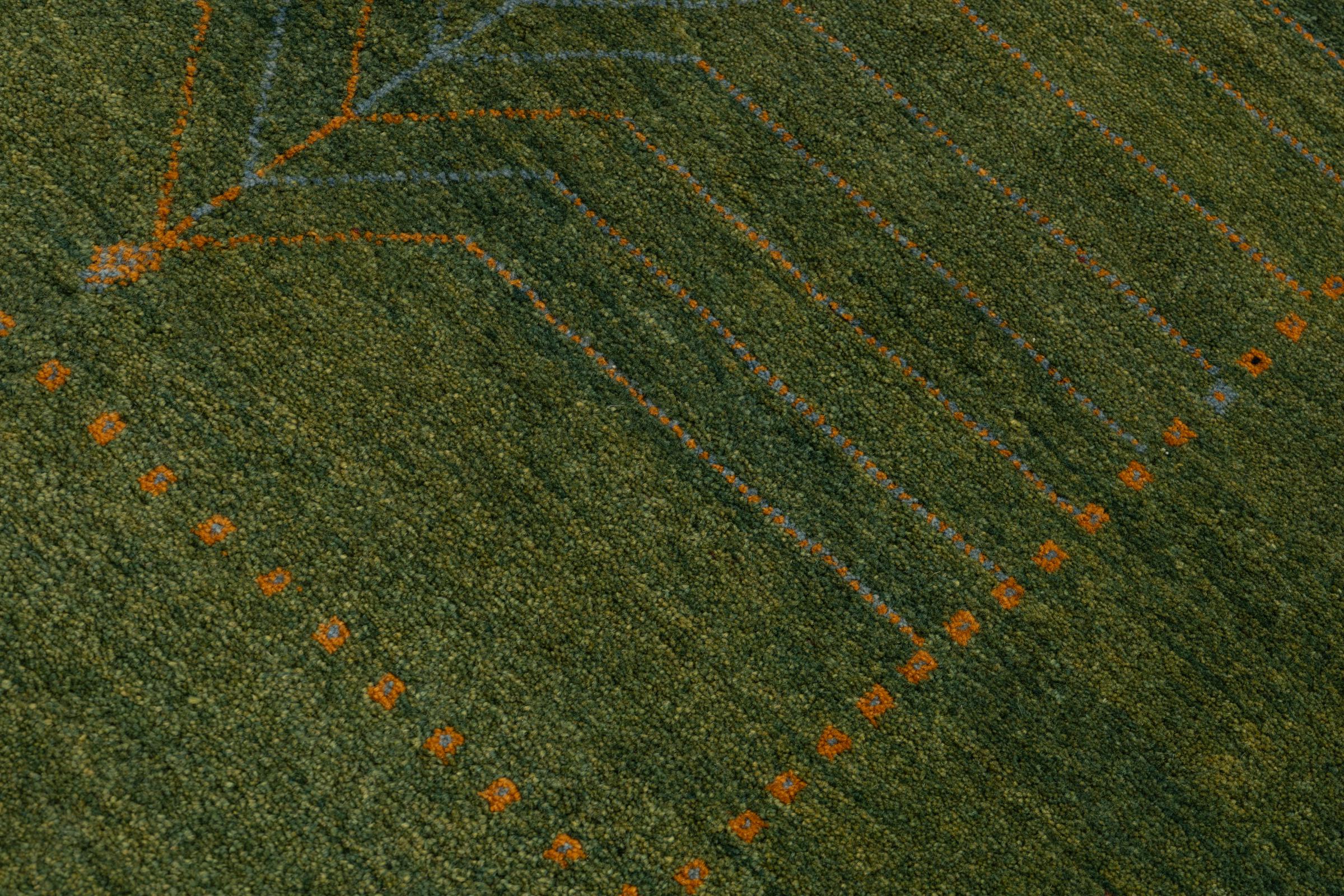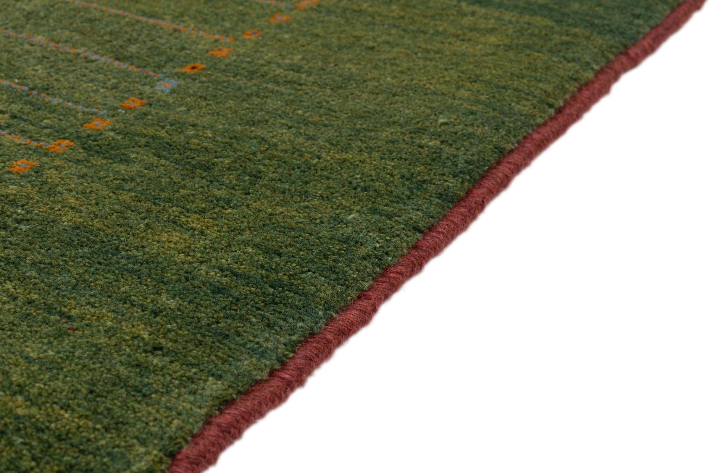 This beautiful rug is a Persian Gabbeh and thus belongs to the highest quality Gabbeh rugs. The rugs are knotted by nomads or semi-nomads in Iran following traditional handicraft. The simple motifs and patterns are mostly inspired by the nomads' close environment. For example camels, trees or bushes can be found on the traditional rugs. Persian Gabbeh rugs are made of wool from locally raised flocks of sheep. The wool is therefore mostly still spun by hand. Thus each of these oriental rugs embodies a unique character of centuries-old culture.
