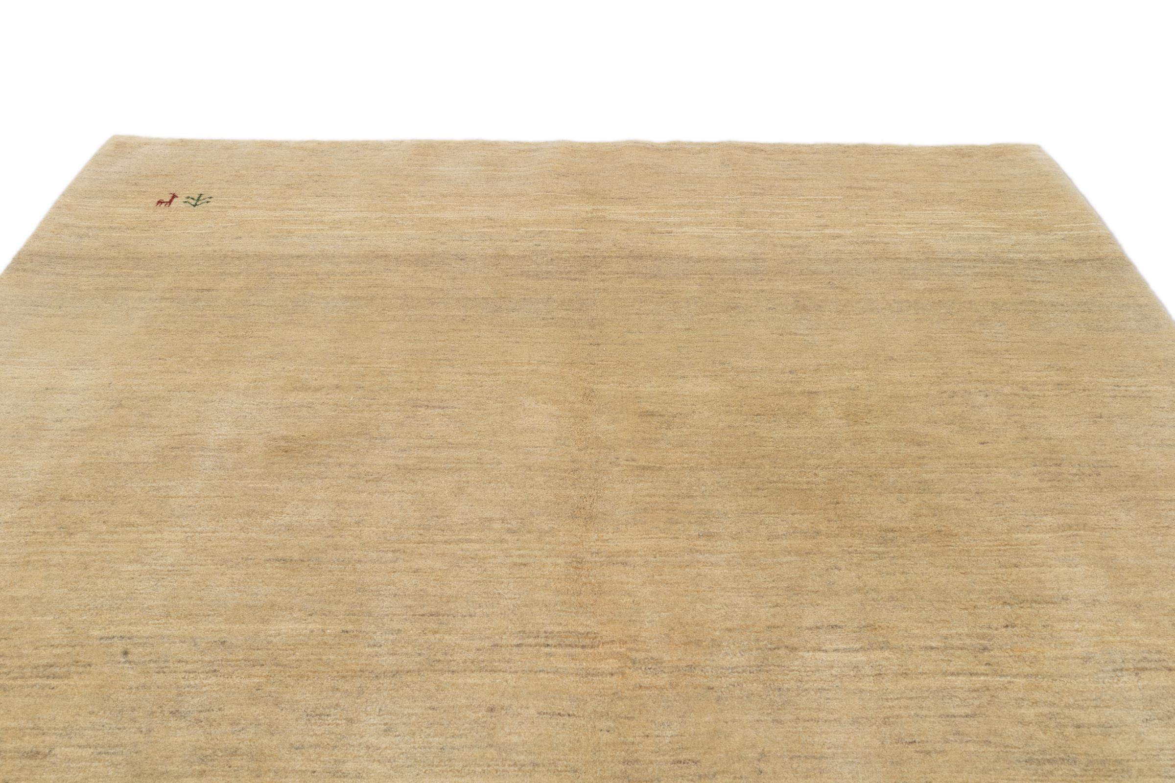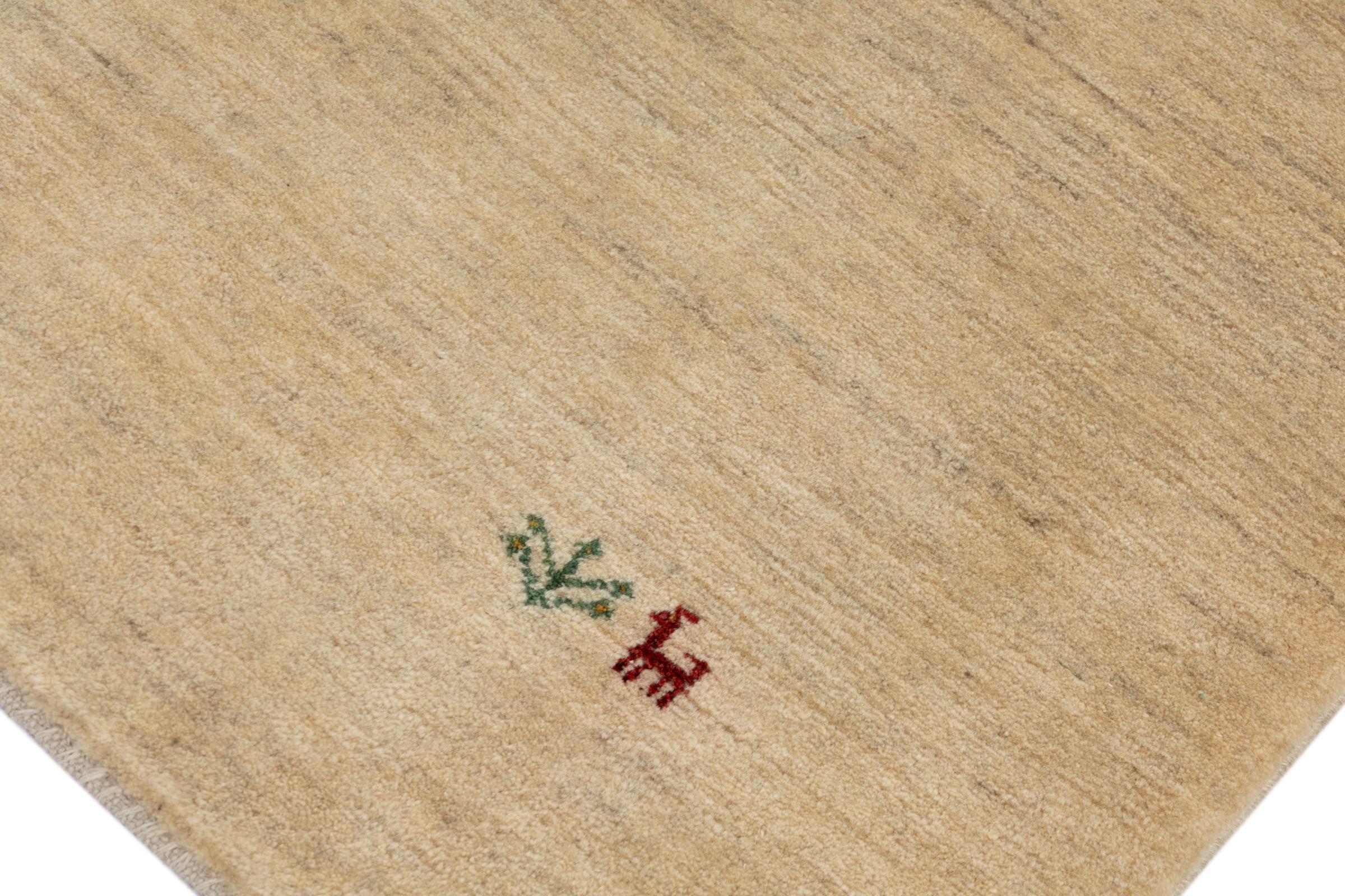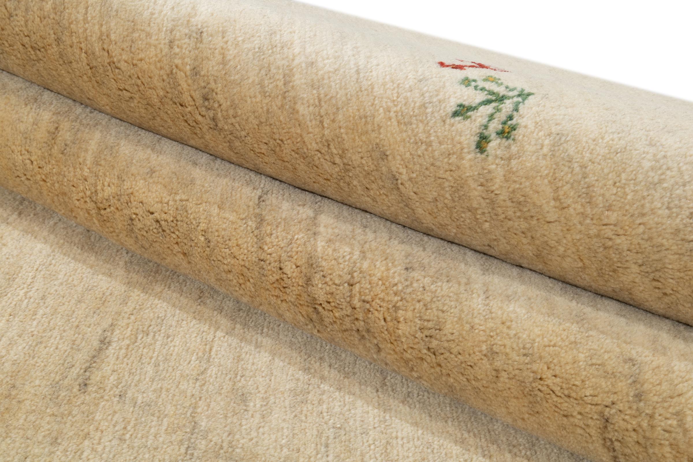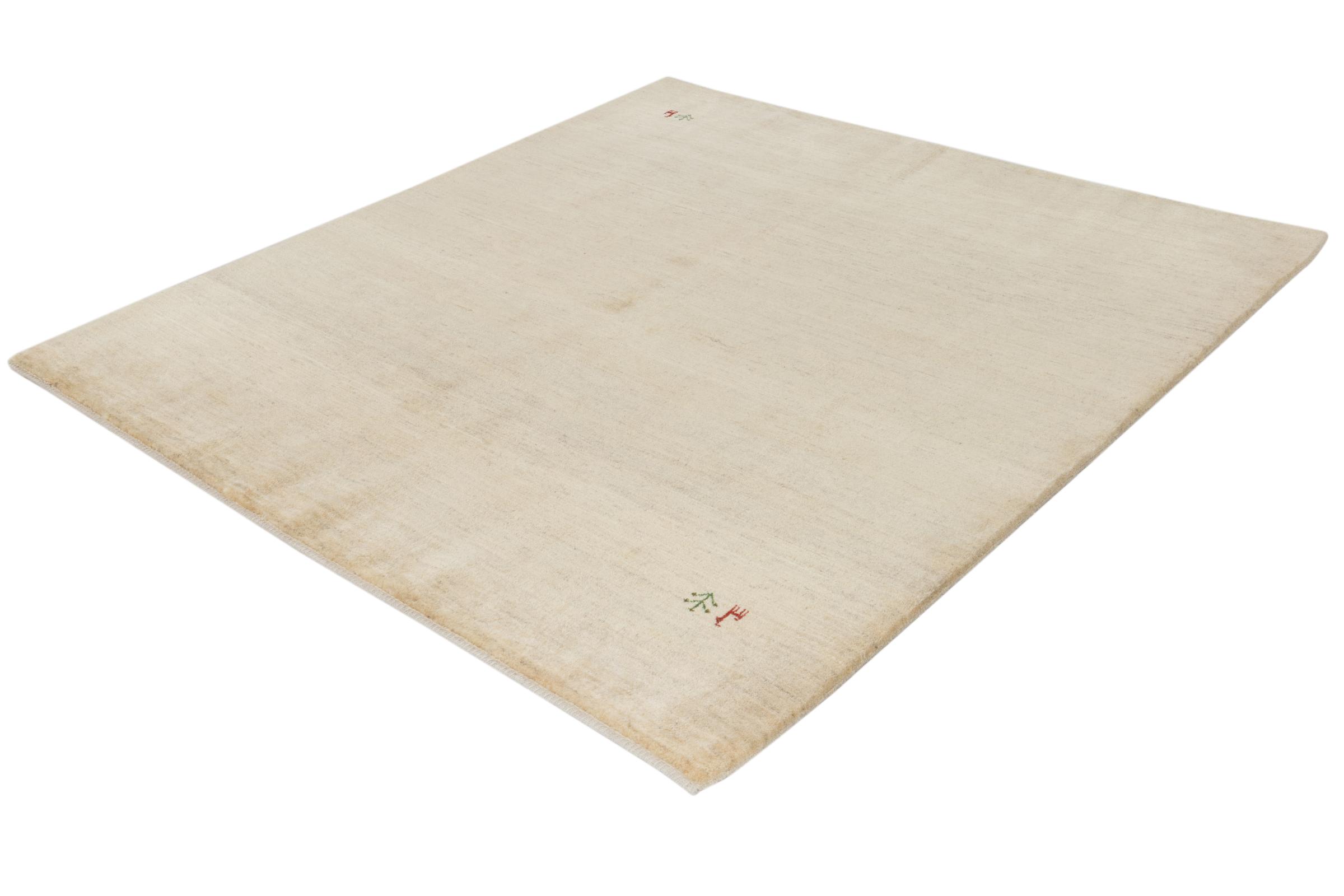 This beautiful rug is a Persian Gabbeh and thus belongs to the highest quality Gabbeh rugs. The rugs are knotted by nomads or semi-nomads in Iran following traditional handicraft. The simple motifs and patterns are mostly inspired by the nomads' close environment. For example camels, trees or bushes can be found on the traditional rugs. Persian Gabbeh rugs are made of wool from locally raised flocks of sheep. The wool is therefore mostly still spun by hand. Thus each of these oriental rugs embodies a unique character of centuries-old culture.