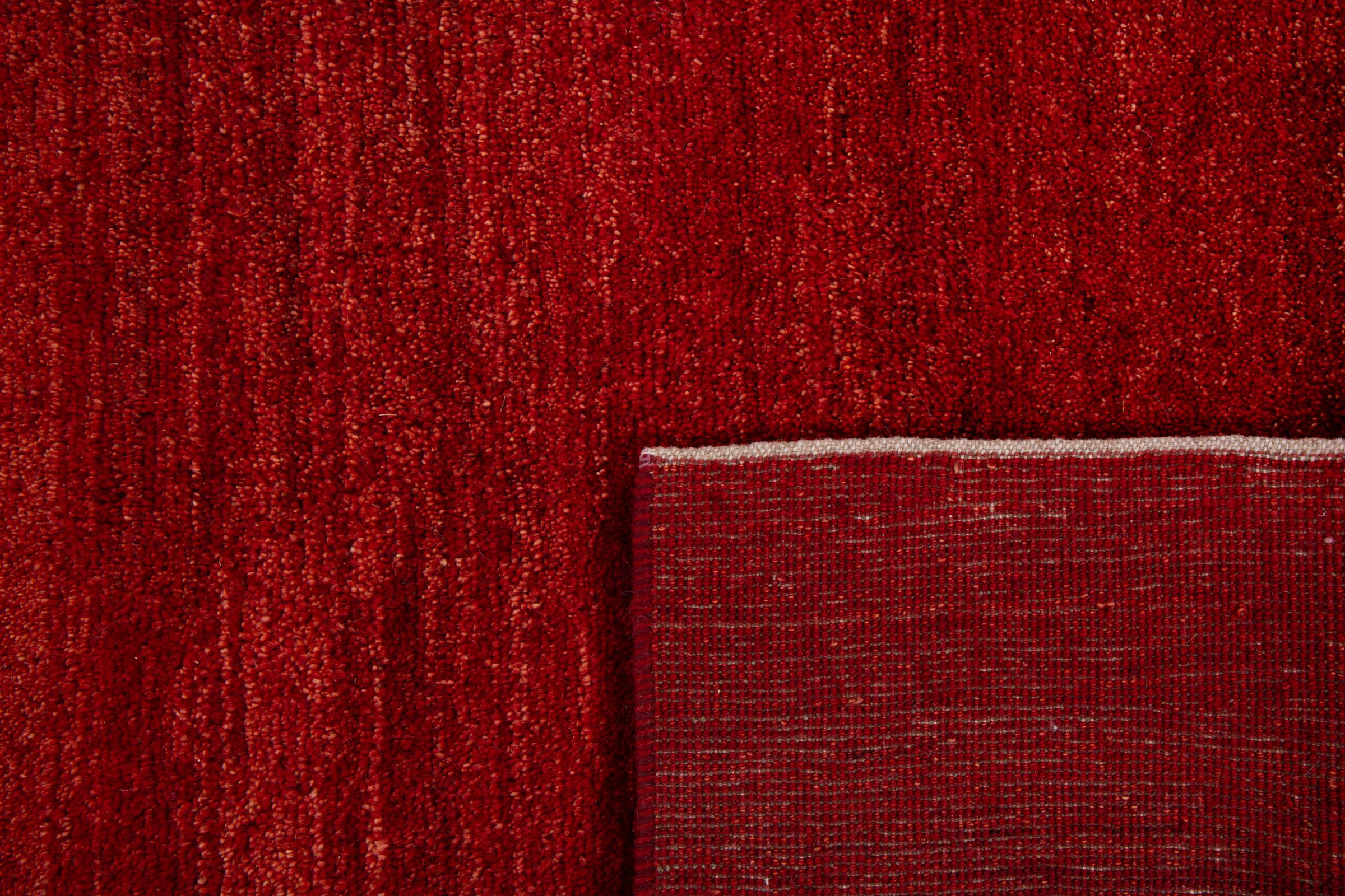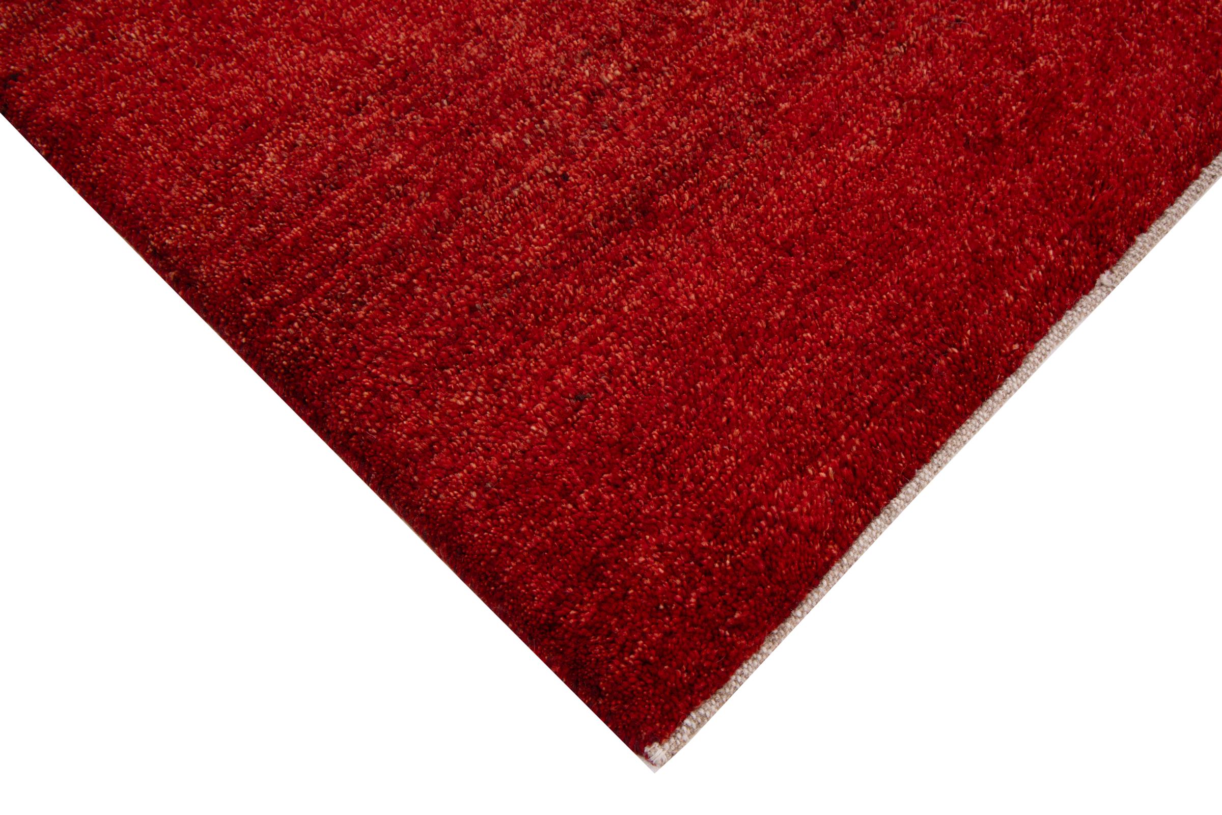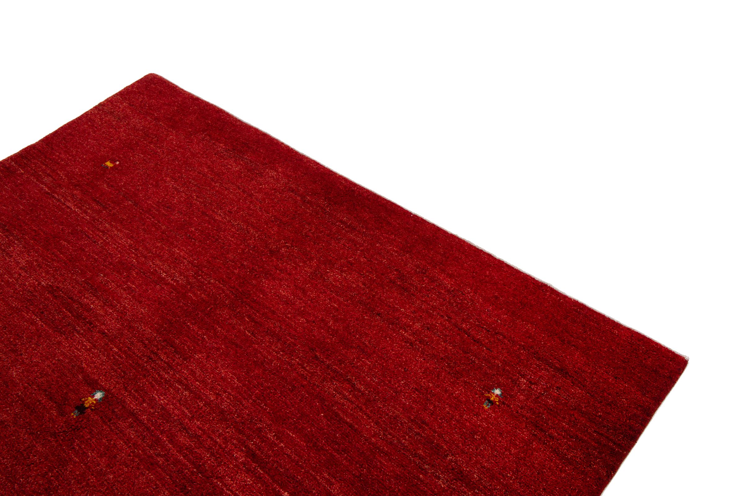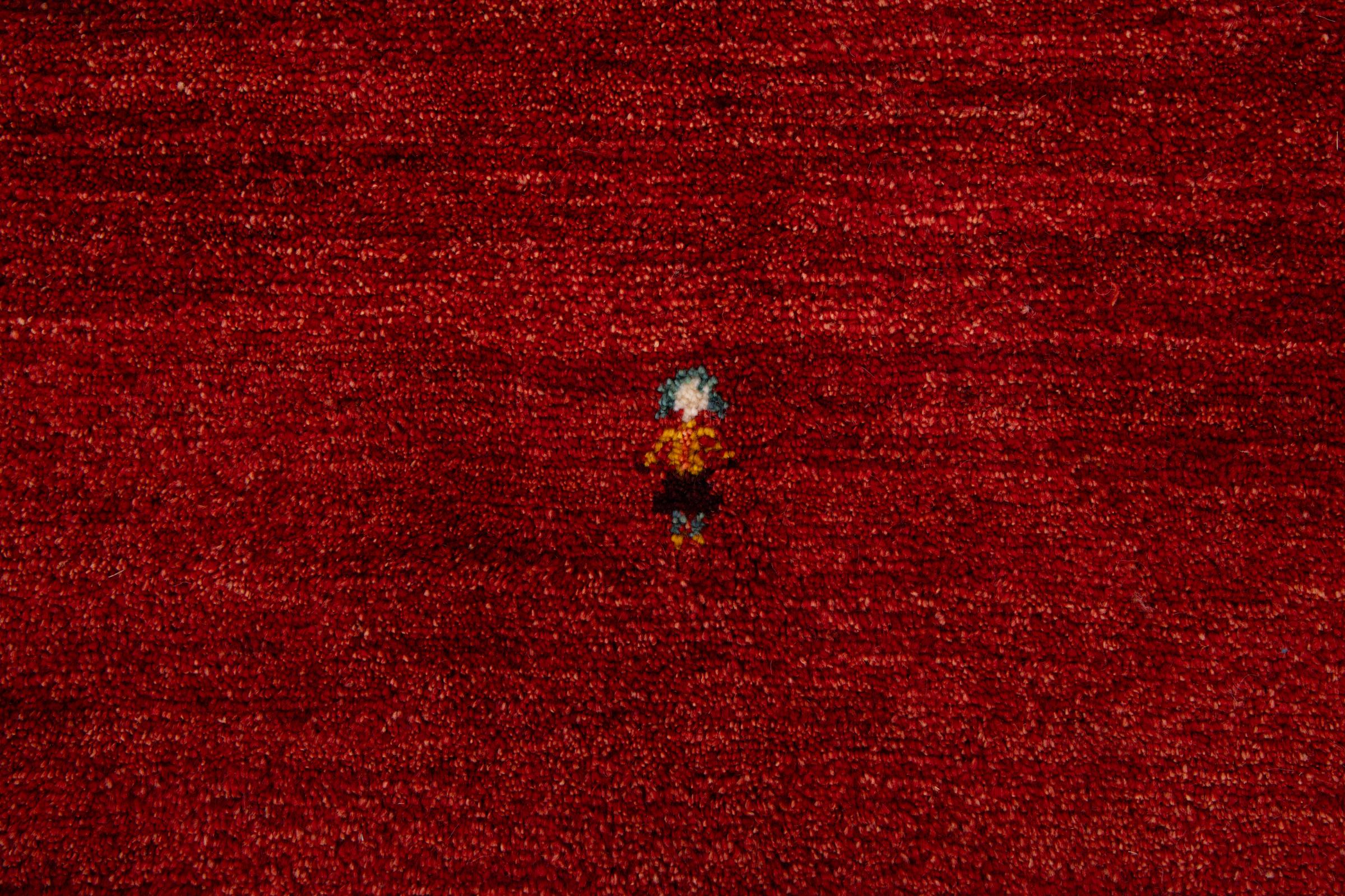 This beautiful rug is a Persian Gabbeh and thus belongs to the highest quality Gabbeh rugs. The rugs are knotted by nomads or semi-nomads in Iran following traditional handicraft. The simple motifs and patterns are mostly inspired by the nomads' close environment. For example camels, trees or bushes can be found on the traditional rugs. Persian Gabbeh rugs are made of wool from locally raised flocks of sheep. The wool is therefore mostly still spun by hand. Thus each of these oriental rugs embodies a unique character of centuries-old culture.