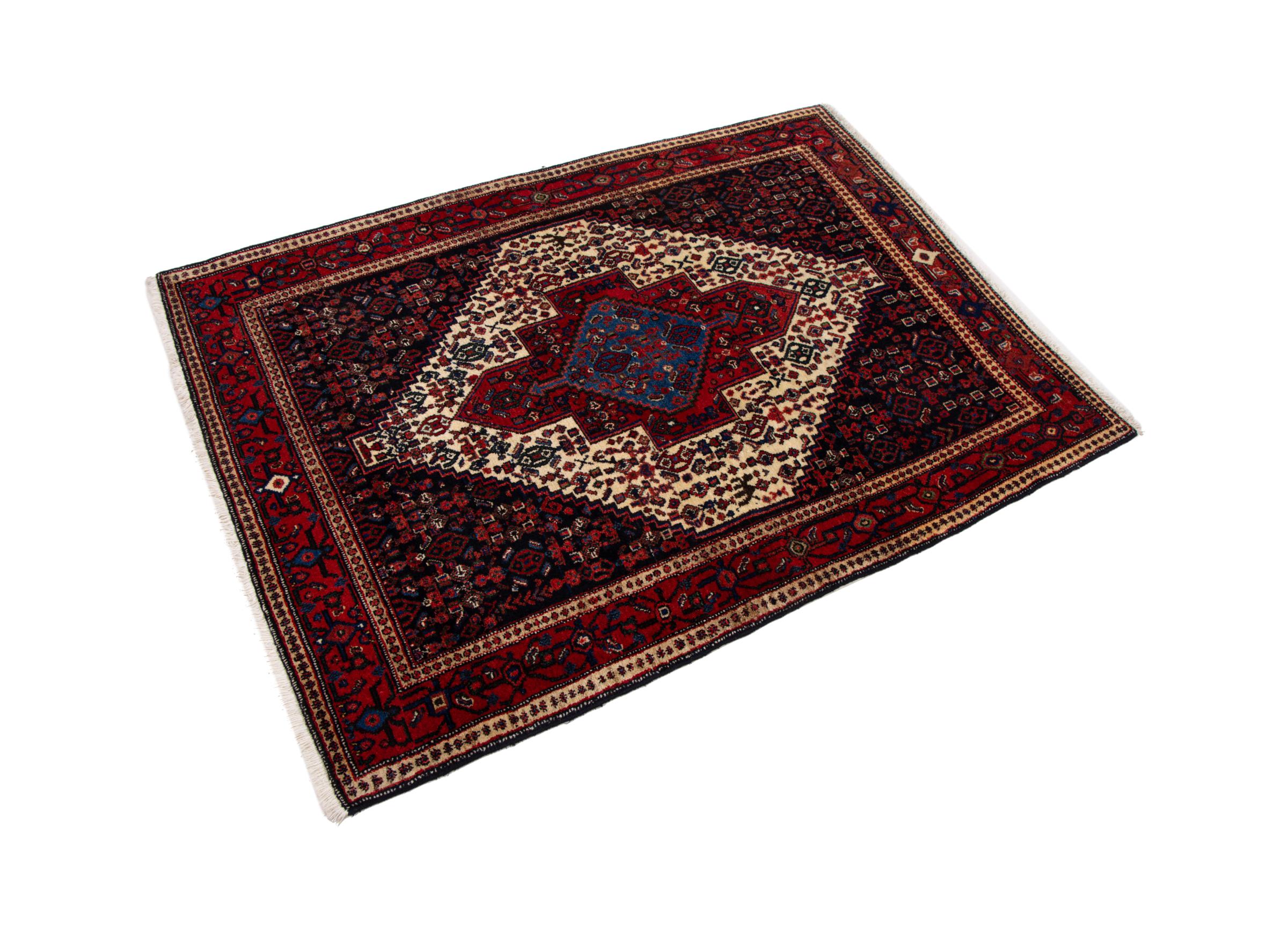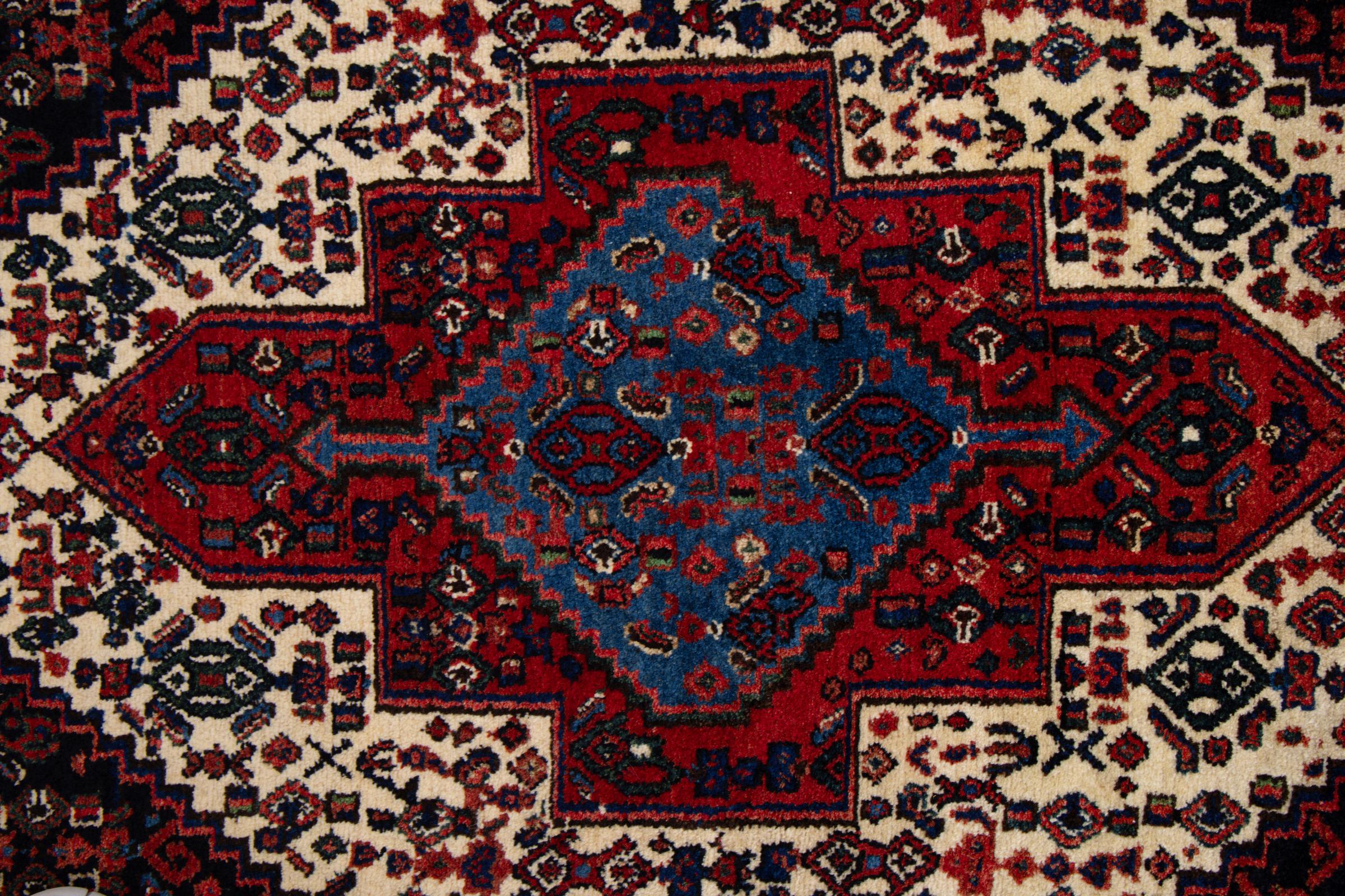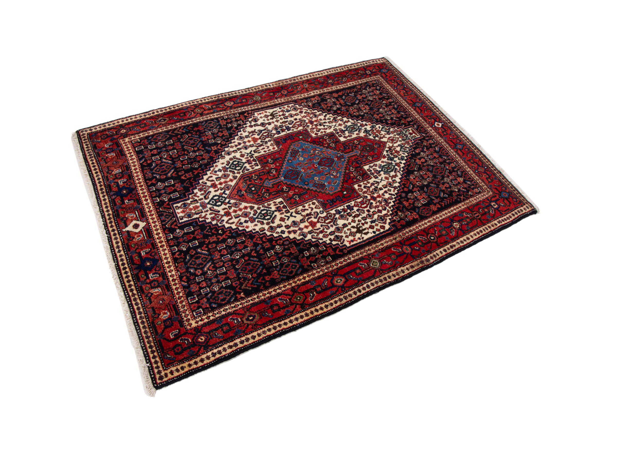 This rug belongs to village and nomadic rugs from Iran, formerly Persia. This type of rug is knotted by hand in smaller towns and villages in old tradition. Even nomads still knot Persian rugs in the open air. The rugs are knotted without a draft and completely from the mind. They are characterized by classical ornaments, which are arranged in straight and geometrical patterns. Thanks to their cultural-traditional origin, these rugs have a unique character that embodies ancient Persia.
