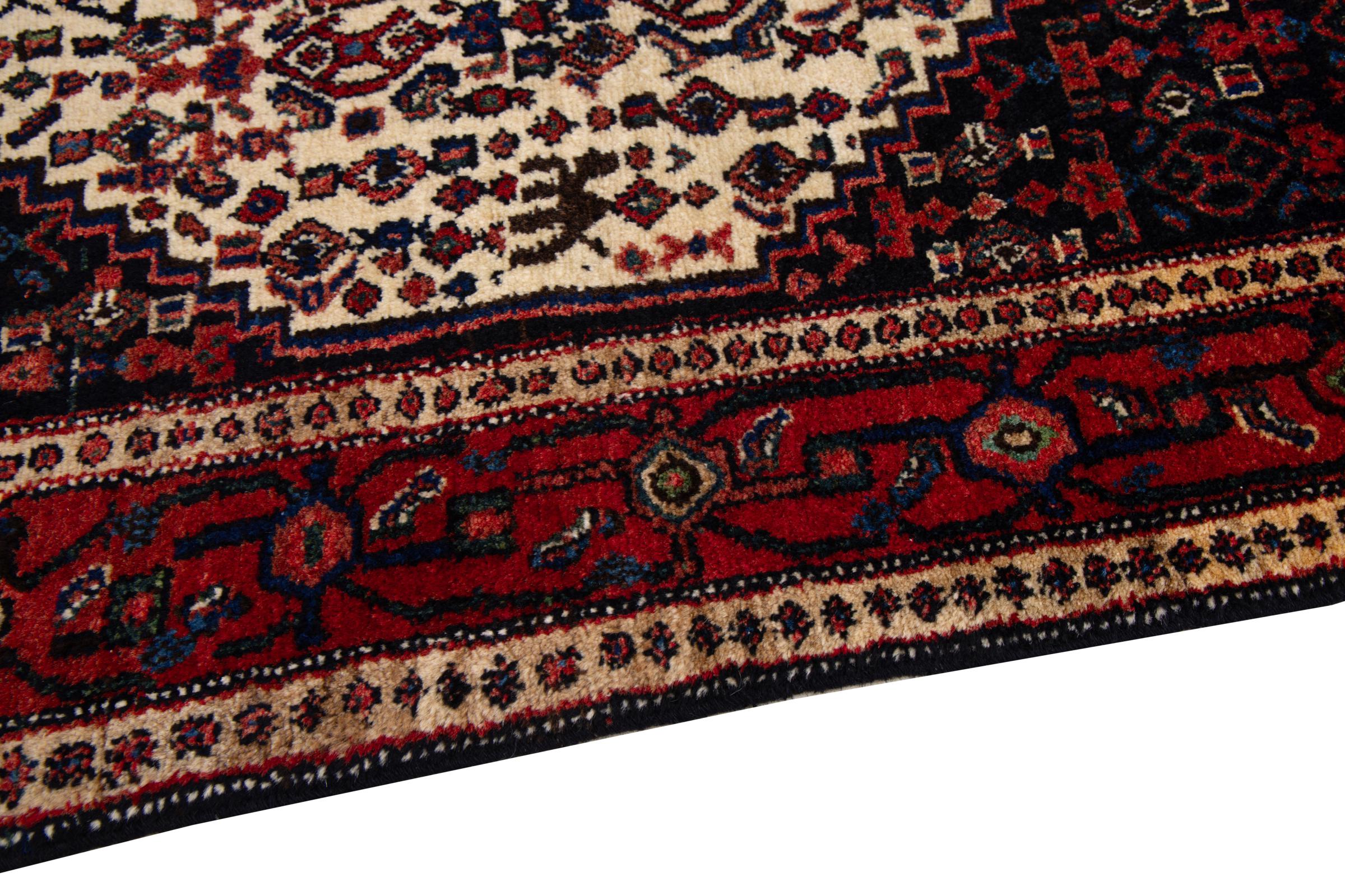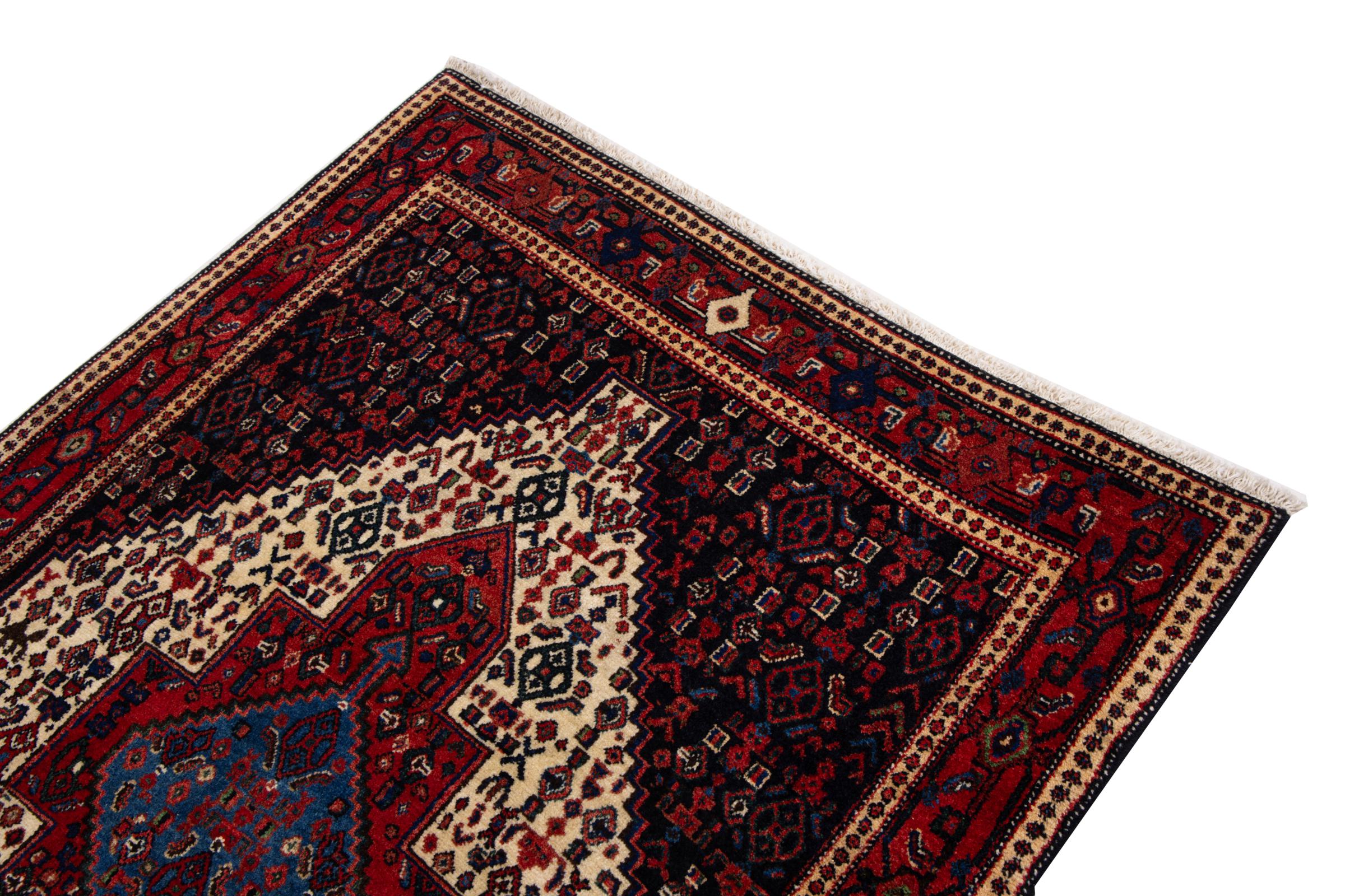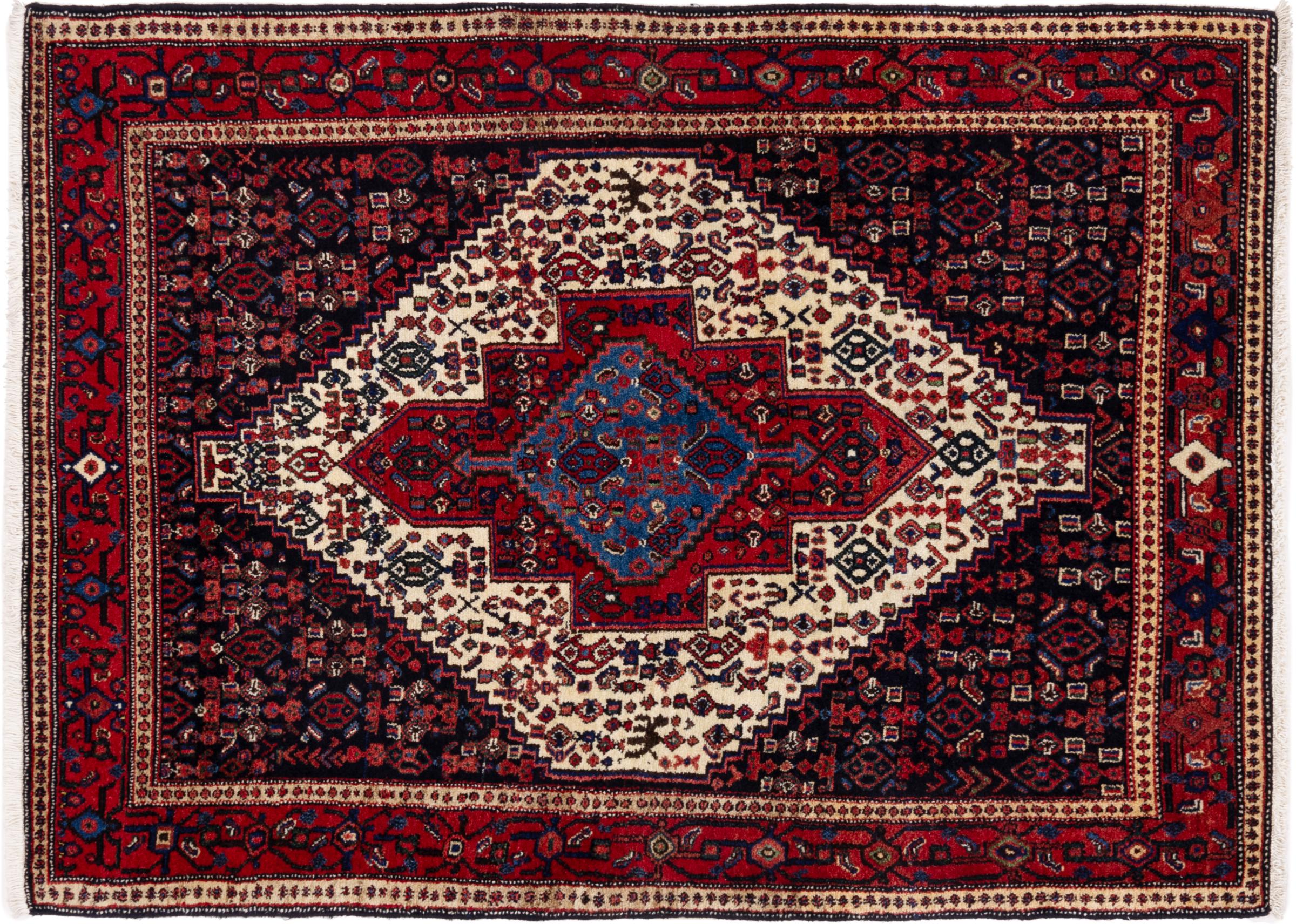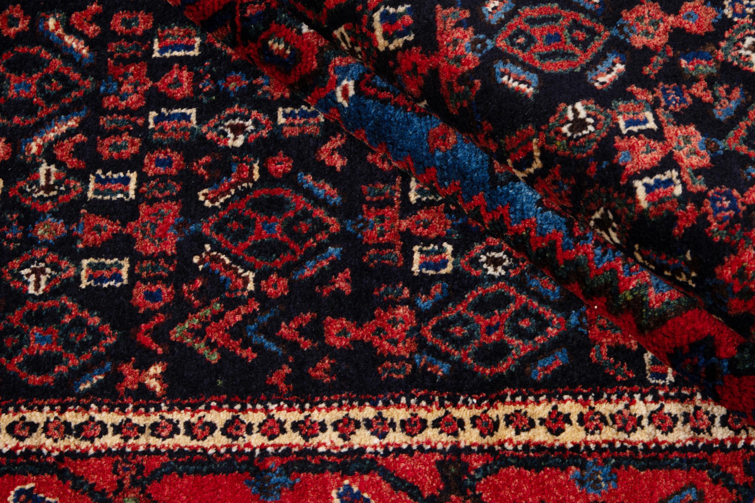 This rug belongs to village and nomadic rugs from Iran, formerly Persia. This type of rug is knotted by hand in smaller towns and villages in old tradition. Even nomads still knot Persian rugs in the open air. The rugs are knotted without a draft and completely from the mind. They are characterized by classical ornaments, which are arranged in straight and geometrical patterns. Thanks to their cultural-traditional origin, these rugs have a unique character that embodies ancient Persia.