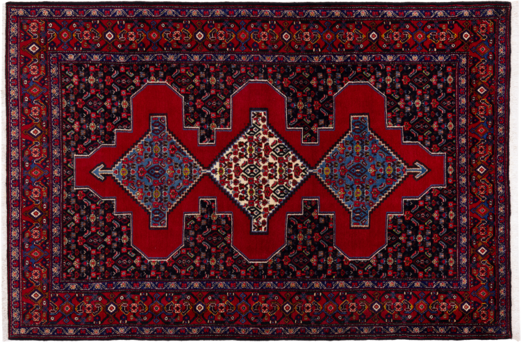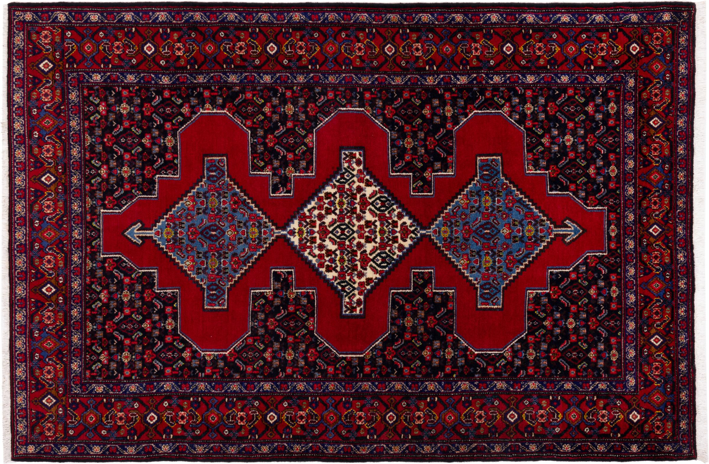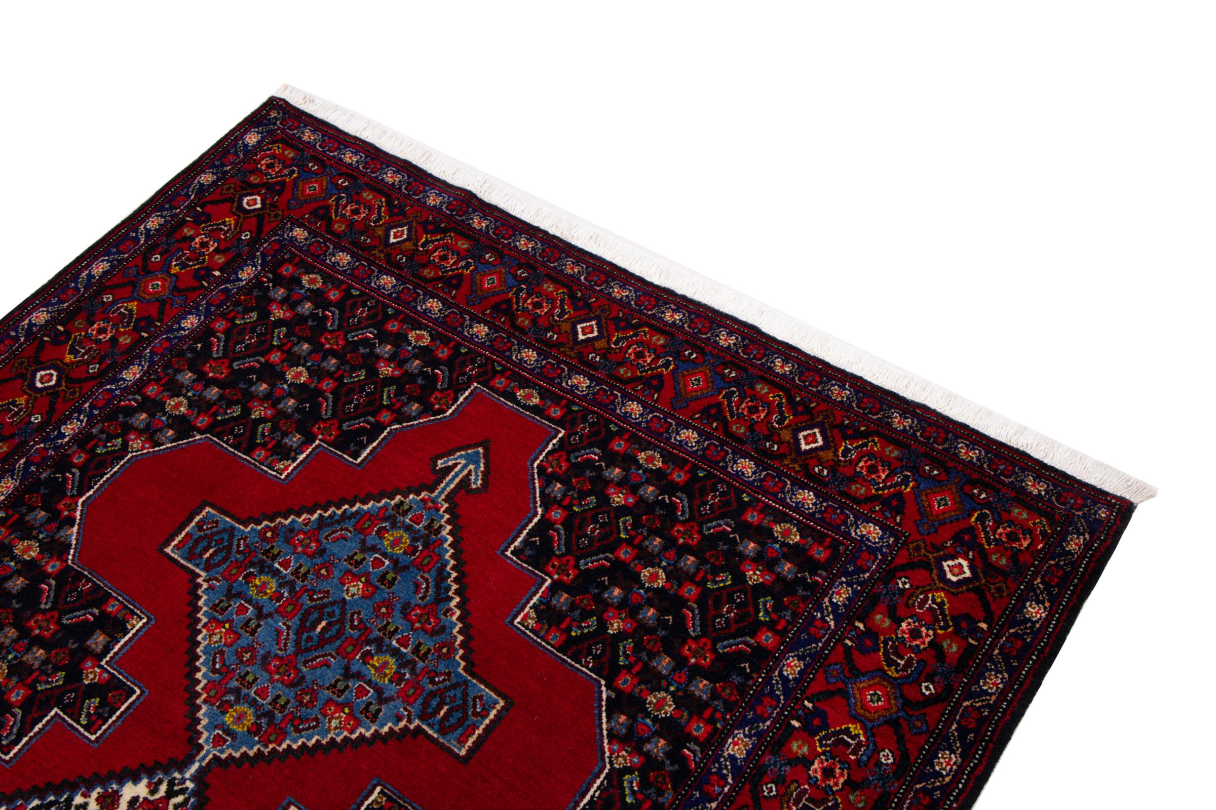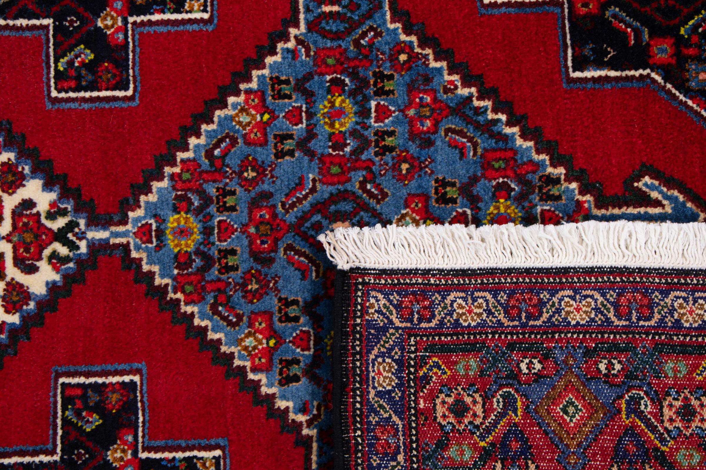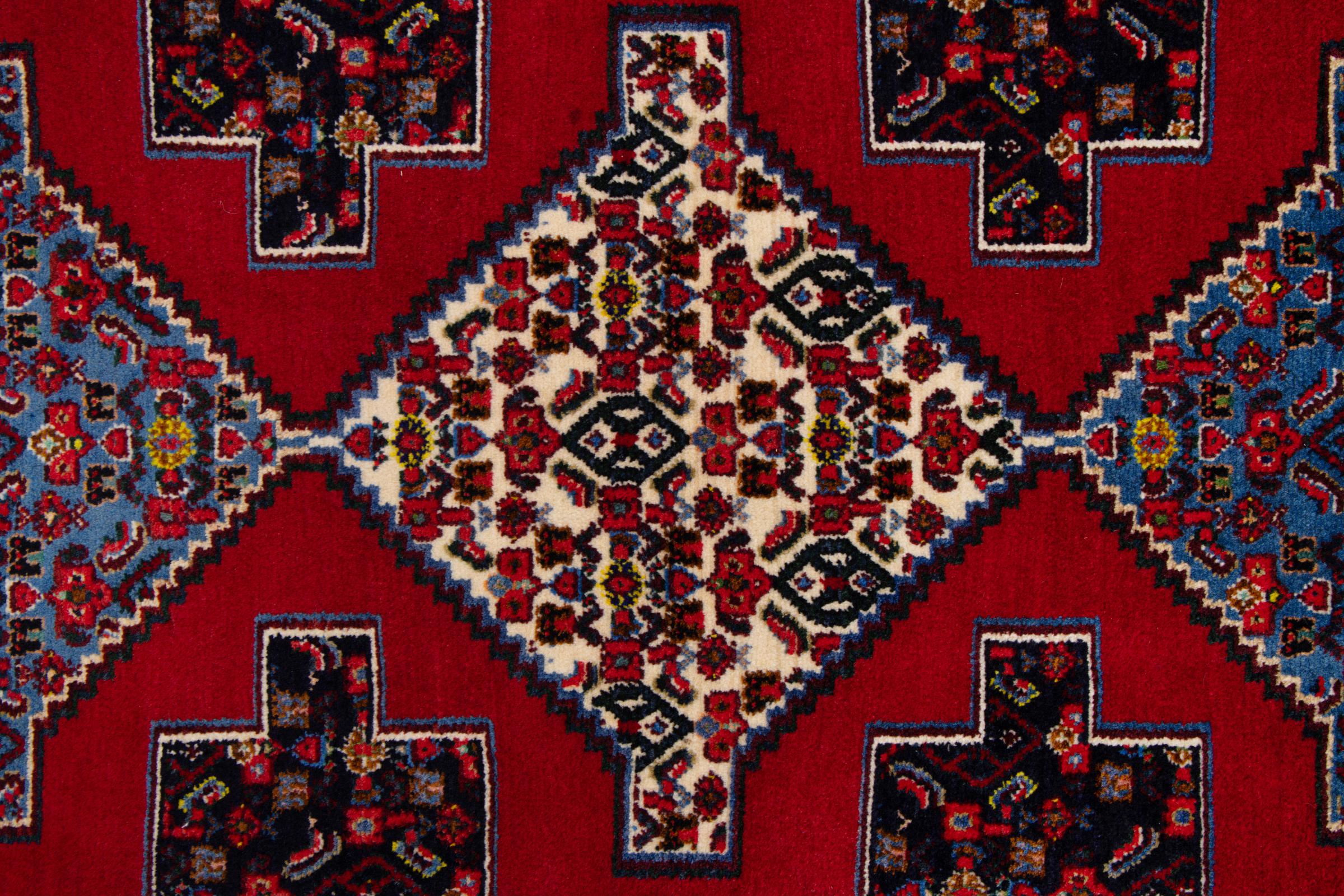 This rug belongs to village and nomadic rugs from Iran, formerly Persia. This type of rug is knotted by hand in smaller towns and villages in old tradition. Even nomads still knot Persian rugs in the open air. The rugs are knotted without a draft and completely from the mind. They are characterized by classical ornaments, which are arranged in straight and geometrical patterns. Thanks to their cultural-traditional origin, these rugs have a unique character that embodies ancient Persia.