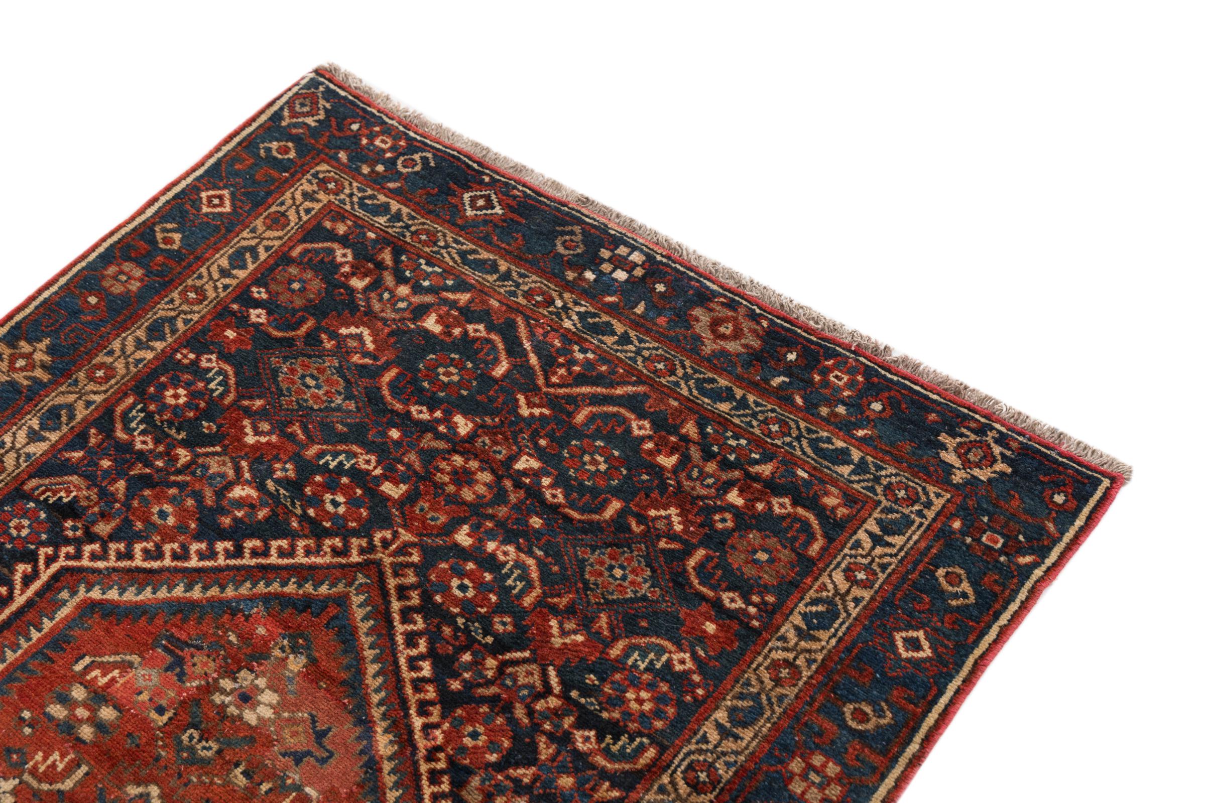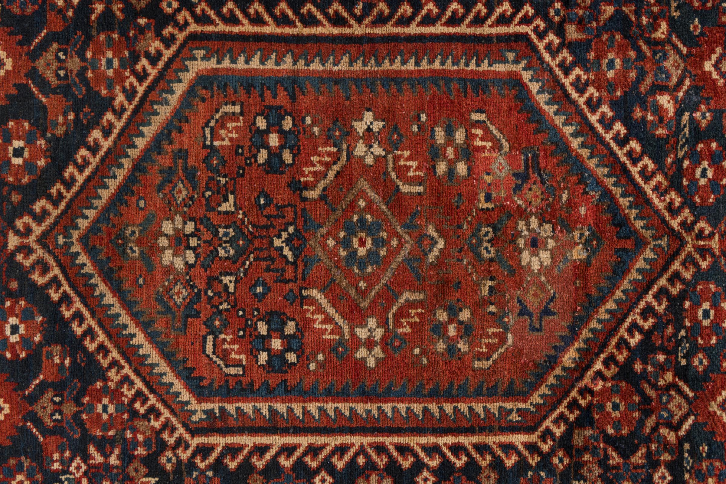 This rug belongs to village and nomadic rugs from Iran, formerly Persia. This type of rug is knotted by hand in smaller towns and villages in old tradition. Even nomads still knot Persian rugs in the open air. The rugs are knotted without a draft and completely from the mind. They are characterized by classical ornaments, which are arranged in straight and geometrical patterns. Thanks to their cultural-traditional origin, these rugs have a unique character that embodies ancient Persia.