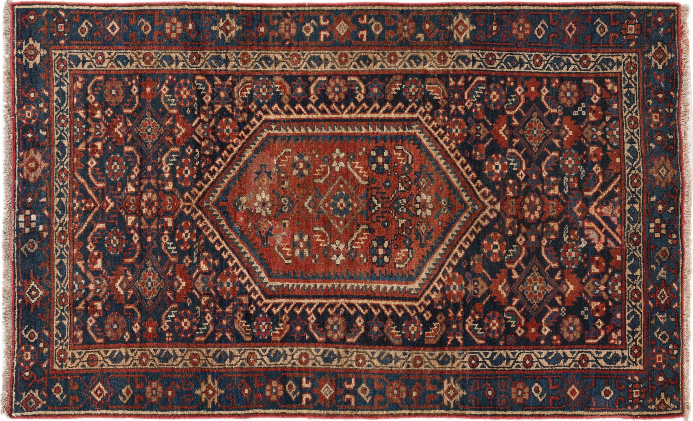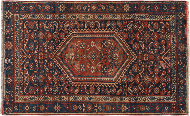 Carpet ID: 2966300032 Size: 178x109 cm Thickness: ap. 12 mm Knot density: 320 000 - 360 000 / m² Manufacturing: Knotted by hand Pile: Handspun wool Warp: Cotton Condition / Conservation Perfect Origin: Persia Age: Antique, over 80 years Weight: ap. 8 kg In stock: Unique - Only 1 in stock