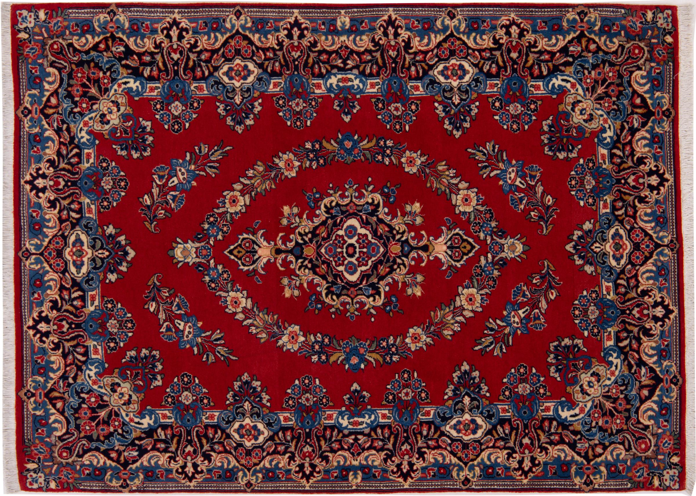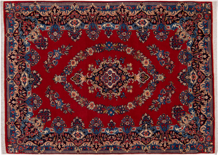 Carpet ID: 292495005870649 Size: 151x108 cm Thickness: ap. 12 mm Knot density: 320 000 - 360 000 / m² Manufacturing: Knotted by hand Pile: Handspun wool Warp: Cotton Origin: Persia Age: New Weight: ap. 6 kg Also know as Arak , Sarough, Sarouk, Saruk, Saroq, Sultanabad In stock: Unique - Only 1 in stock
