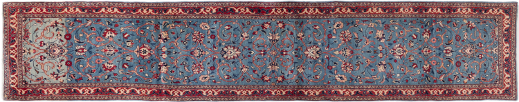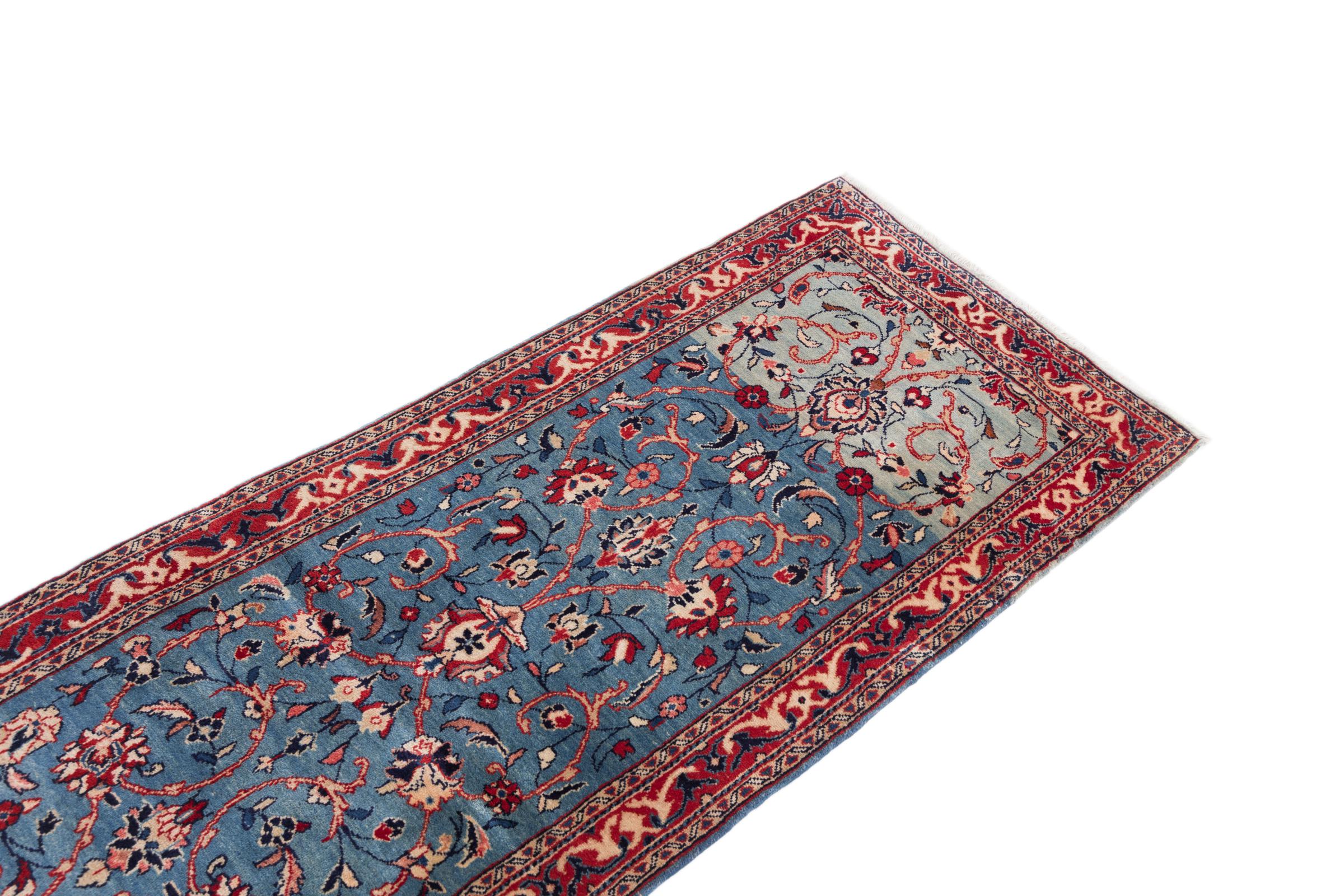 Carpet ID: 29829000756 Size: 445x85 cm Thickness: ap. 10 mm Knot density: 200 000 - 250 000 / m² Manufacturing: Knotted by hand Pile: Handspun wool Warp: Cotton Origin: Persia Age: Old/Semi antique, over 50 years Weight: ap. 13 kg In stock: Unique - Only 1 in stock