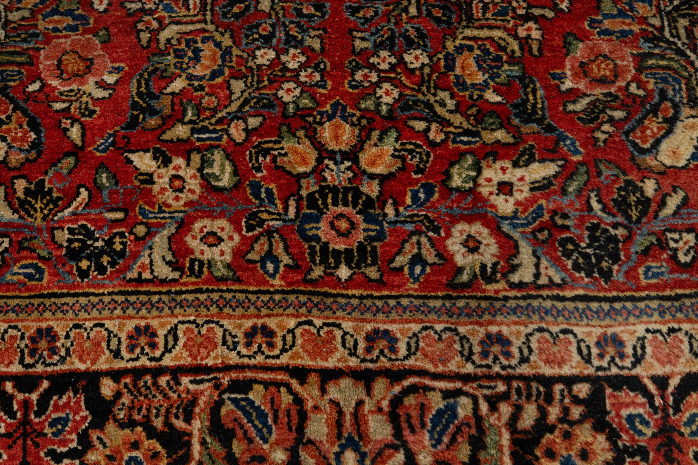 This antique, finely hand-knotted Sarough rug is exemplary of the high quality that is produced in this small village in the Arak region. It has been inspected and cared for by our experts to guarantee its beautiful condition. This antique rug demonstrates the precious durability of Sarough rugs. It is a real investment, as old Sarough rugs are a rarity and are no longer woven in this way.
