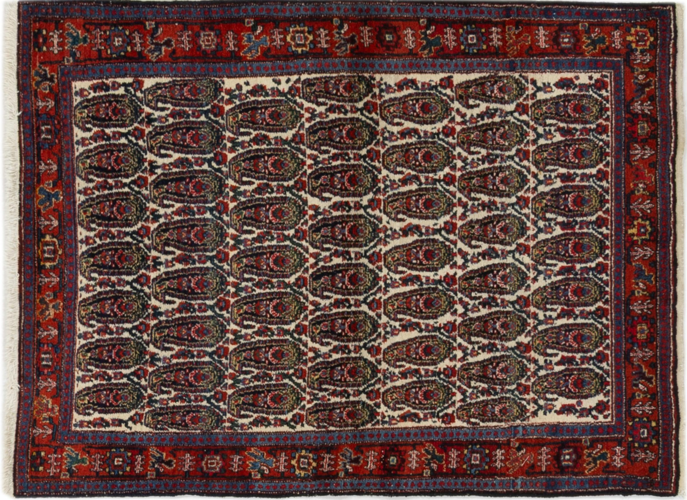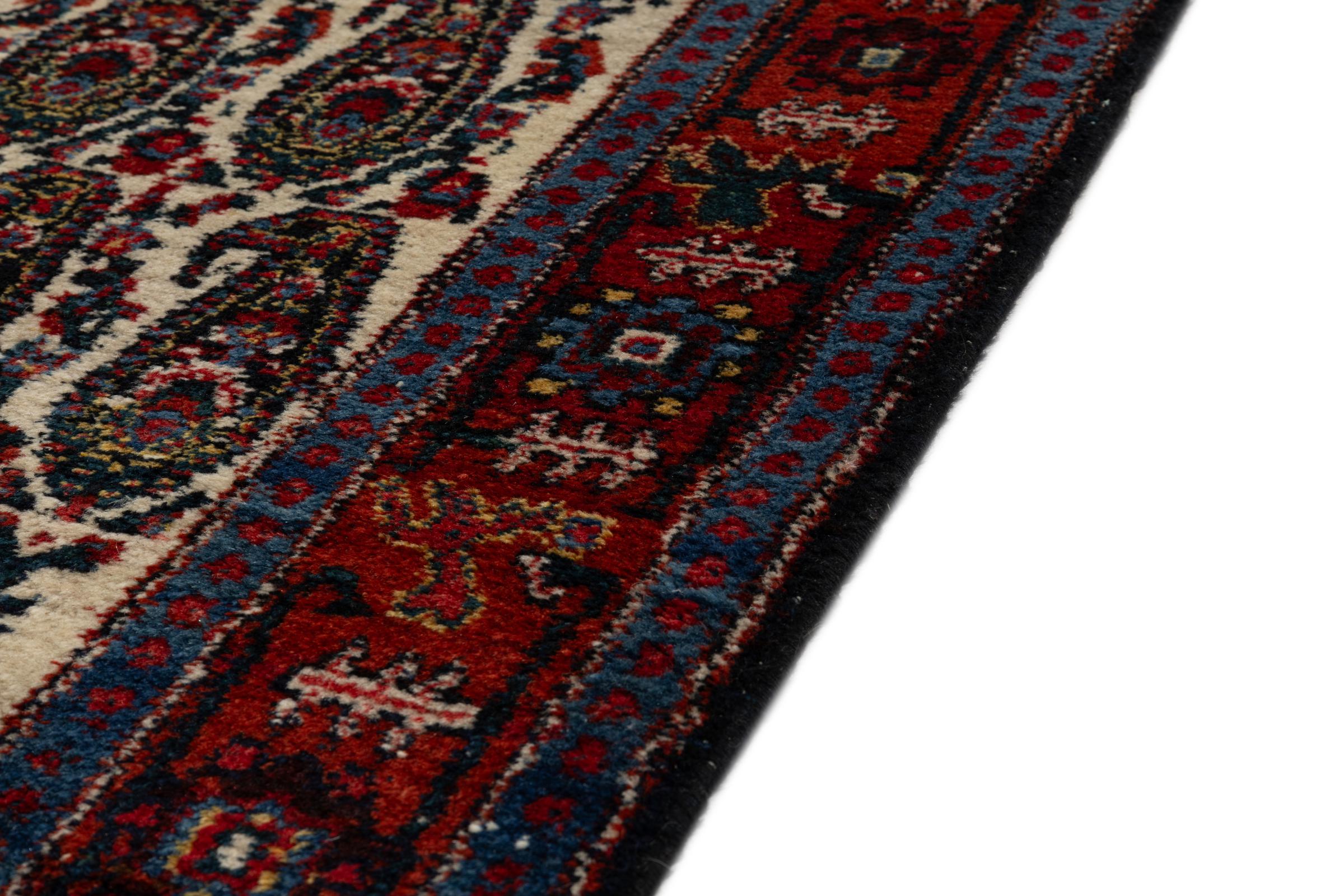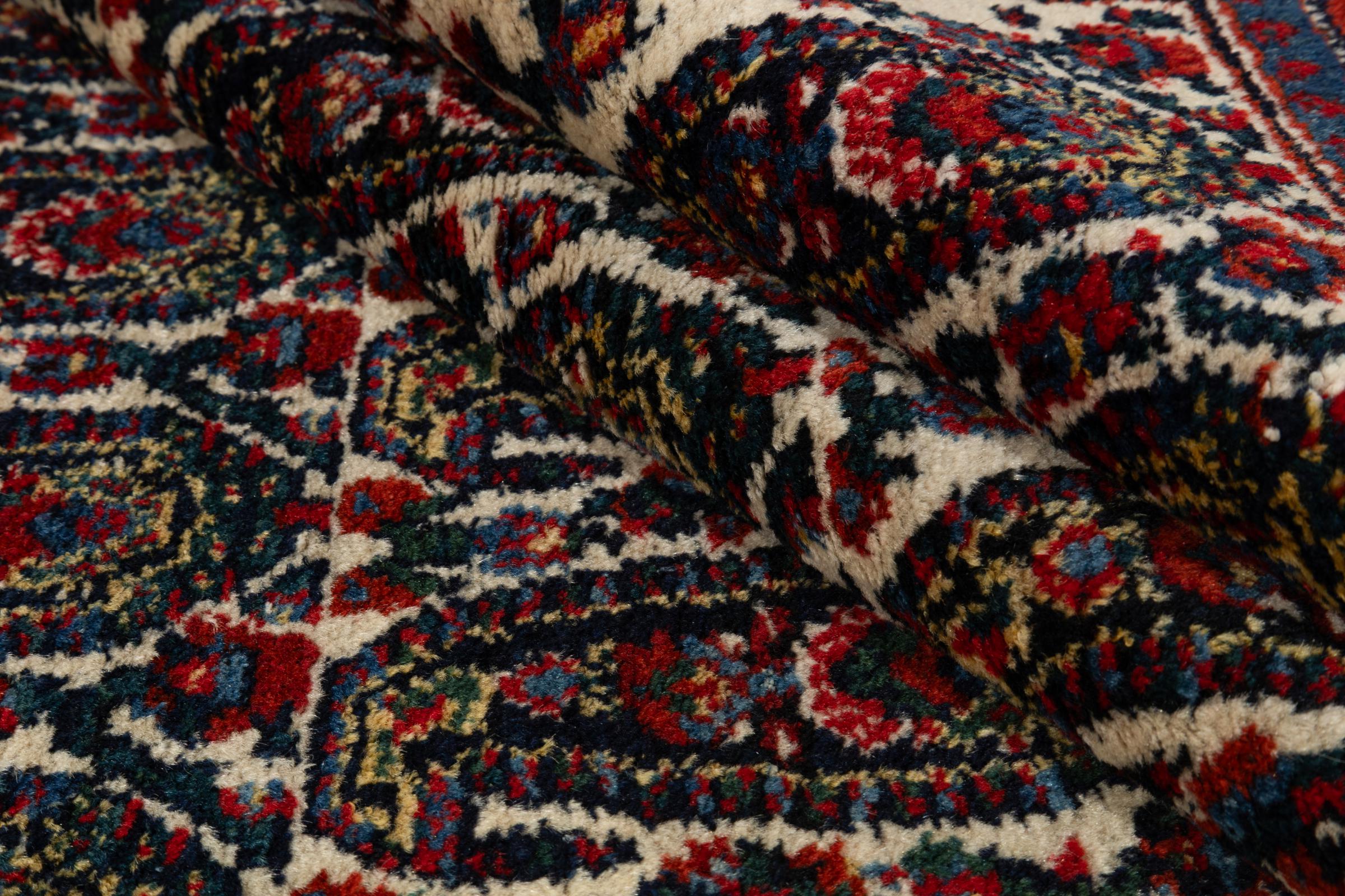 This rug belongs to village and nomadic rugs from Iran, formerly Persia. This type of rug is knotted by hand in smaller towns and villages in old tradition. Even nomads still knot Persian rugs in the open air. The rugs are knotted without a draft and completely from the mind. They are characterized by classical ornaments, which are arranged in straight and geometrical patterns. Thanks to their cultural-traditional origin, these rugs have a unique character that embodies ancient Persia.