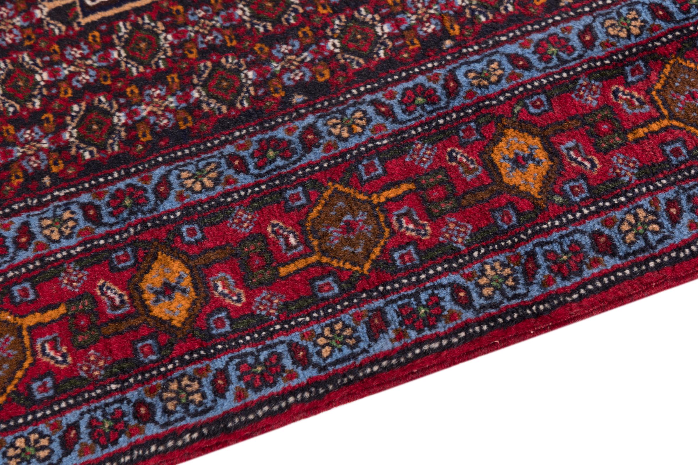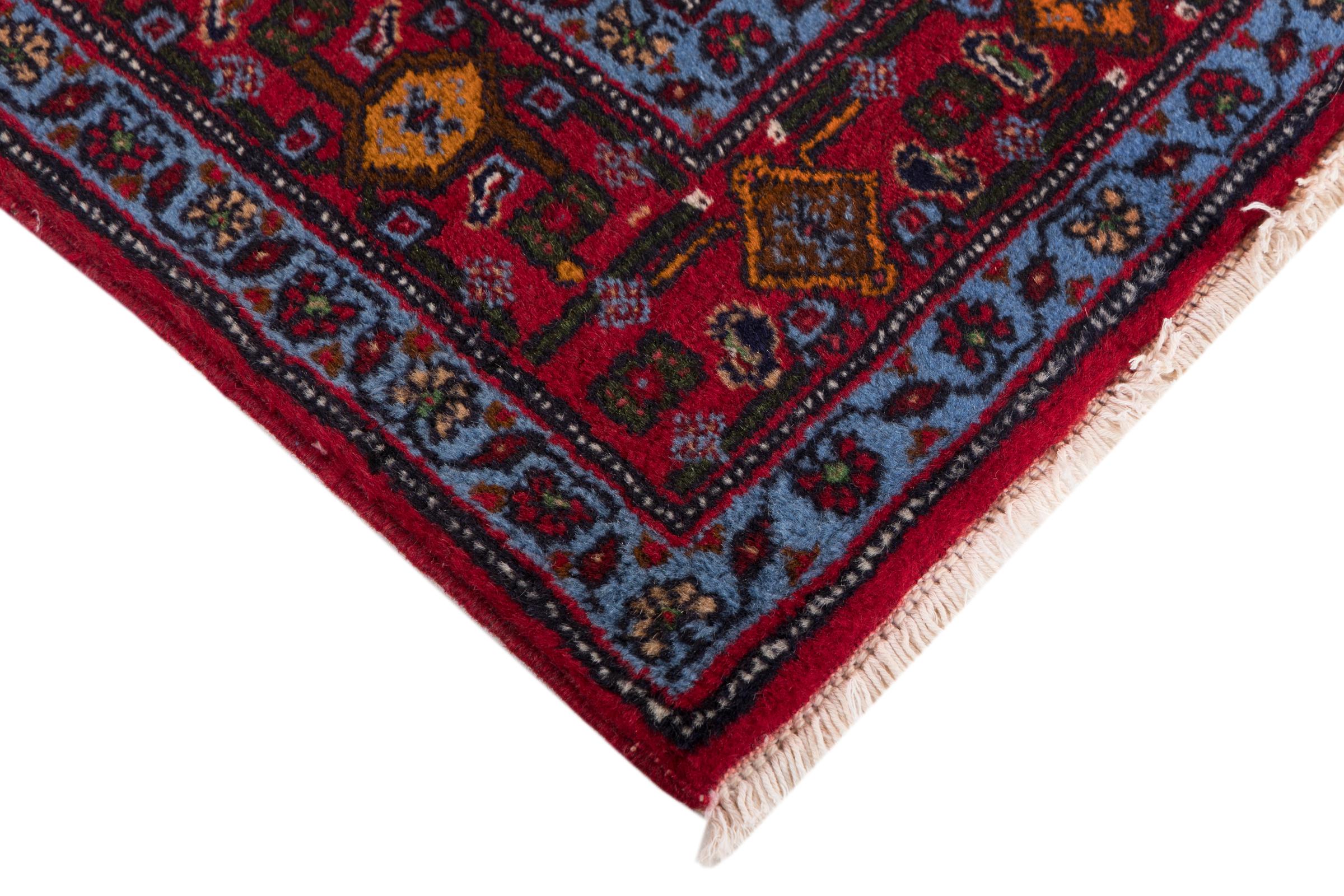This rug belongs to village and nomadic rugs from Iran, formerly Persia. This type of rug is knotted by hand in smaller towns and villages in old tradition. Even nomads still knot Persian rugs in the open air. The rugs are knotted without a draft and completely from the mind. They are characterized by classical ornaments, which are arranged in straight and geometrical patterns. Thanks to their cultural-traditional origin, these rugs have a unique character that embodies ancient Persia.
