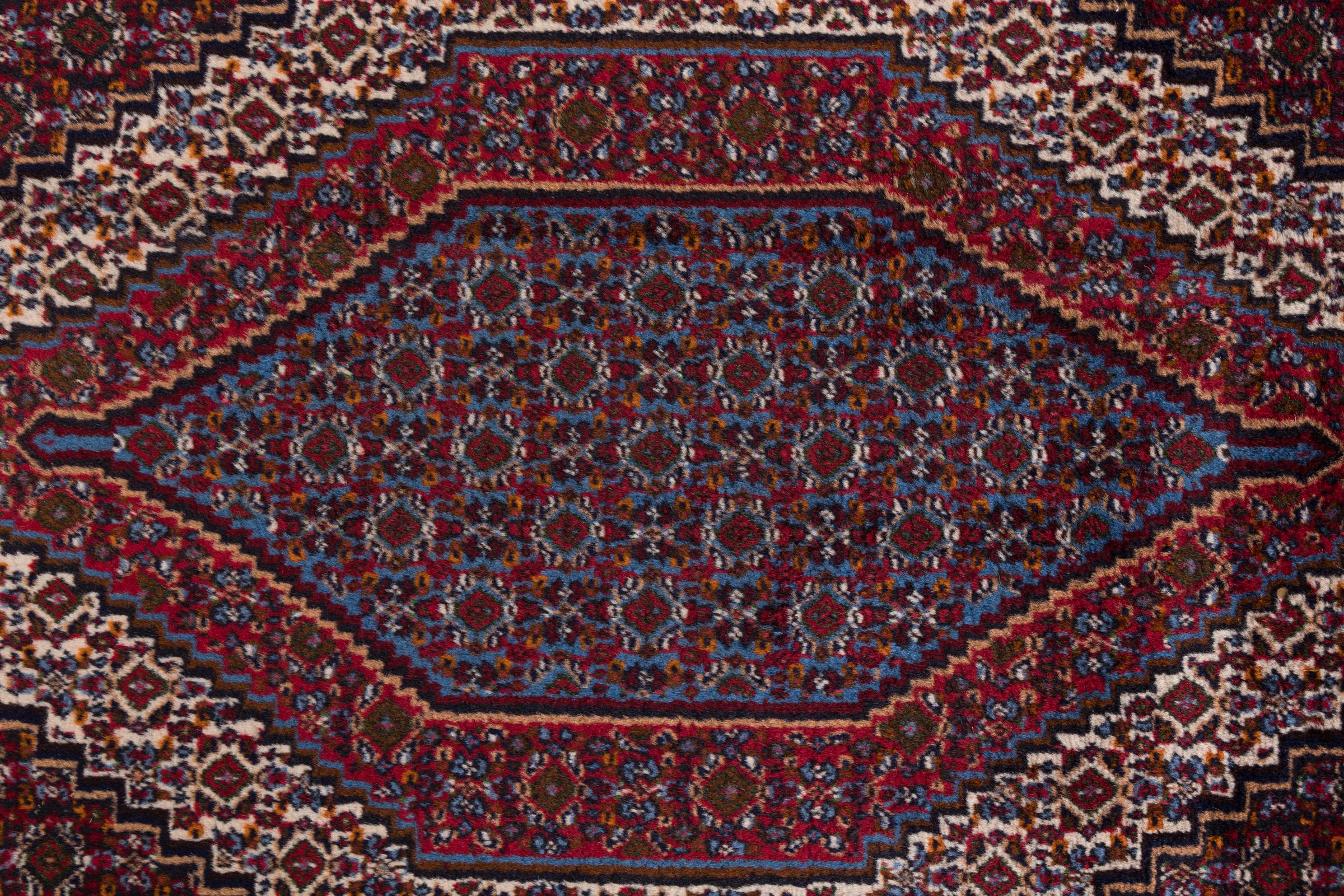 This rug is made of hand spun sheep wool of the highest quality. Especially in Iran (former Persia), Afghanistan and Pakistan wool is still spun by hand before the actual knotting of the rug begins. Wool has proven itself as a natural and extremely hard-wearing material over centuries. Among other things, it has dirt-repellent and heat-insulating properties. At the same time, wool is incomparably soft and has a natural shine.