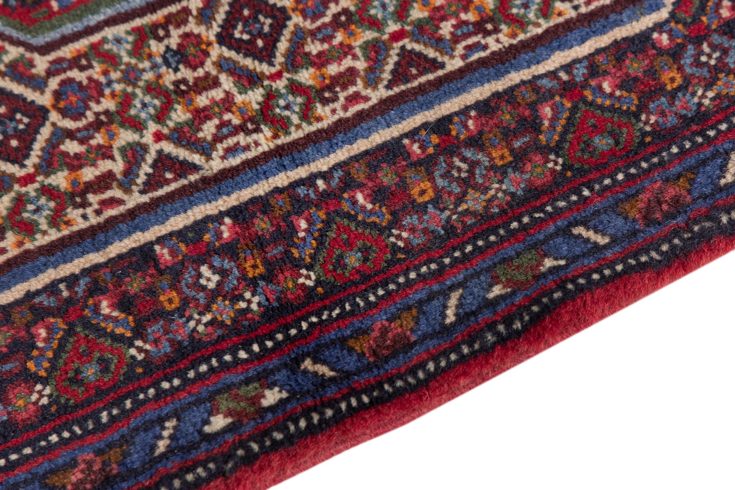 This rug belongs to village and nomadic rugs from Iran, formerly Persia. This type of rug is knotted by hand in smaller towns and villages in old tradition. Even nomads still knot Persian rugs in the open air. The rugs are knotted without a draft and completely from the mind. They are characterized by classical ornaments, which are arranged in straight and geometrical patterns. Thanks to their cultural-traditional origin, these rugs have a unique character that embodies ancient Persia.