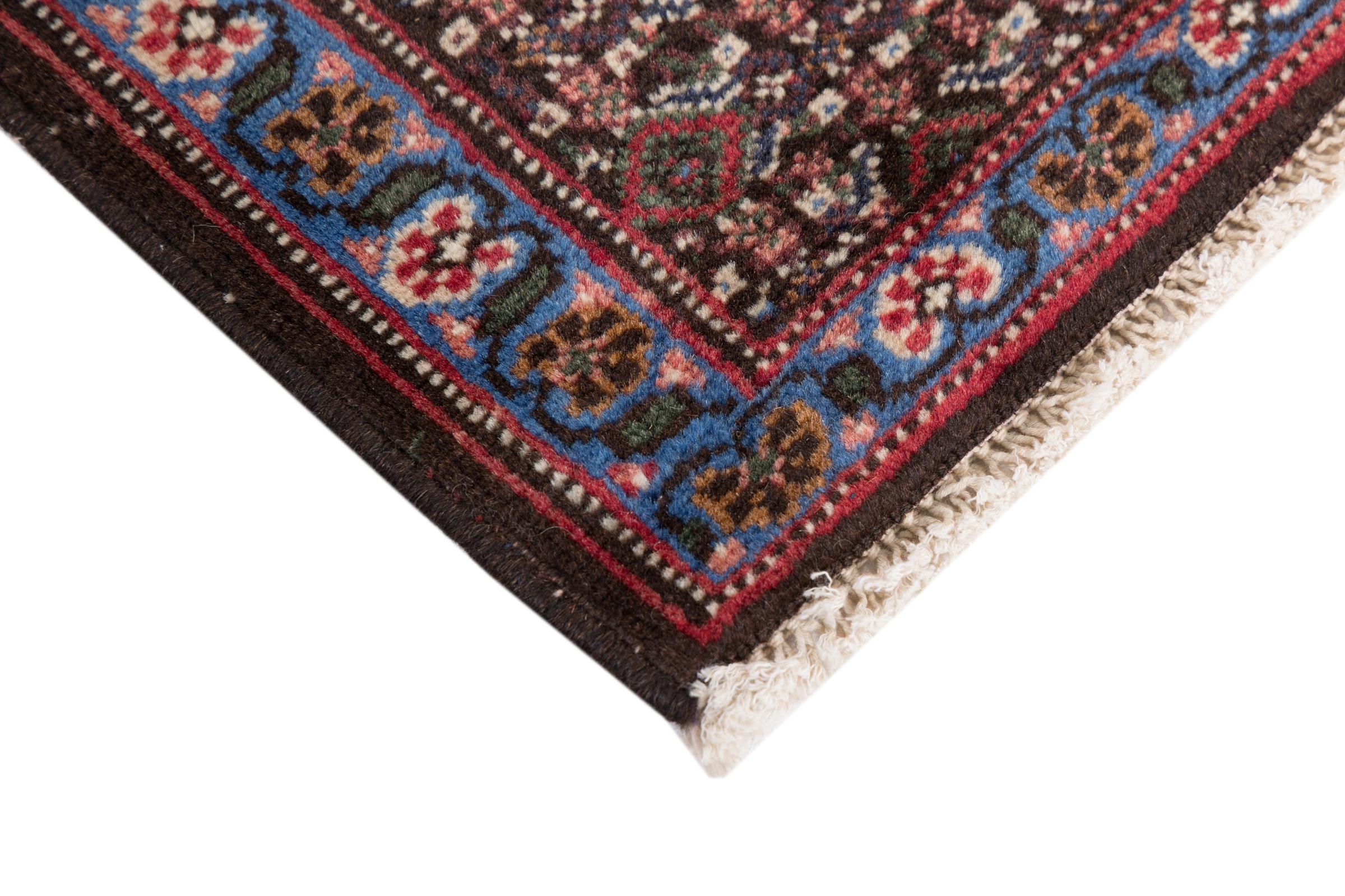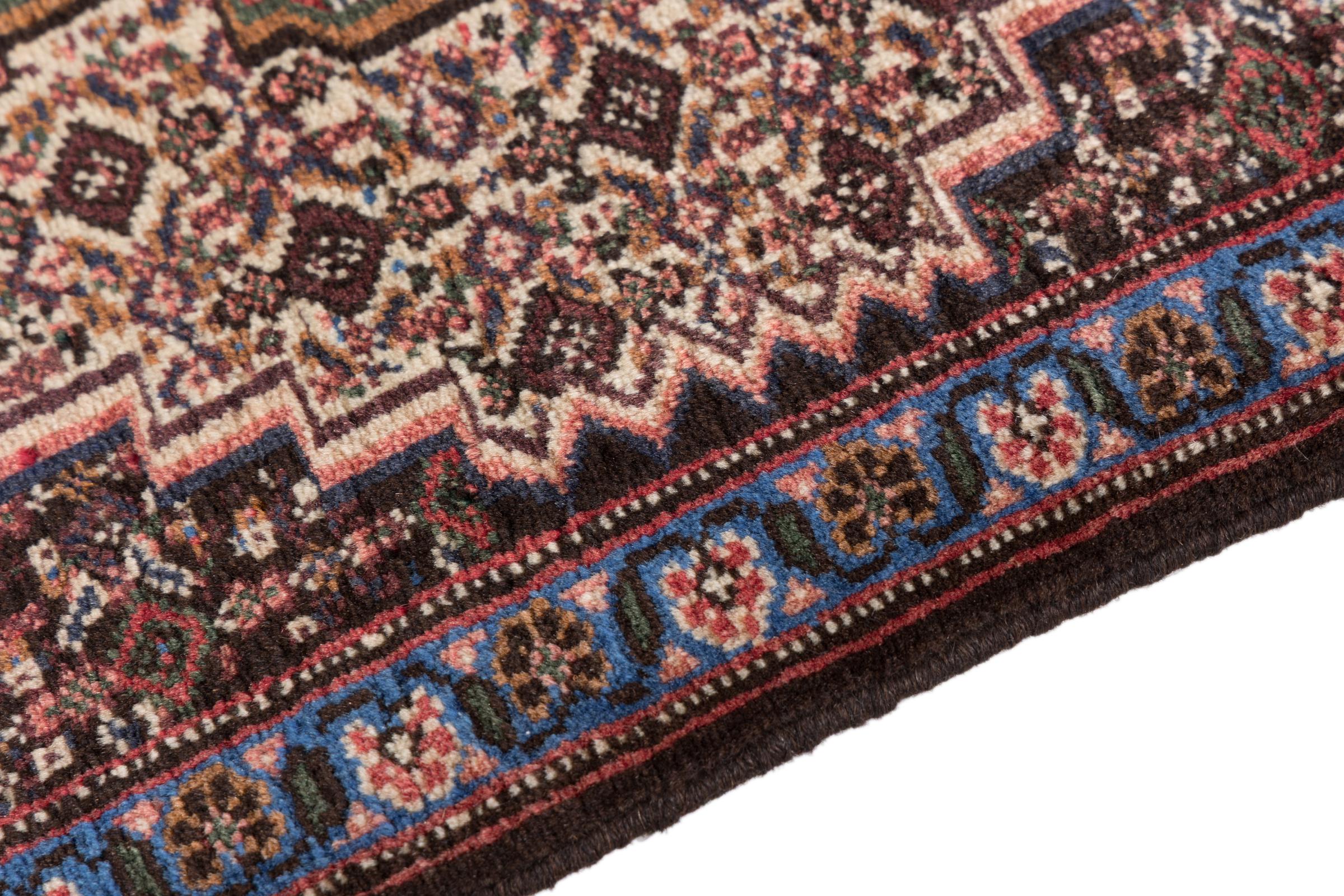 This rug belongs to village and nomadic rugs from Iran, formerly Persia. This type of rug is knotted by hand in smaller towns and villages in old tradition. Even nomads still knot Persian rugs in the open air. The rugs are knotted without a draft and completely from the mind. They are characterized by classical ornaments, which are arranged in straight and geometrical patterns. Thanks to their cultural-traditional origin, these rugs have a unique character that embodies ancient Persia.