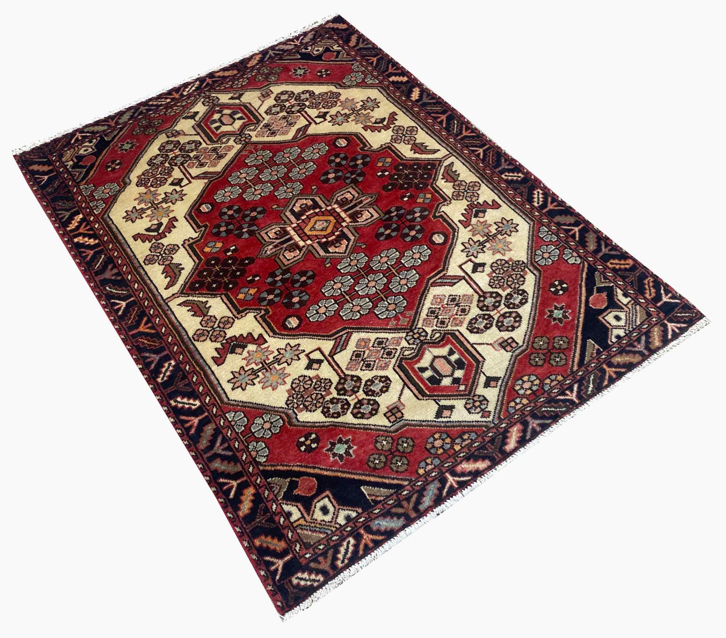 Carpet ID: 318915009313304 Size: 150x111 cm Thickness: ap. 12 mm Knot density: 128 000 - 160 000 / m² Manufacturing: Knotted by hand Pile: Handspun wool Warp: Cotton Origin: Persia Age: New Weight: ap. 6 kg In stock: Unique - Only 1 in stock