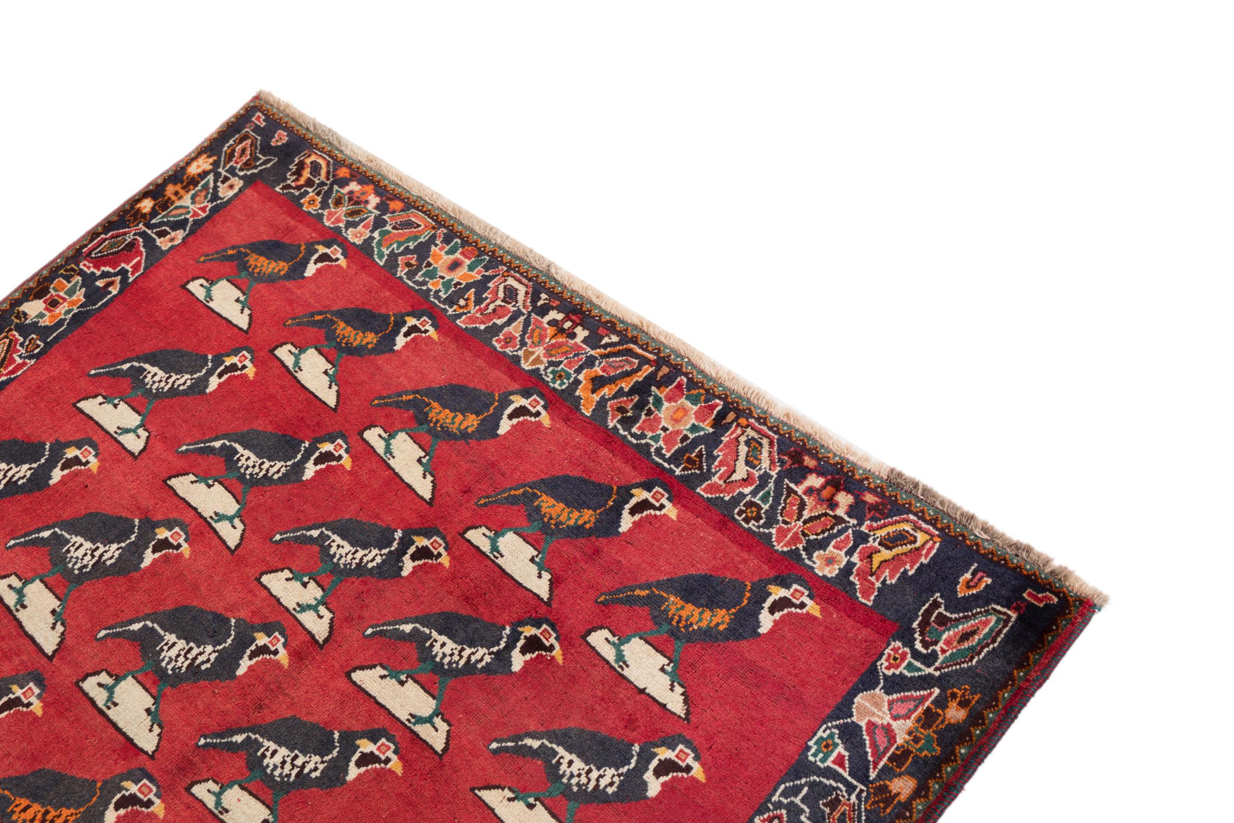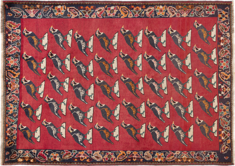 This rug belongs to village and nomadic rugs from Iran, formerly Persia. This type of rug is knotted by hand in smaller towns and villages in old tradition. Even nomads still knot Persian rugs in the open air. The rugs are knotted without a draft and completely from the mind. They are characterized by classical ornaments, which are arranged in straight and geometrical patterns. Thanks to their cultural-traditional origin, these rugs have a unique character that embodies ancient Persia.